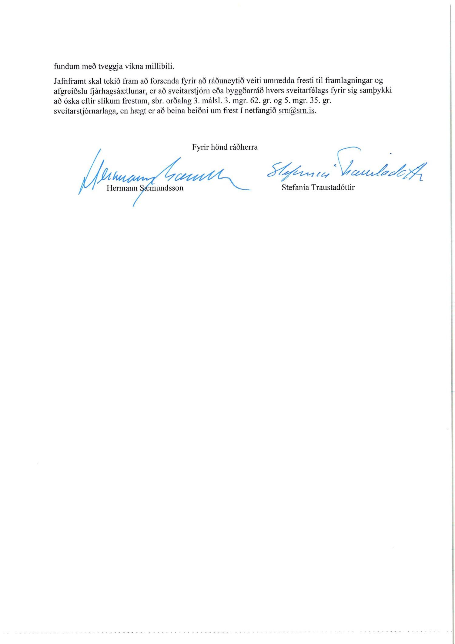 Erindi frá samgöngu- og sveitarstjórnarráðuneytisins, dags. 15. október, þar sem fram kom að sé þess óskað mun ráðuneytið veita eftirfarandi fresti: