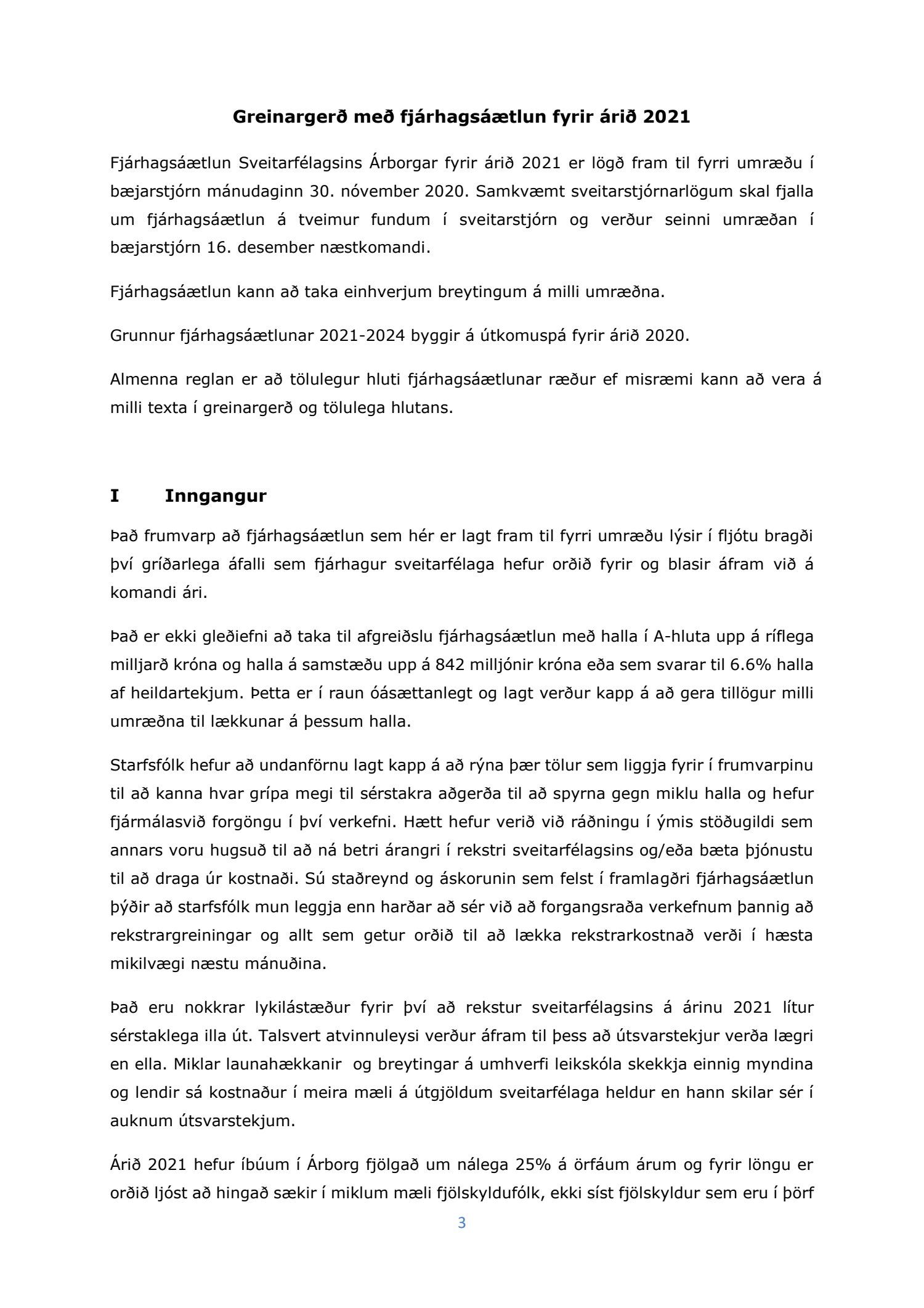 Lagt er til að fjárhagsáætlun fyrir 2021 og 3ja ára áætlun verði vísað til síðari umræðu 16. desember. Er það samþykkt samhljóða með 9 atkvæðum.