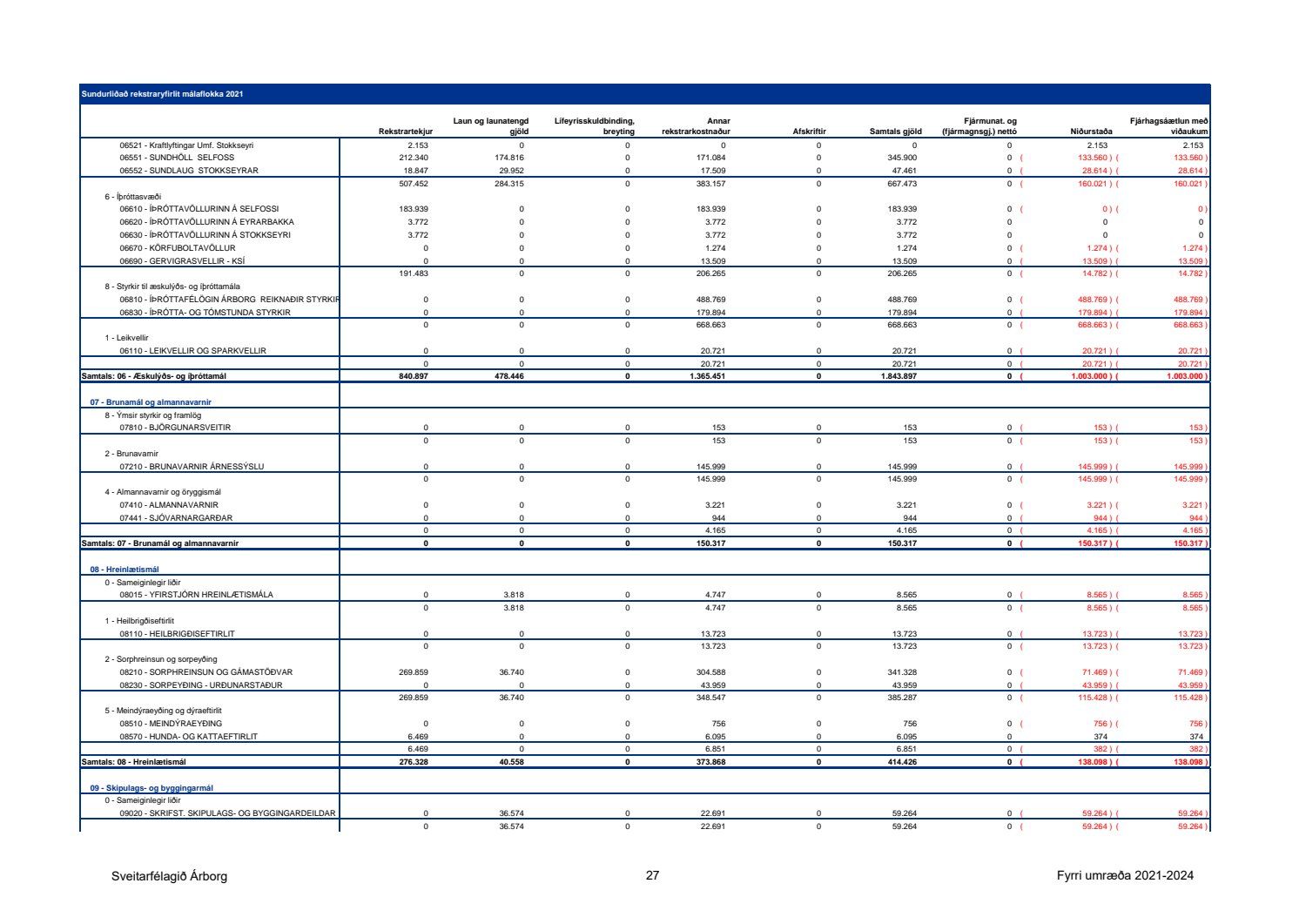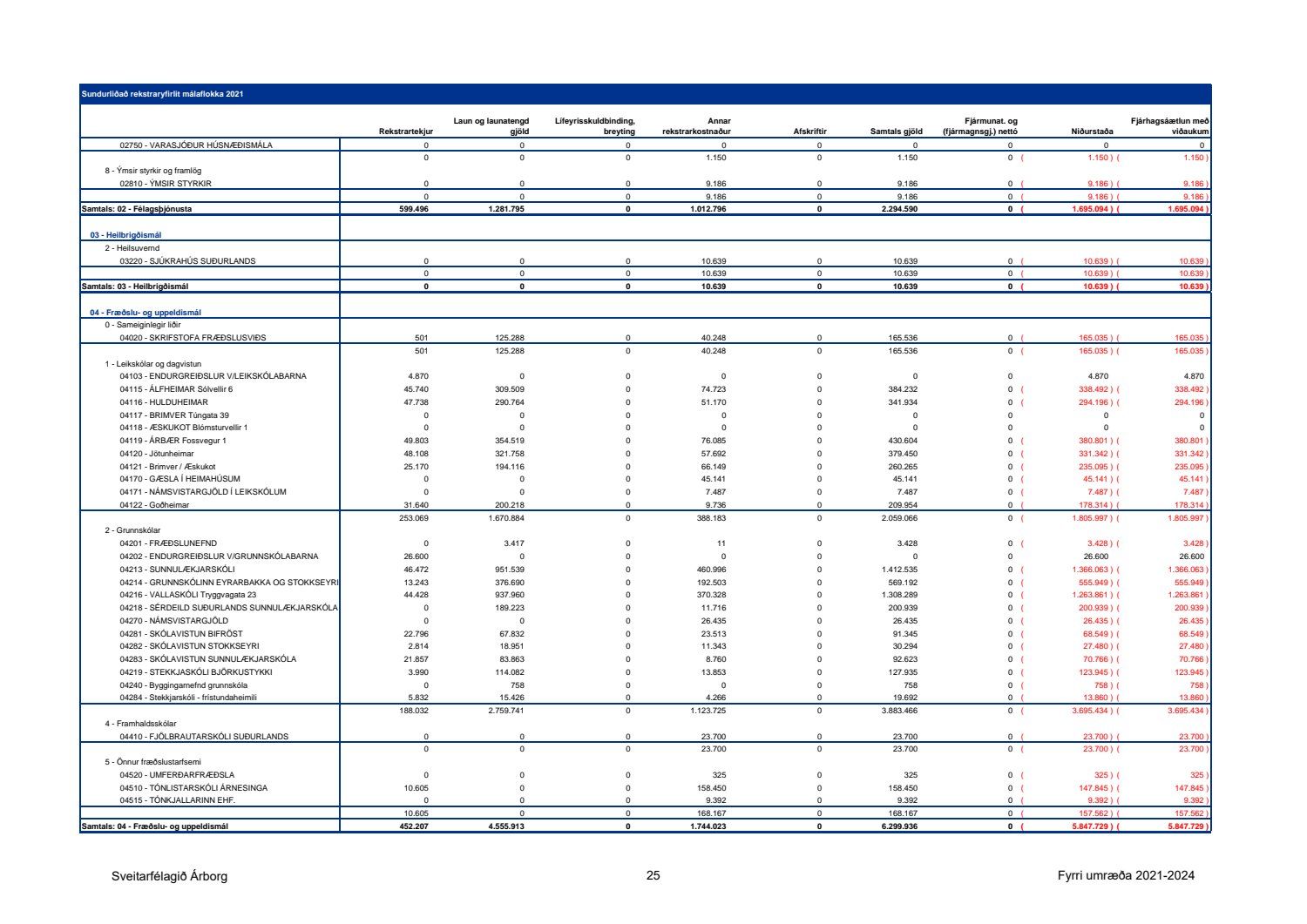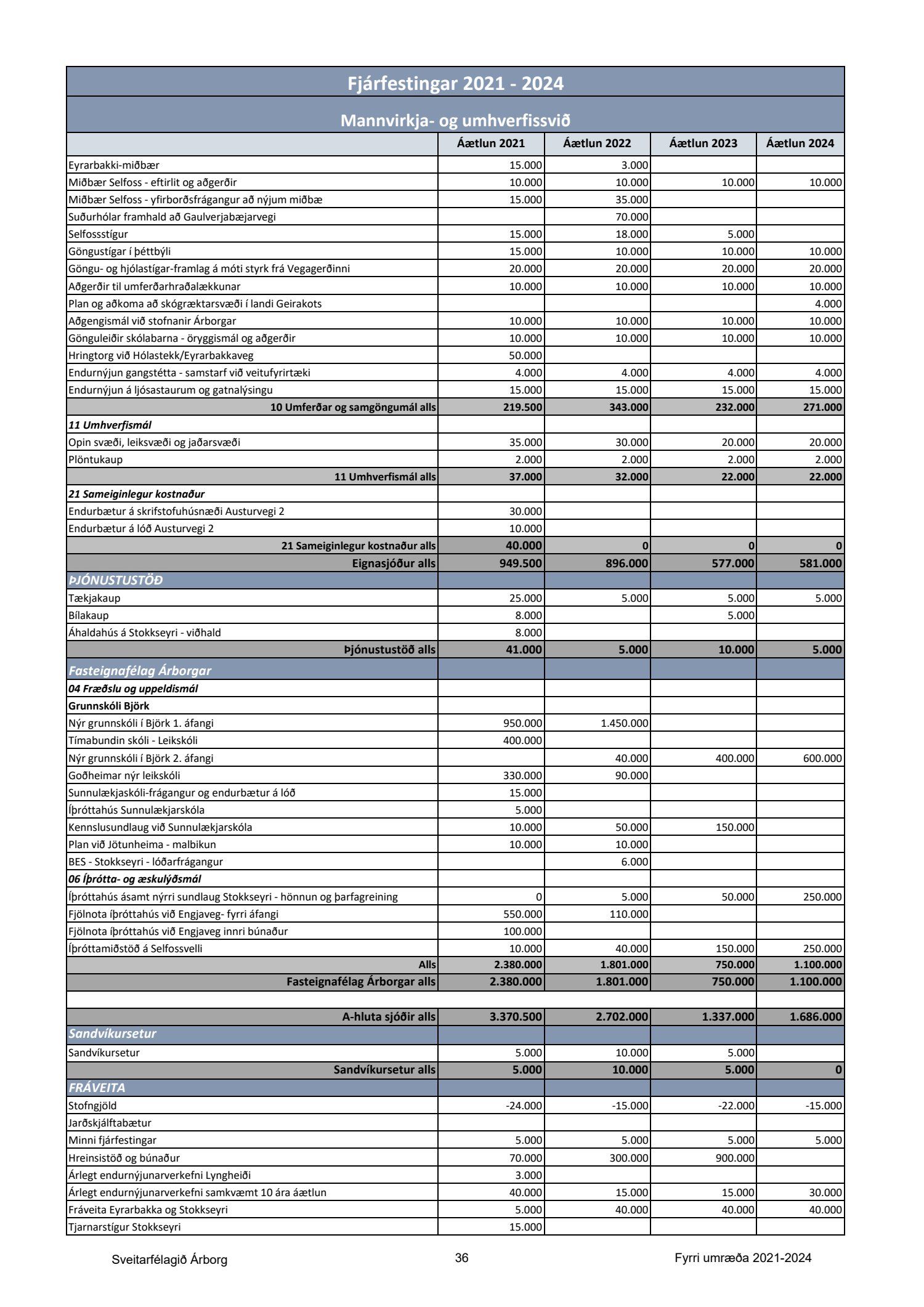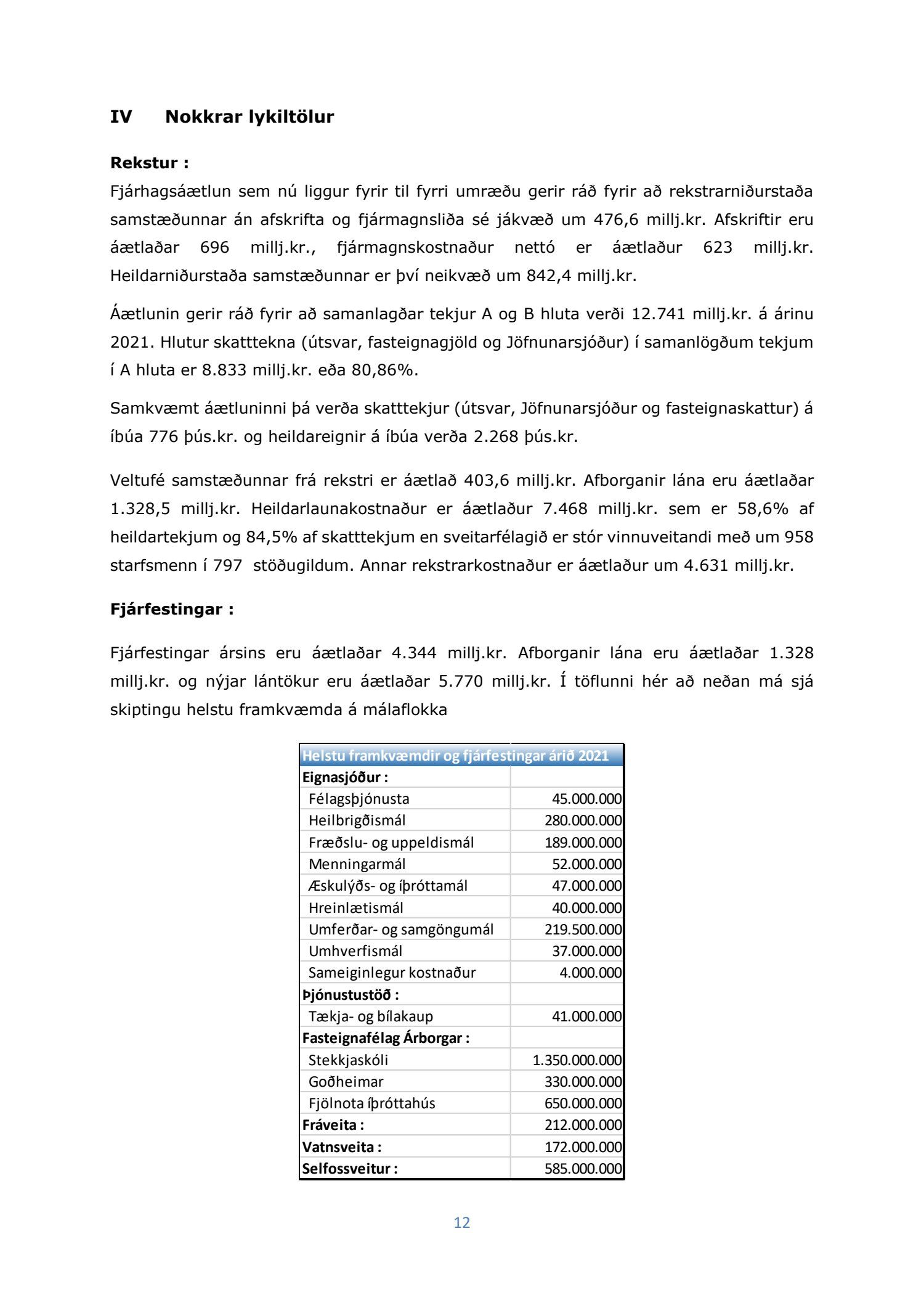 Bæjarfulltrúar D-lista telja með öllu óásættanlegt að leggja fram fjárhagsáætlun með viðlíka halla og gert er ráð fyrir í fjárhagsáætlun Sveitarfélagsins Árborgar að þessu sinni, eða um 1,1 milljarð króna halla á A-hluta og 842 milljóna króna halla á A- og B-hluta. Sú alvarlega staða sem blasir við í fjárhag sveitarfélagsins sé horft til stöðu á rekstri þess árið 2020 og fyrirliggjandi áætlunar staðfestir það að anað hefur verið áfram án nokkurrar fyrirhyggju eða stýringar. Það hefur orðið lenska hjá meirihlutanum að fjölga stöðugildum millistjórnenda og sérfræðinga án nokkurra takmarkana og fjárfestingafylleríið er nú að koma niður á bæjarsjóði. Óraunhæfar áætlanir um tekjur á árinu 2020 munu ekki ganga eftir, en þessar áætlanir kyntu undir eyðslu langt um efni fram og áfram er haldið með óraunhæfa áætlun um tekjur af lóðaúthlutun á næsta ári. Útlit er fyrir að halli á rekstri sveitarfélagsins á þessu ári verði um 1,2 milljarður króna. Það merkir 100milljónir á mánuði allt þetta ár. Áætlað er að taka lán fyrir tæpa 5,8 milljarða á næsta ári á móti 4,3 milljarða fjárfestingu, hvort tveggja er langt umfram það sem bæjarsjóður þolir. Þetta stjórnleysi er meginástæða þess að þegar hægir á vexti tekna þá hittir það Sveitarfélagið Árborg fyrir með mun alvarlegri hætti en önnur sveitarfélög. Skuldahlutfall fer langt umfram leyfileg mörk og jafnvægisregla er þverbrotin. Bæjarfulltrúar D-lista vænta þess að róttækar breytingar verði gerðar á áætluninni á milli fyrri og seinni umræðu, enda stefnir í það með sama áframhaldi að sveitarfélagið verði ekki gjaldhæft innan mjög skamms tíma.