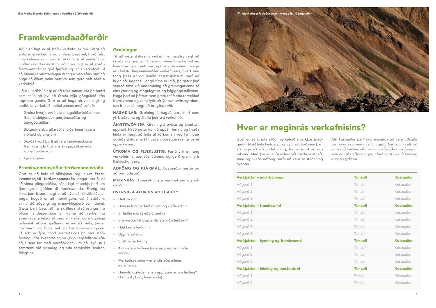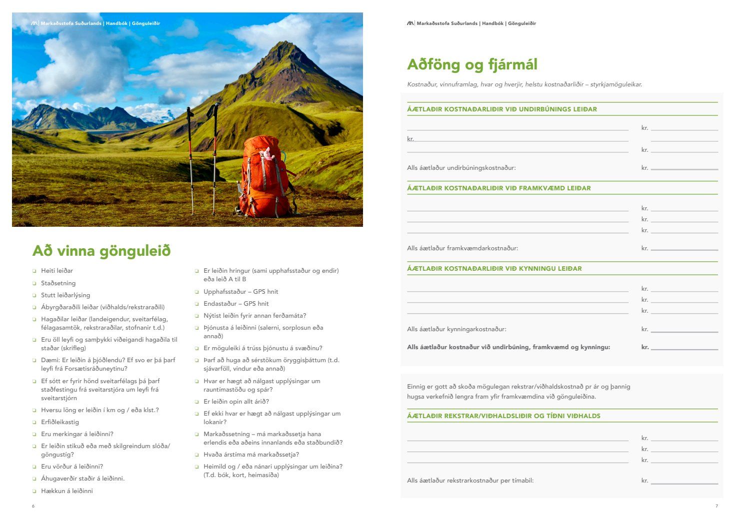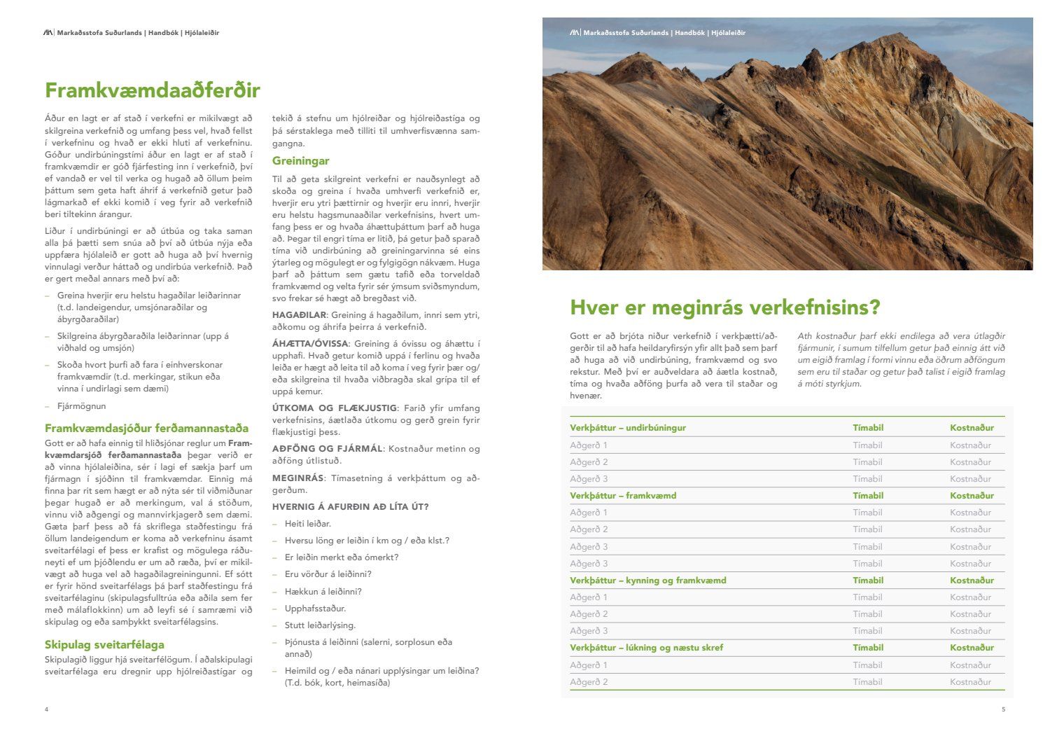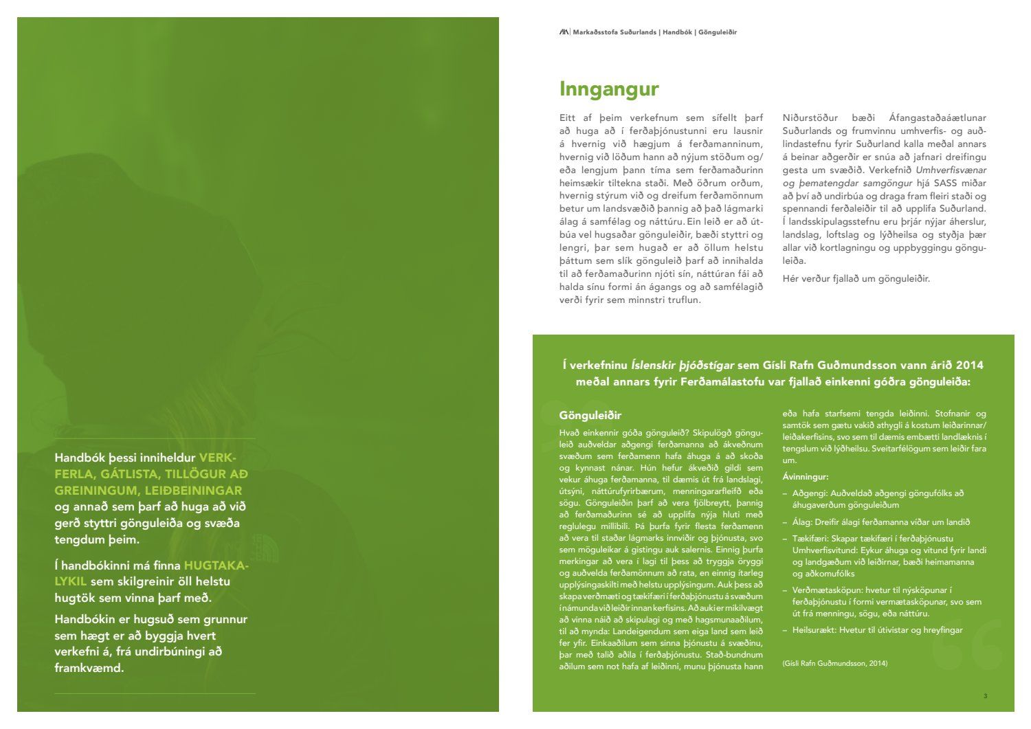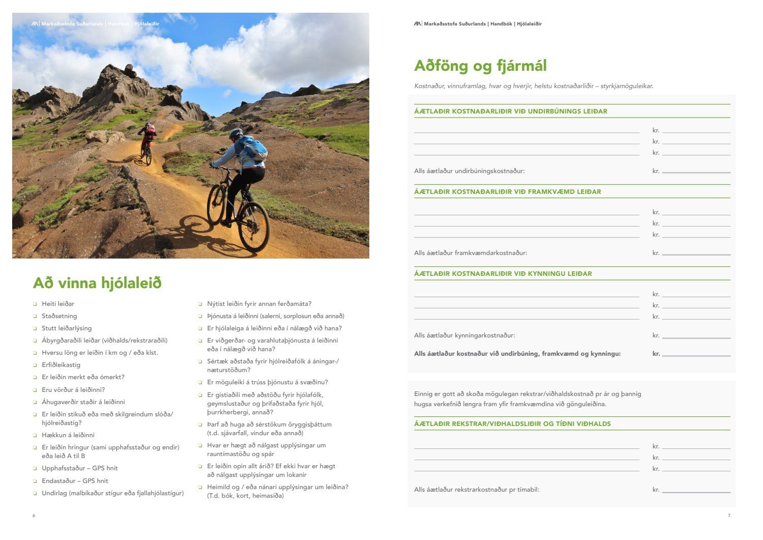 Nú eru afurðir verkefnisins farnar að líta dagsins ljós. Til kynningar eru handbækur sem sveitarfélög og aðrir geta nýtt sér til viðmiðunar þegar farið er í að vinna að göngu og hjólaleiðum, hvort sem þær eru unnar af sveitarfélögunum, landeigendum eða öðrum hagsmunaaðilum.