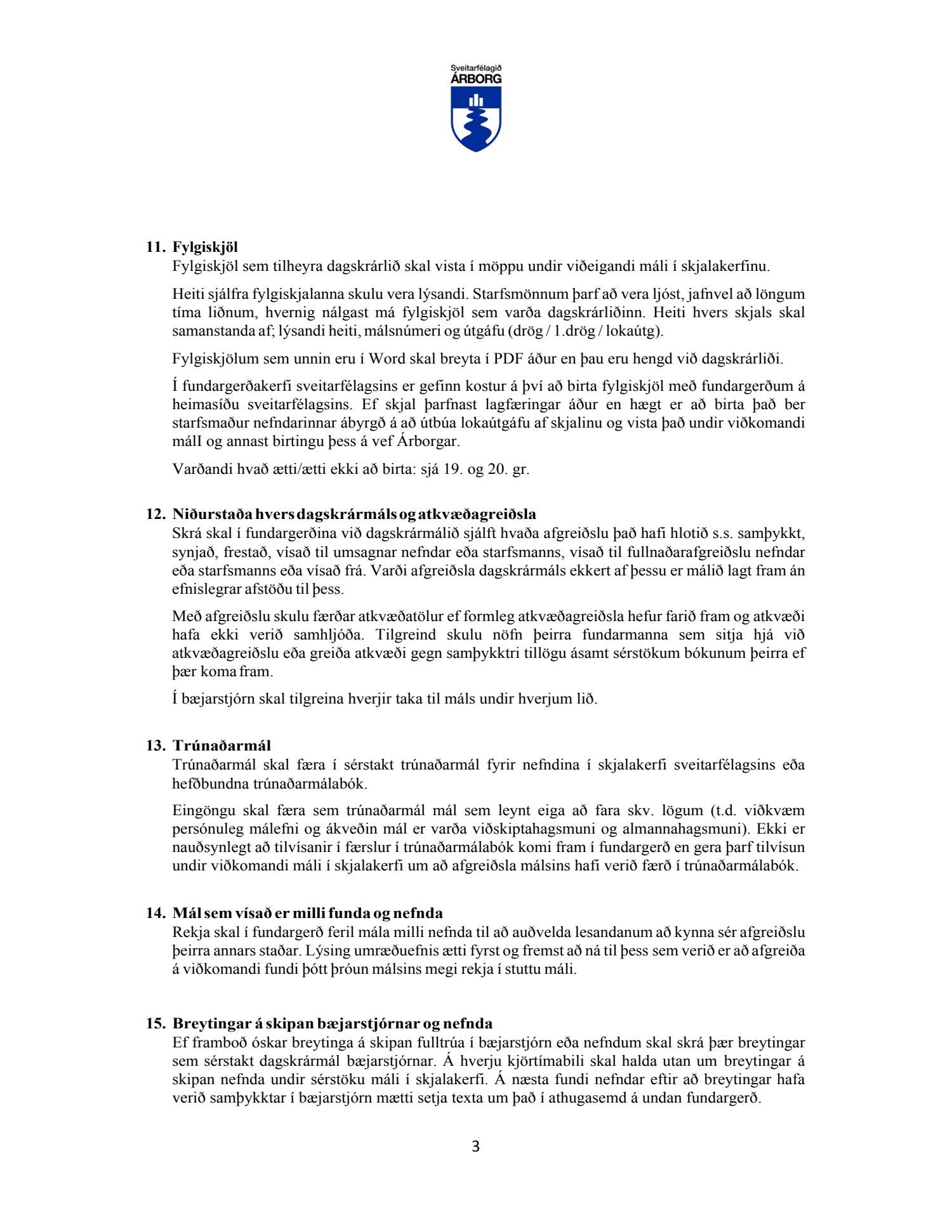 Forseti leggur til að í lið 2 verði orðið "prentuð" fellt út og í lið 3 verði fellt út "í sérstökum dálki til hliðar" og þess í stað komi "þá". Tillagan með áorðnum breytingum var borin undir atkvæði og samþykkt samhljóða með 9 atkvæðum.
