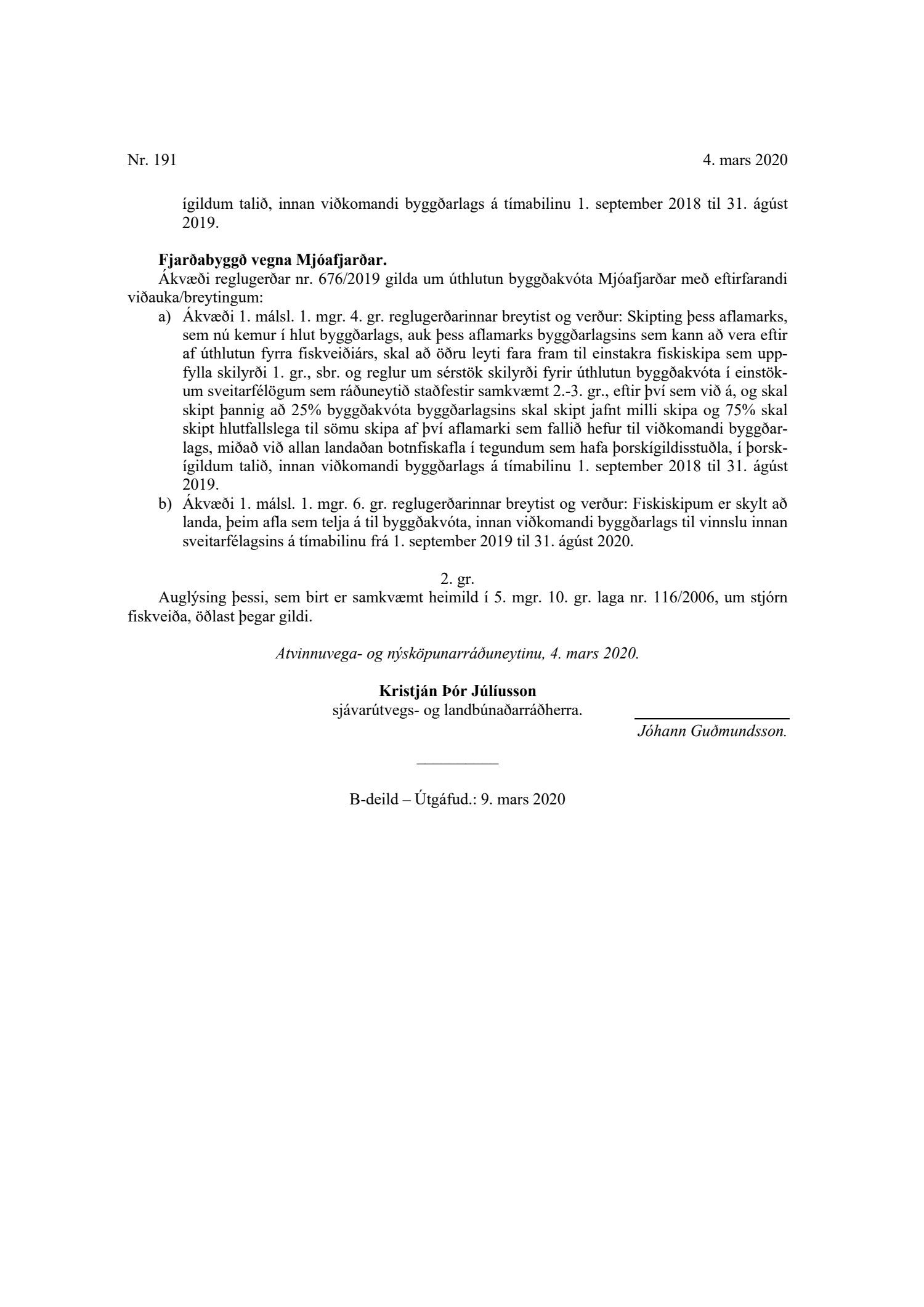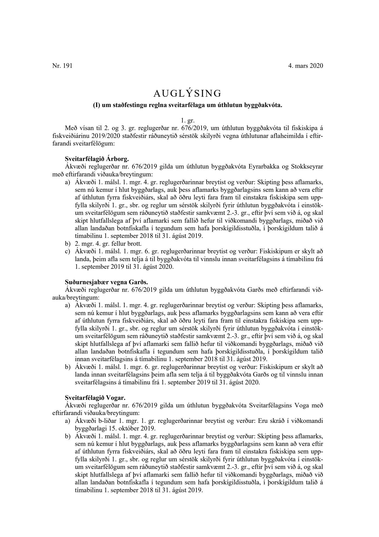 Bæjarráð samþykkir að útfærsla Svf. Árborgar tryggi sem fyrr að landa megi afla í Þorlákshöfn og að ekki skipti máli hvar hann er unnin innan sveitarfélagsins. Bæjarstjóra falið að tilkynna um útfærslu til atvinnu- og nýsköpunarráðuneytis.