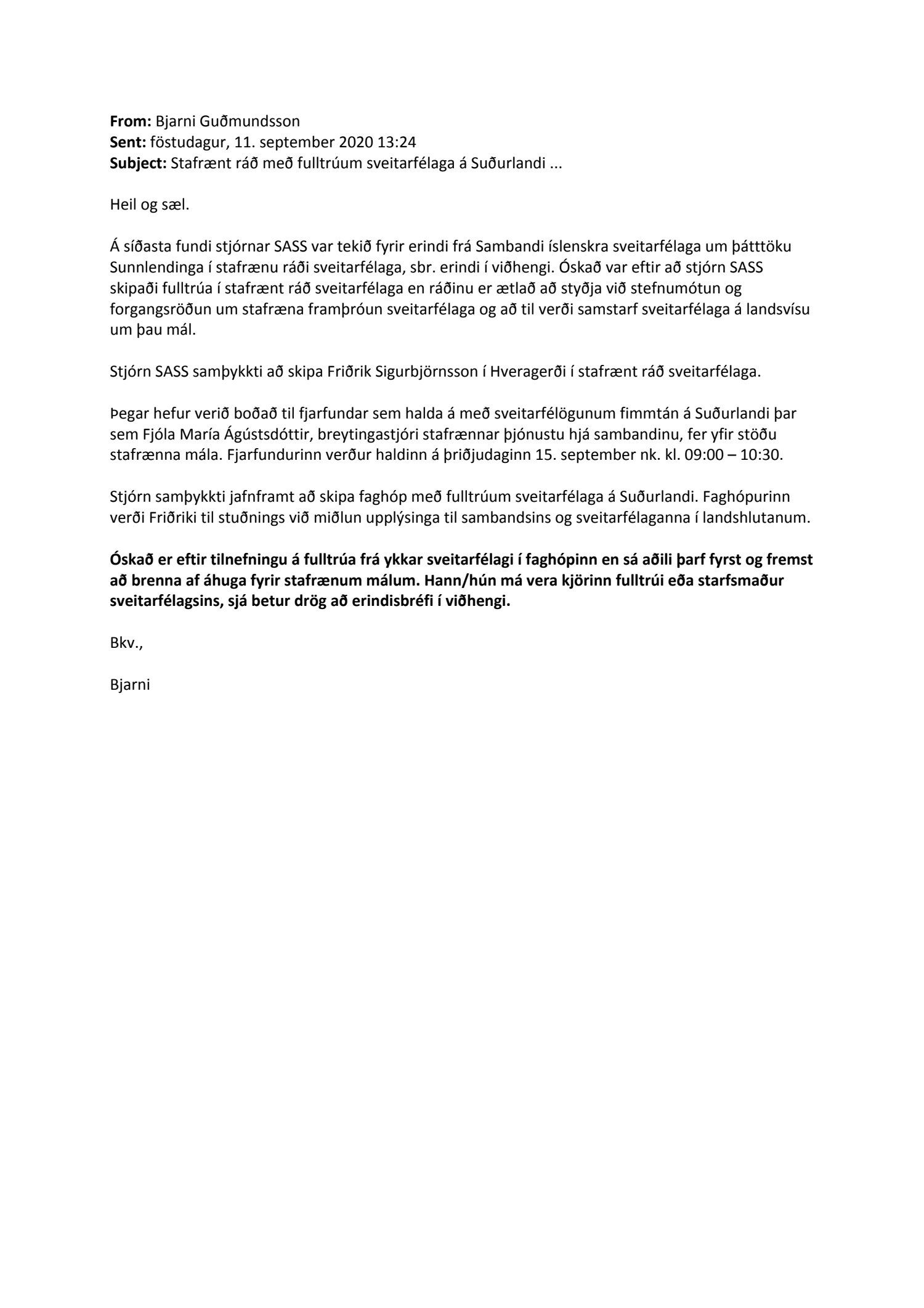 Erindi frá SASS, dags. 11. september 2020, þar sem óskað er eftir að sveitarfélagið tilnefni fulltrúa í faghóp sunnlenskra sveitarfélaga um stafræna þróun.