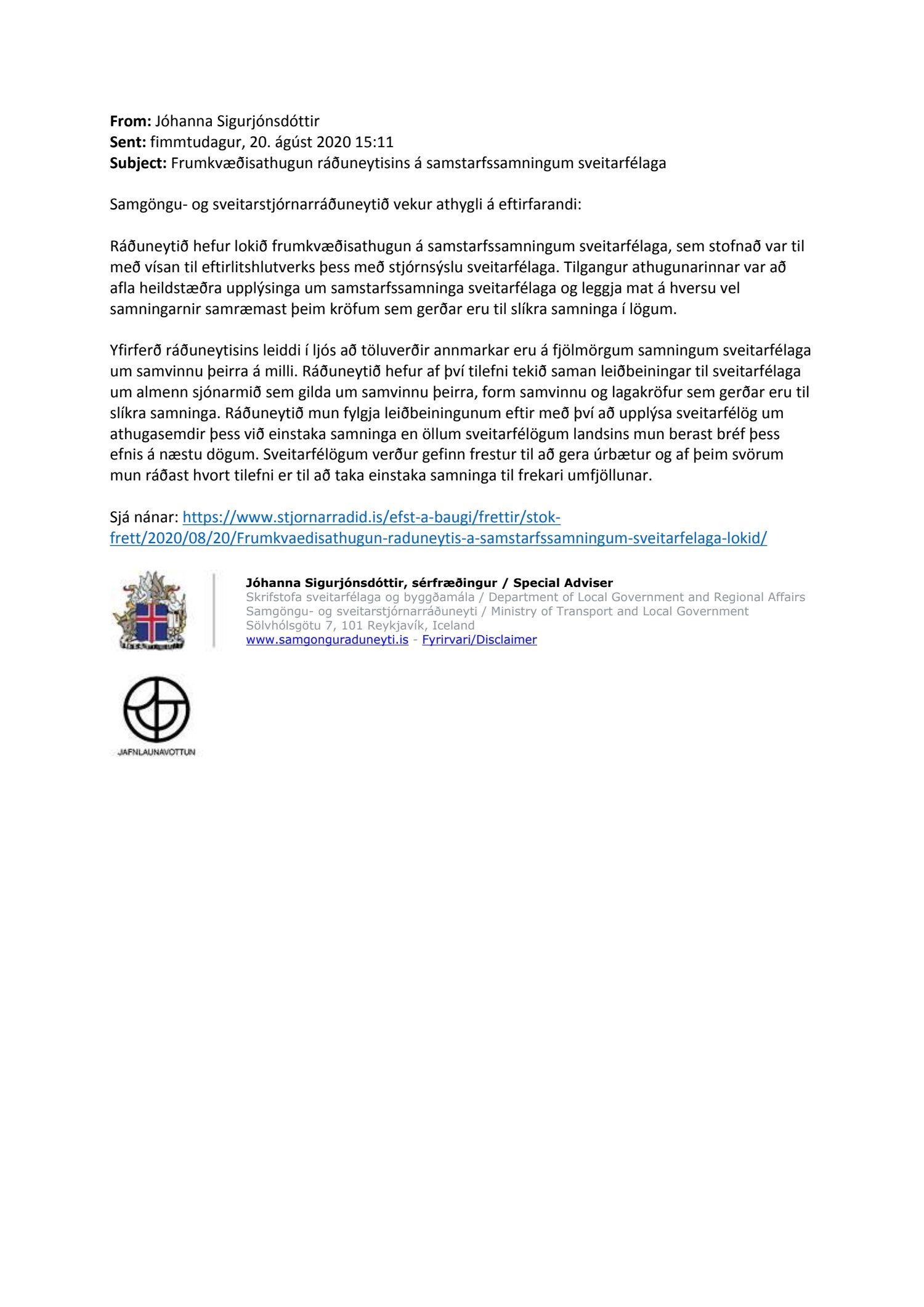 Tölvupóstur - Frumkvæðisathugun ráðuneytisins á samstarfssamningum sveitarfélaga.pdf