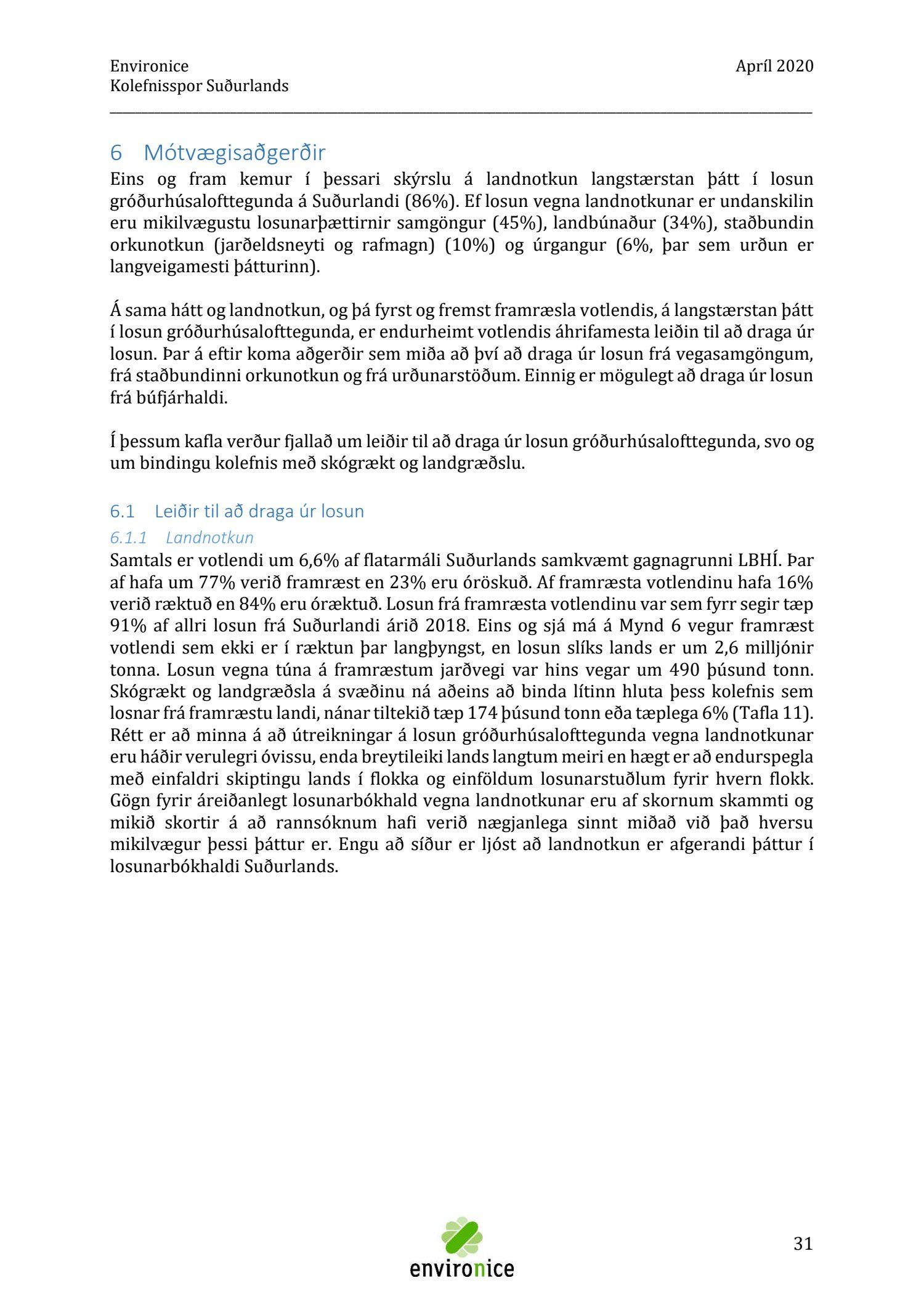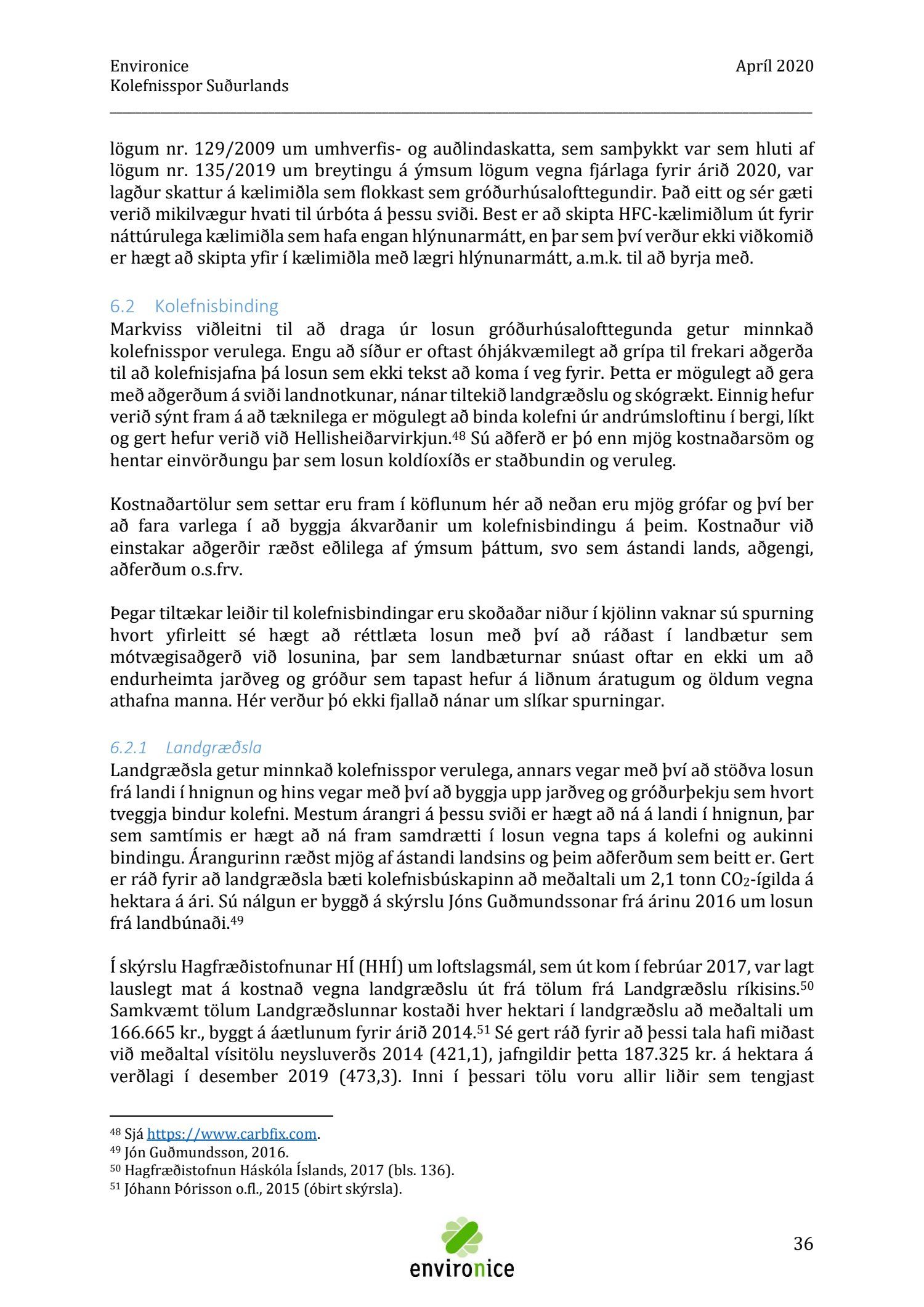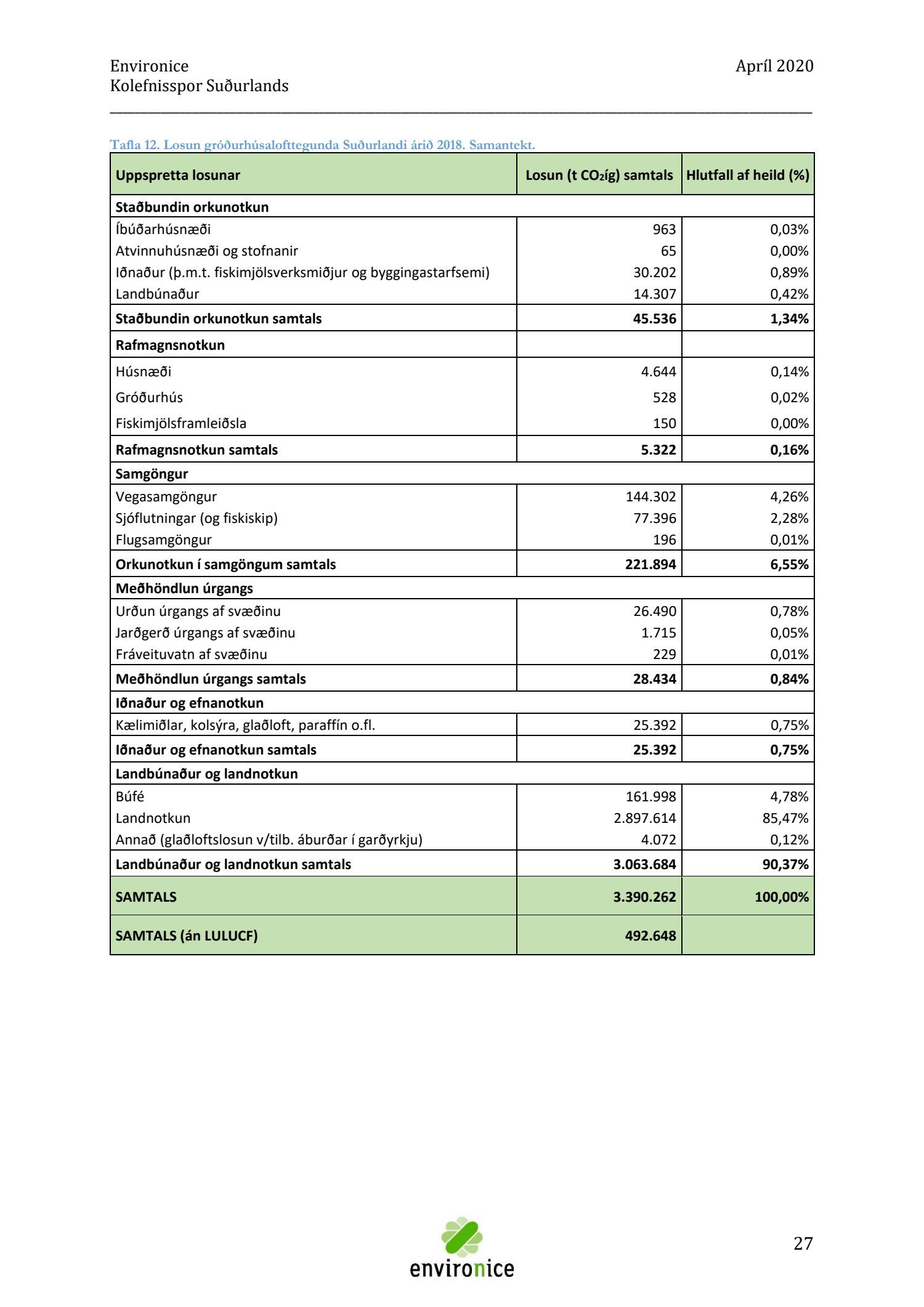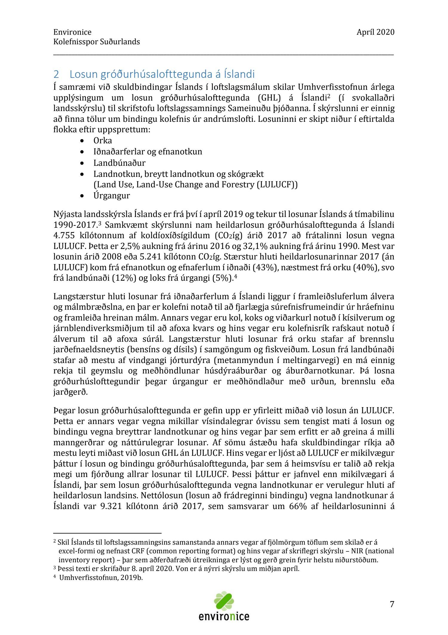 Skýrsla sem unnin var af Umhverfisráðgjöf Íslands ehf. (Environice) fyrir SASS. Verkefnið var eitt af áhersluverkefnum Sóknaráætlunar Suðurlands. Tilgangur verkefnisins var annars vegar að reikna kolefnisspor landshlutans og hins vegar að benda á leiðir til kolefnisjöfnunar.