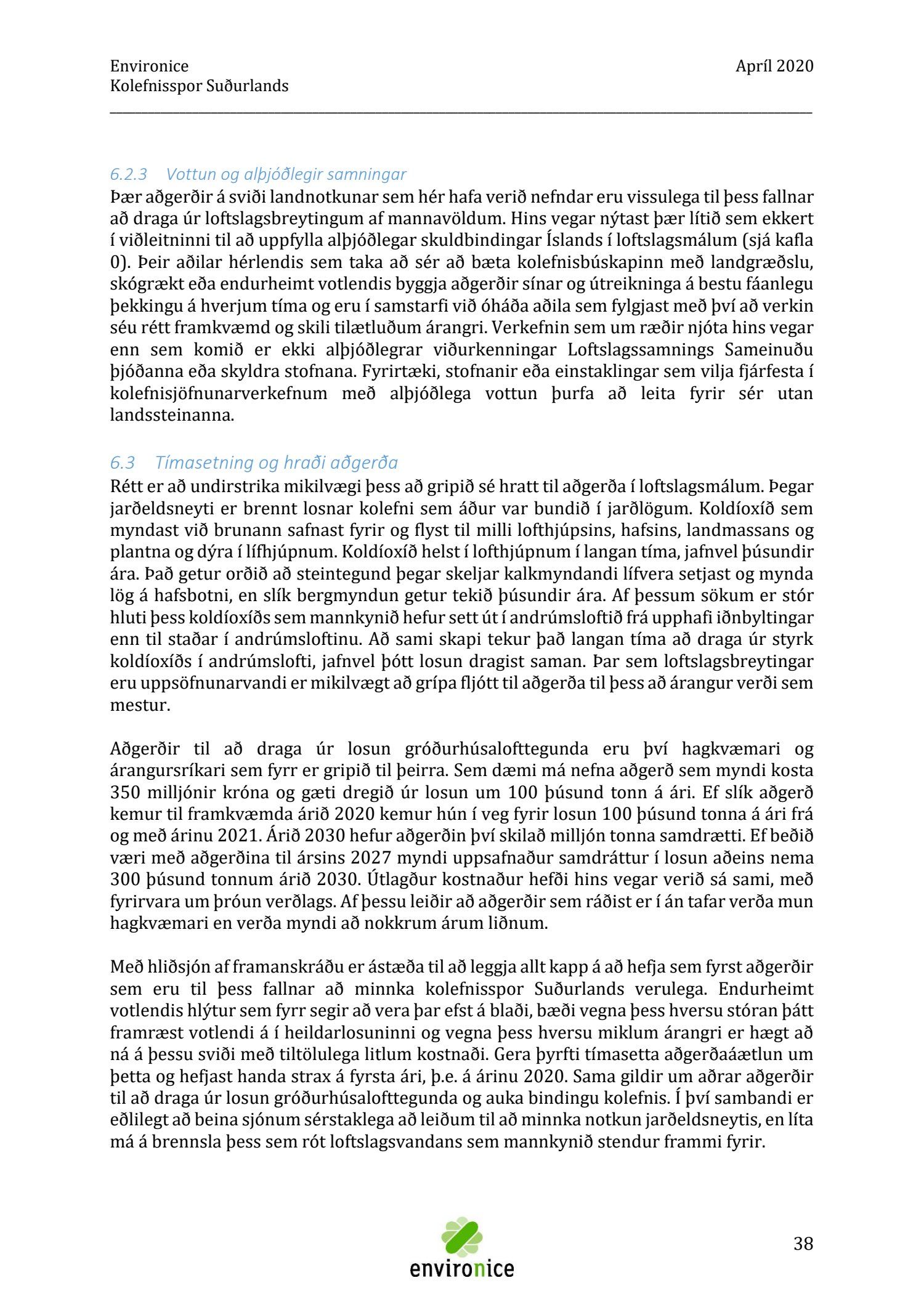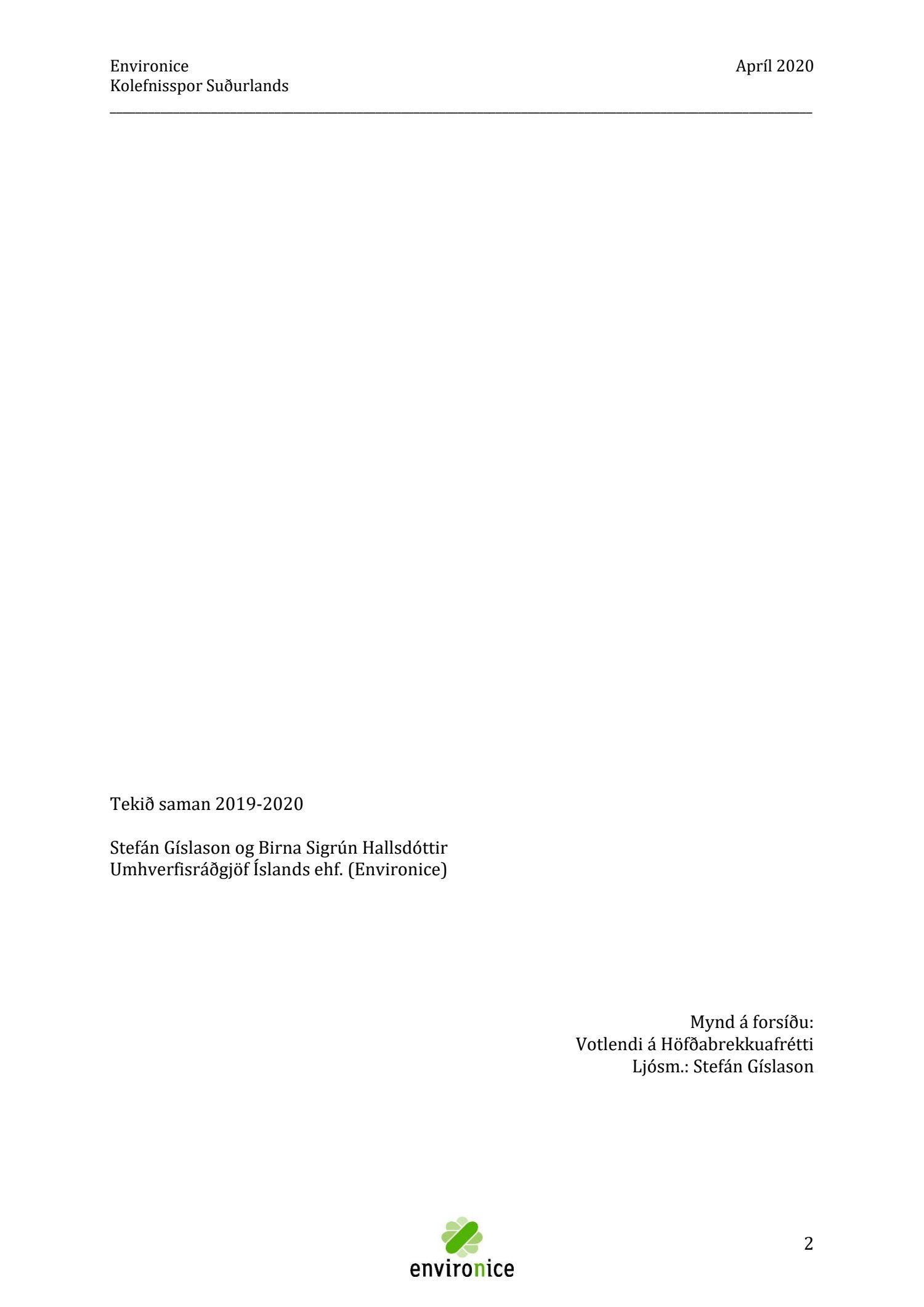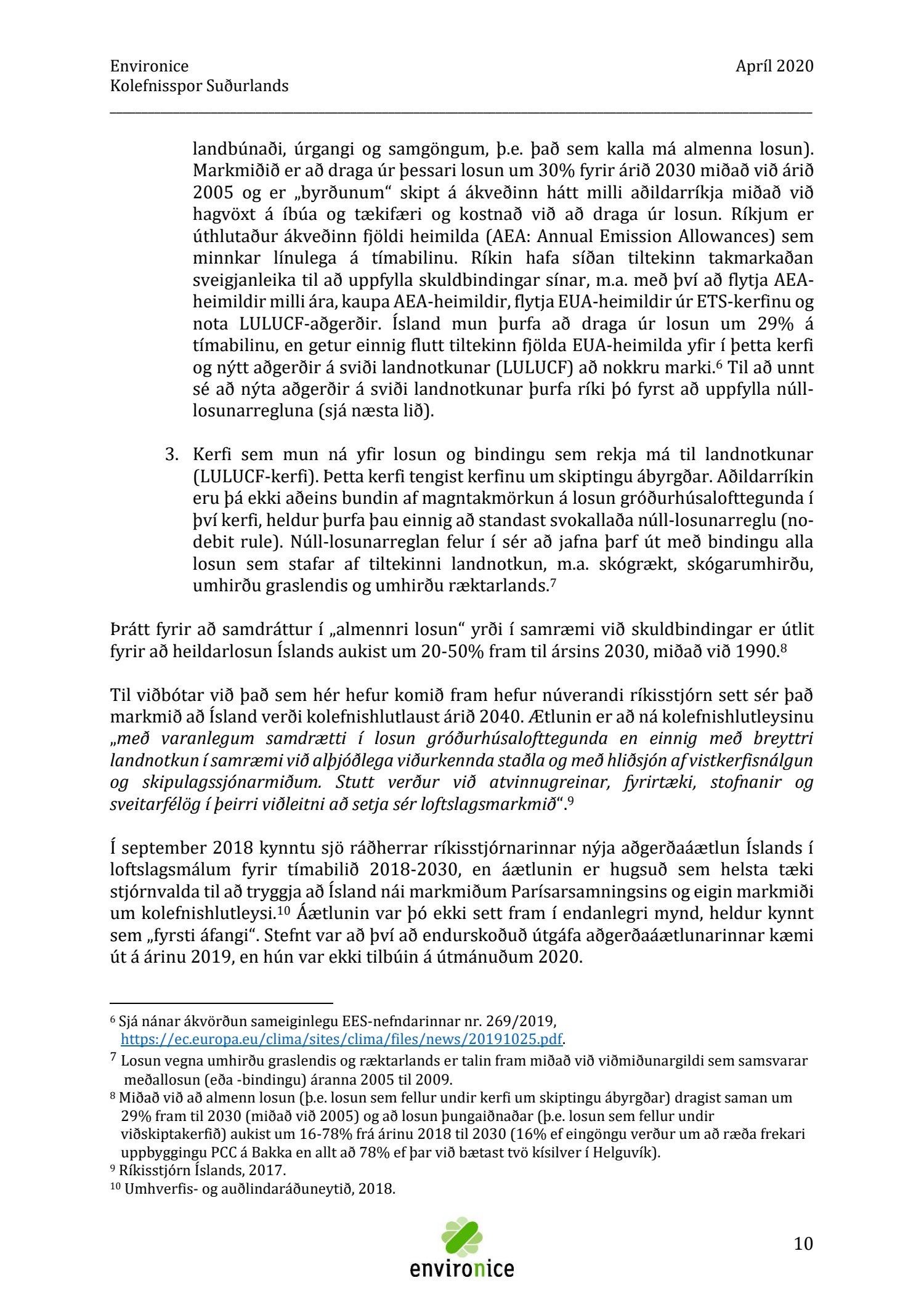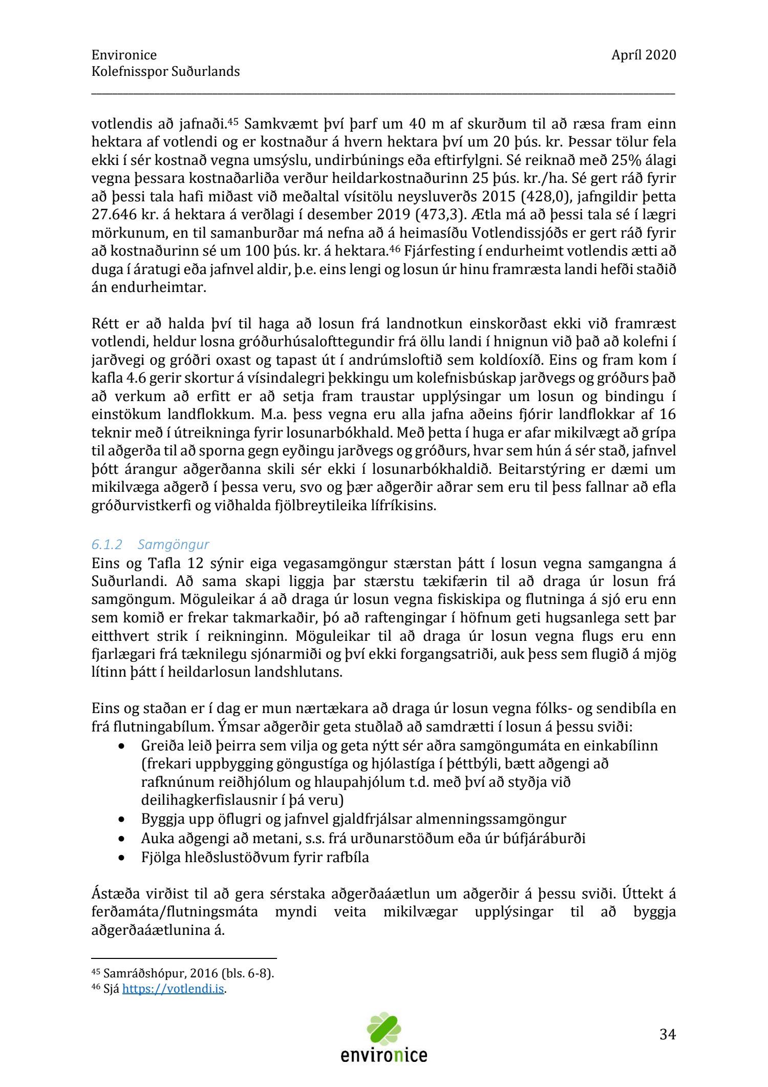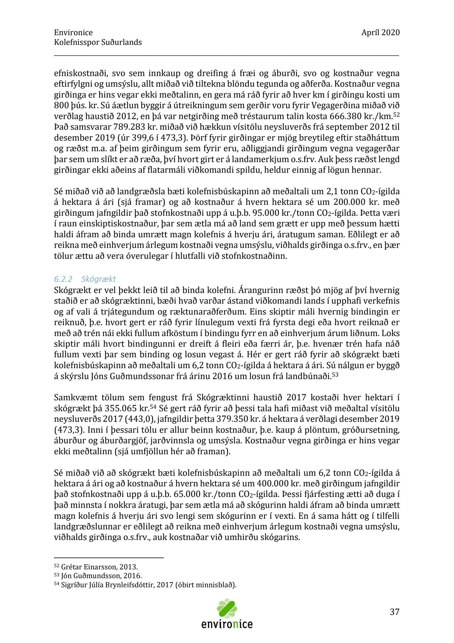 Skýrsla sem unnin var af Umhverfisráðgjöf Íslands ehf. (Environice) fyrir SASS. Verkefnið var eitt af áhersluverkefnum Sóknaráætlunar Suðurlands. Tilgangur verkefnisins var annars vegar að reikna kolefnisspor landshlutans og hins vegar að benda á leiðir til kolefnisjöfnunar.
