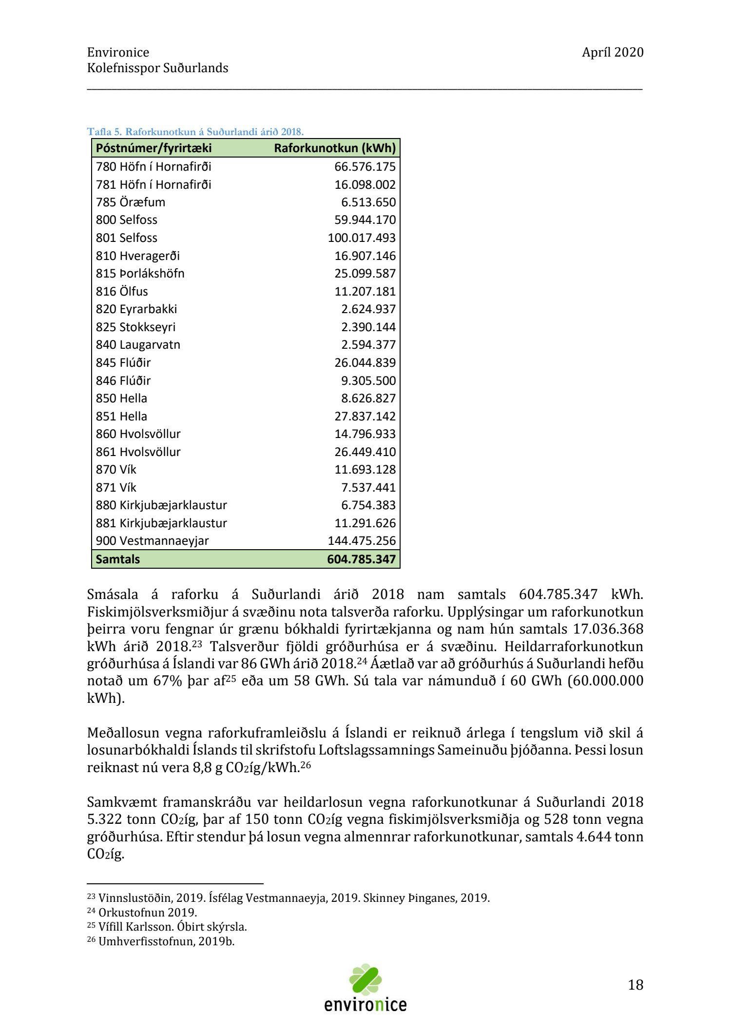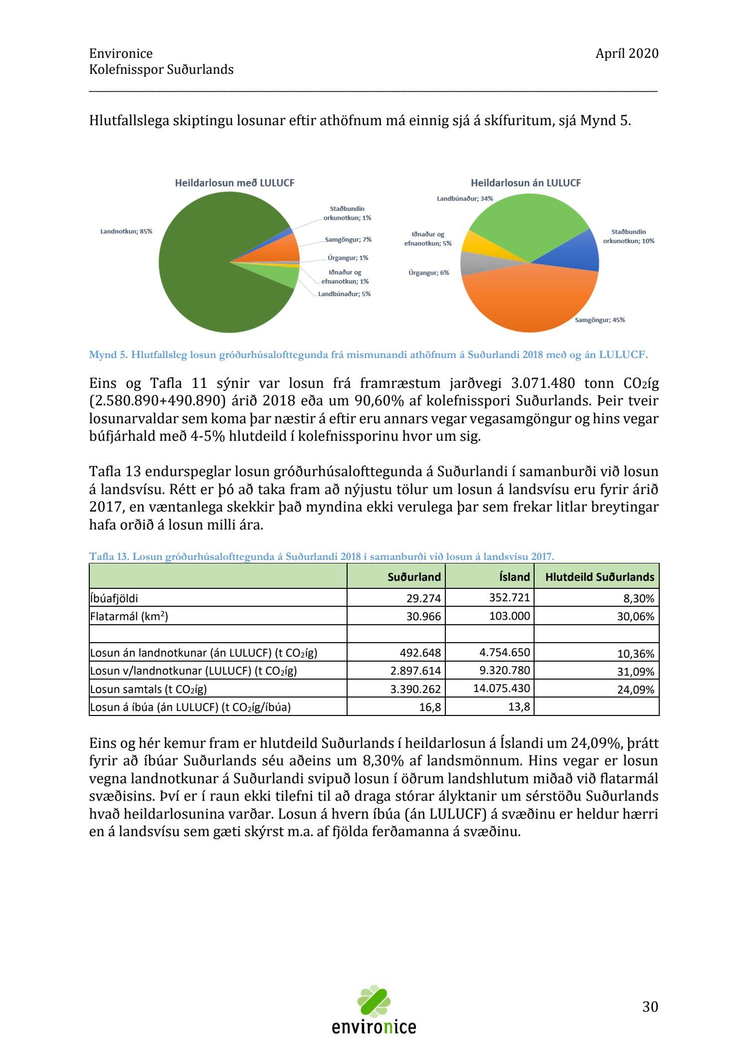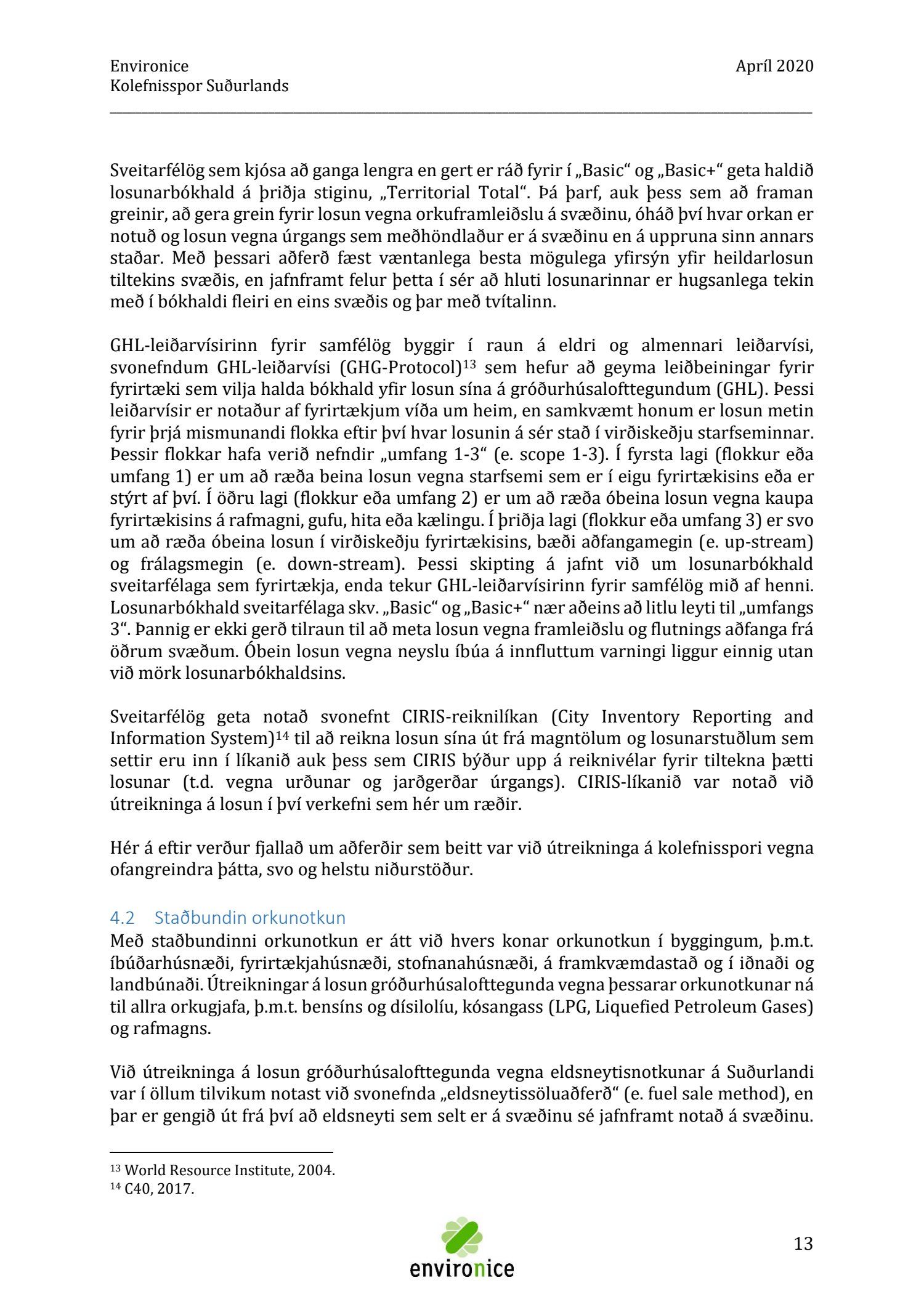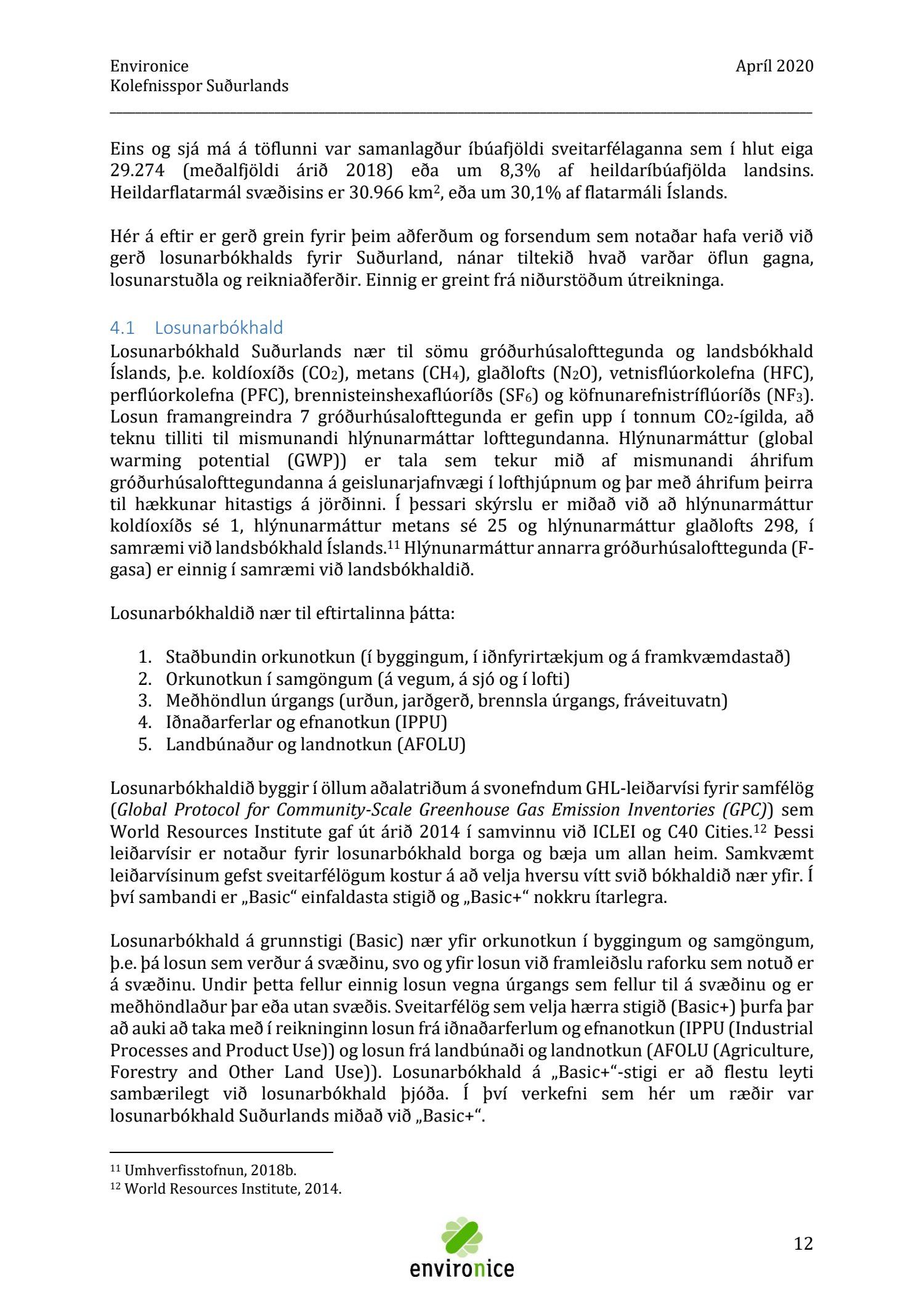 Skýrsla sem unnin var af Umhverfisráðgjöf Íslands ehf. (Environice) fyrir SASS. Verkefnið var eitt af áhersluverkefnum Sóknaráætlunar Suðurlands. Tilgangur verkefnisins var annars vegar að reikna kolefnisspor landshlutans og hins vegar að benda á leiðir til kolefnisjöfnunar.