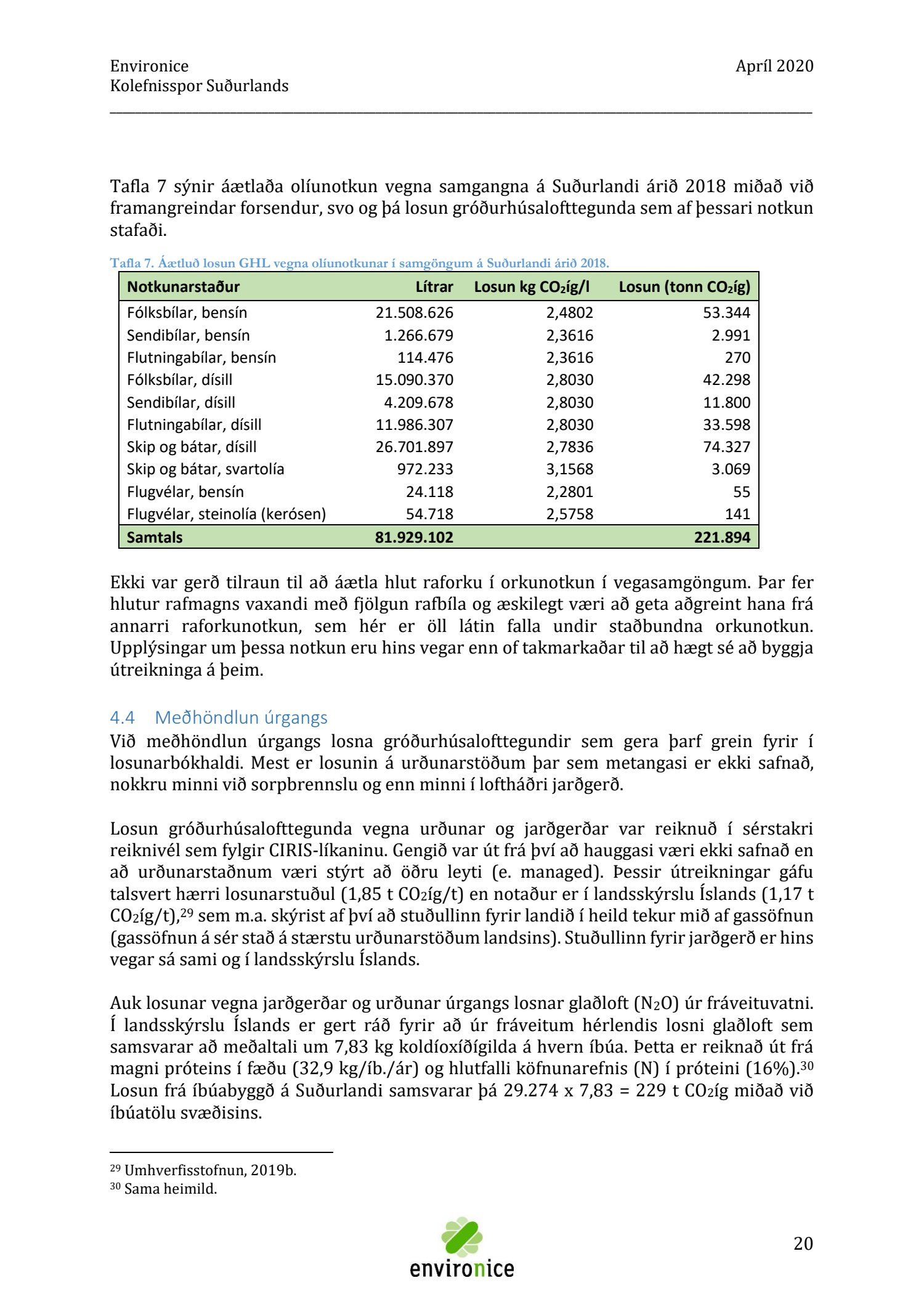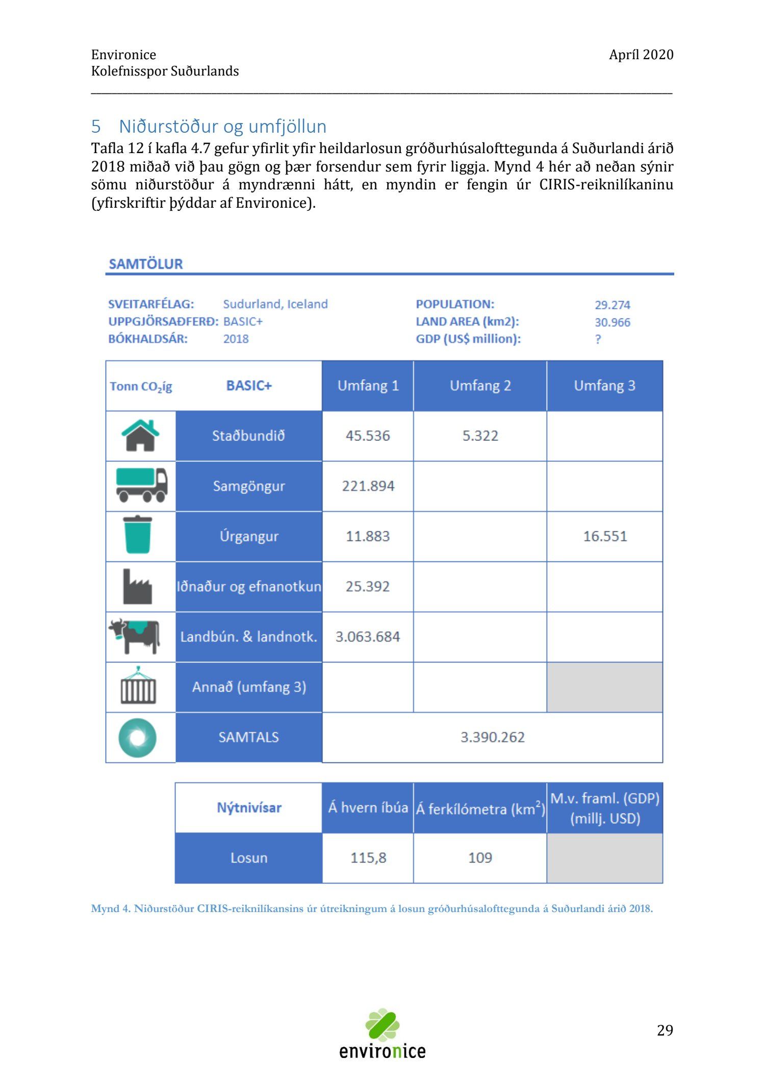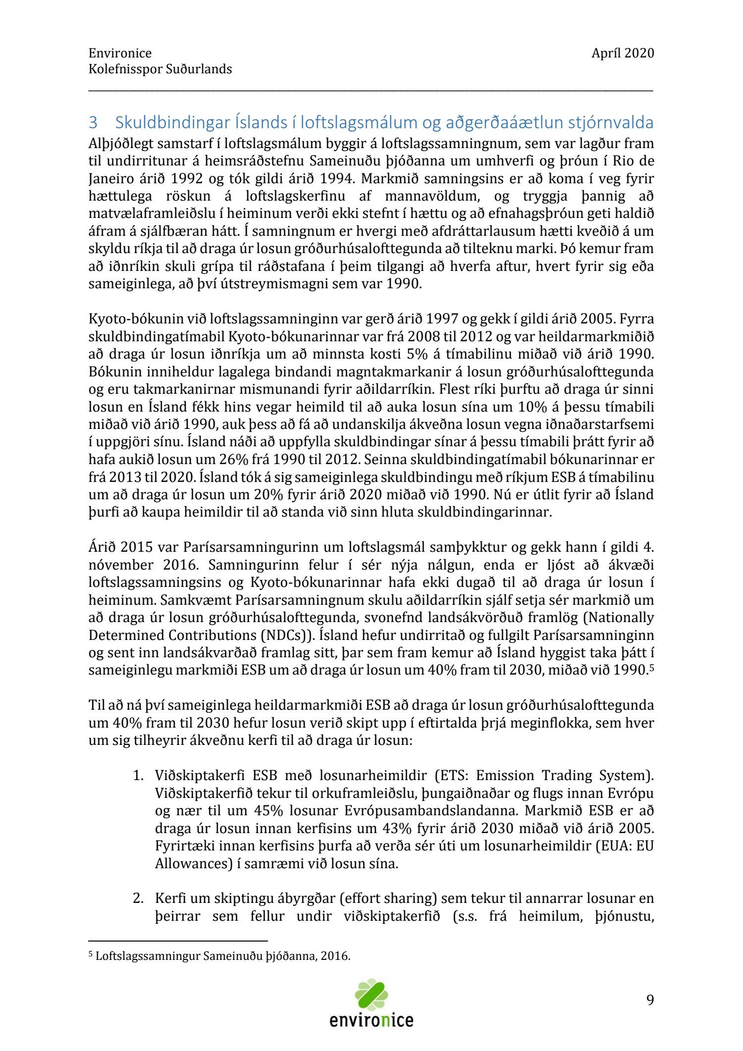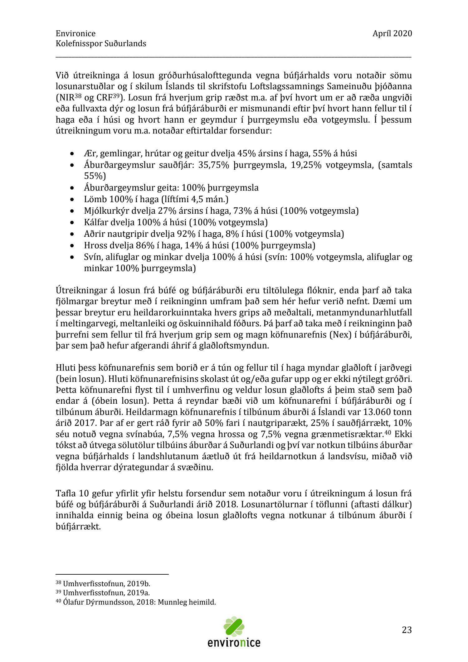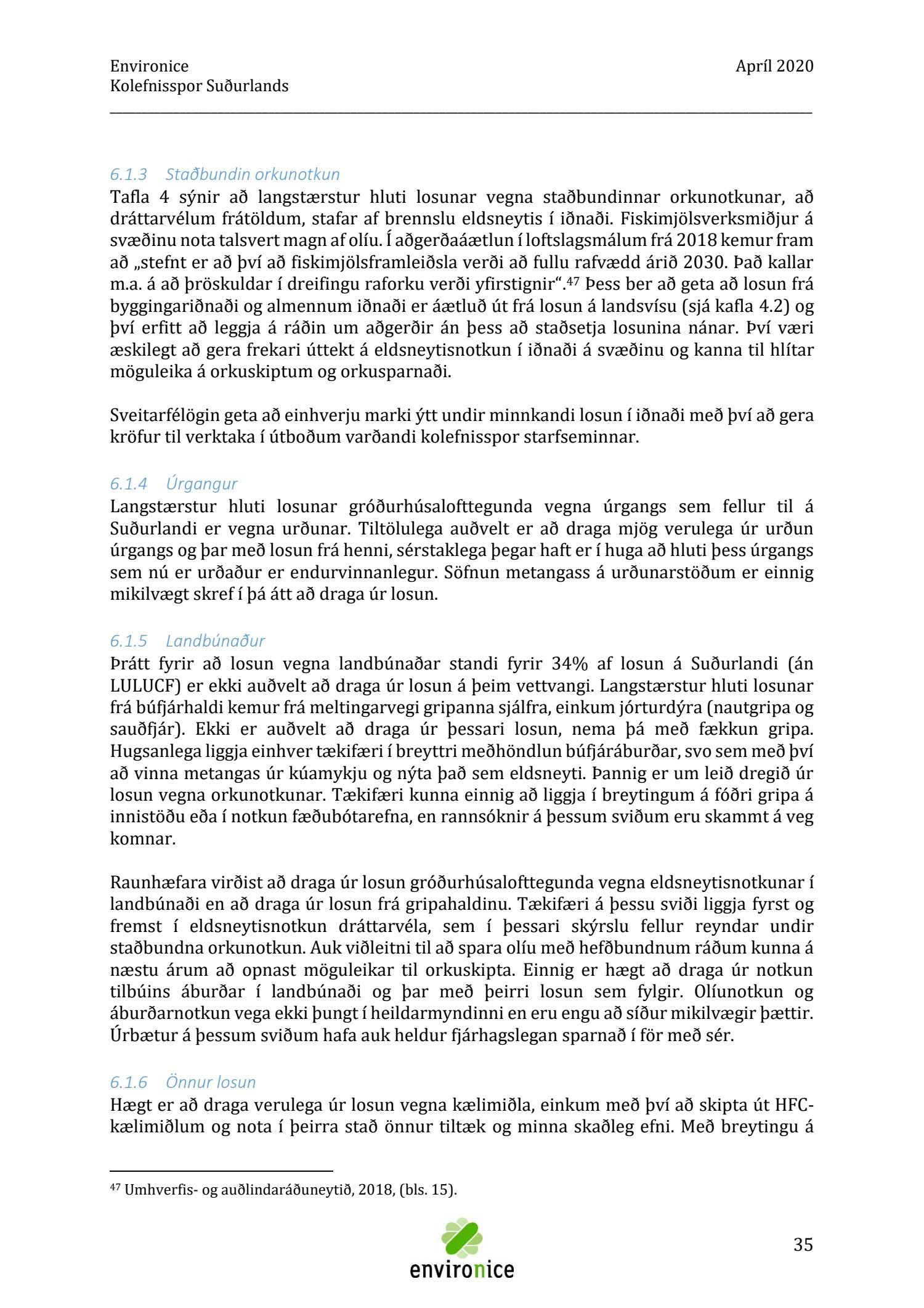 Skýrsla sem unnin var af Umhverfisráðgjöf Íslands ehf. (Environice) fyrir SASS. Verkefnið var eitt af áhersluverkefnum Sóknaráætlunar Suðurlands. Tilgangur verkefnisins var annars vegar að reikna kolefnisspor landshlutans og hins vegar að benda á leiðir til kolefnisjöfnunar.