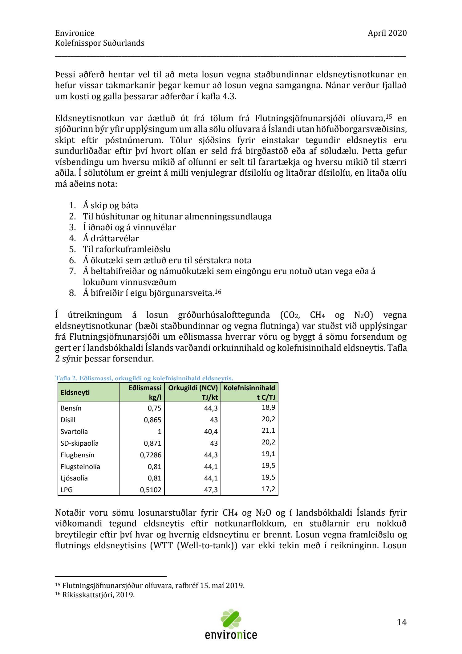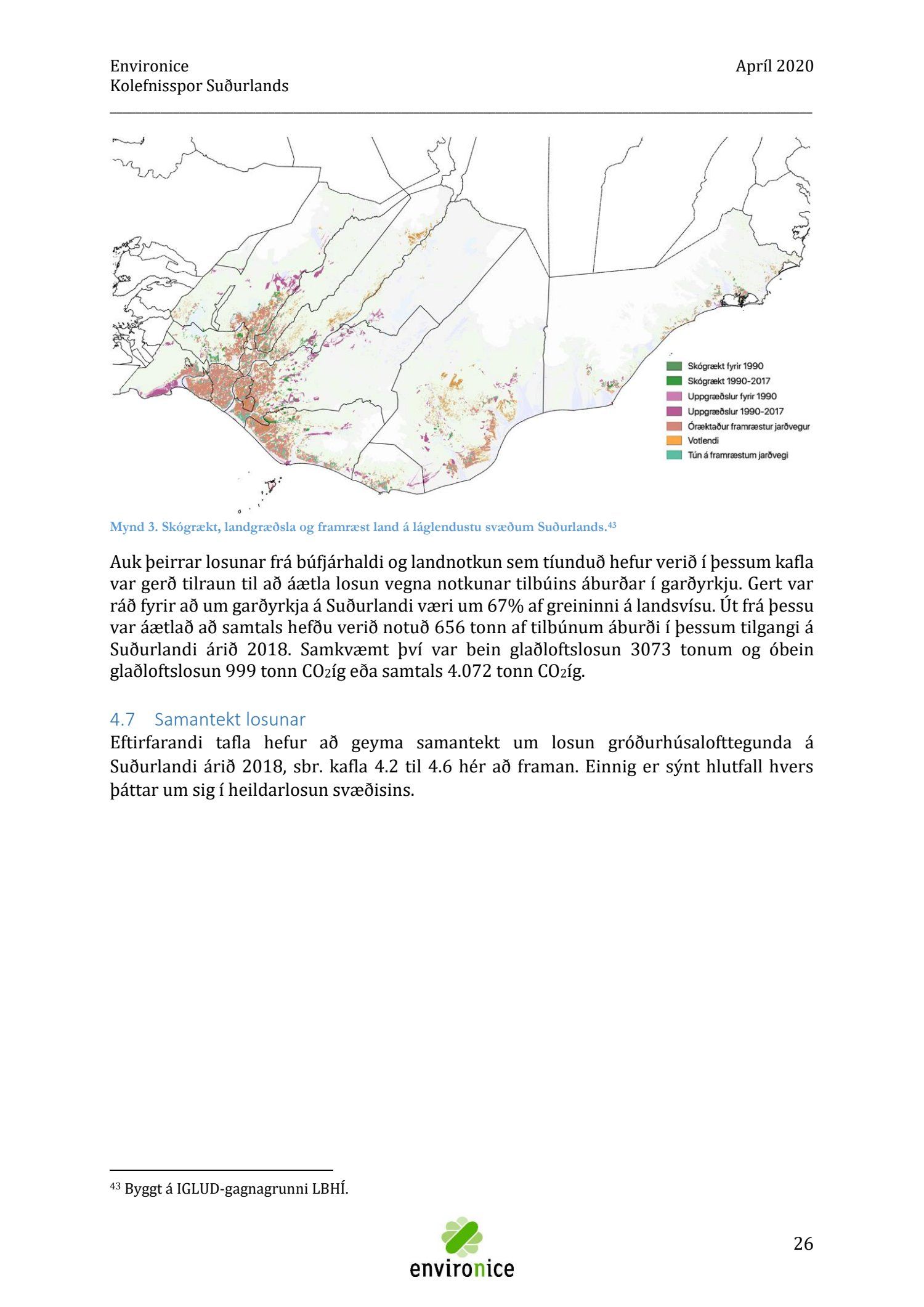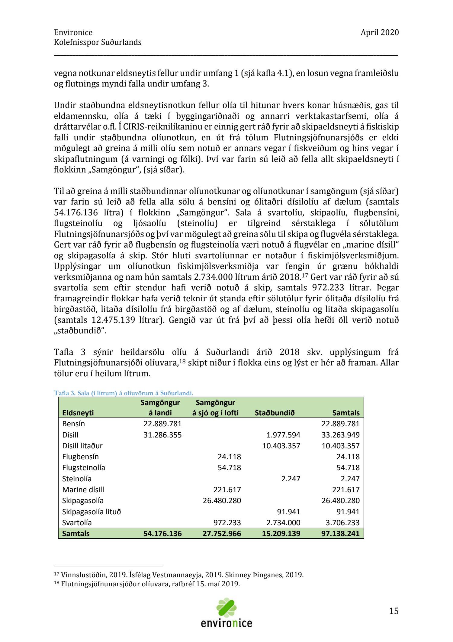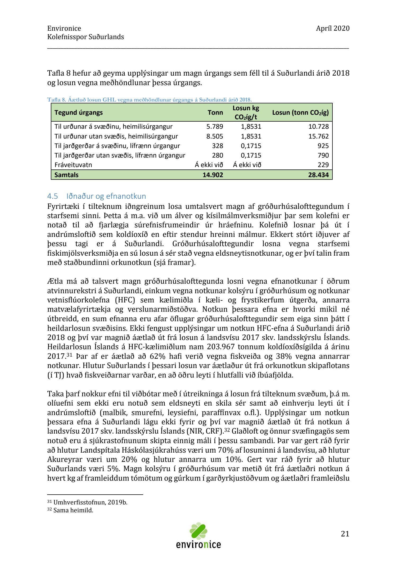 Skýrsla sem unnin var af Umhverfisráðgjöf Íslands ehf. (Environice) fyrir SASS. Verkefnið var eitt af áhersluverkefnum Sóknaráætlunar Suðurlands. Tilgangur verkefnisins var annars vegar að reikna kolefnisspor landshlutans og hins vegar að benda á leiðir til kolefnisjöfnunar.