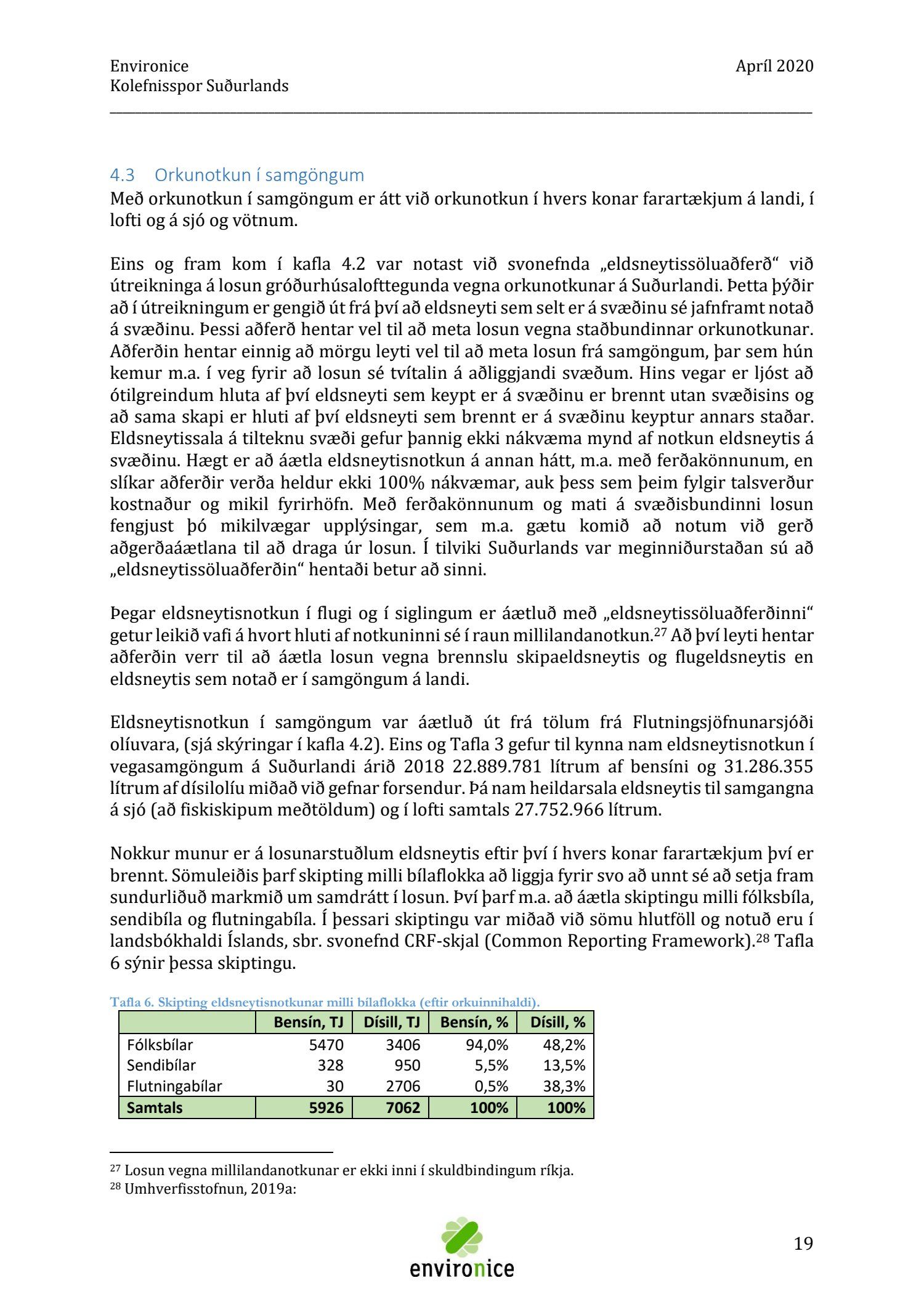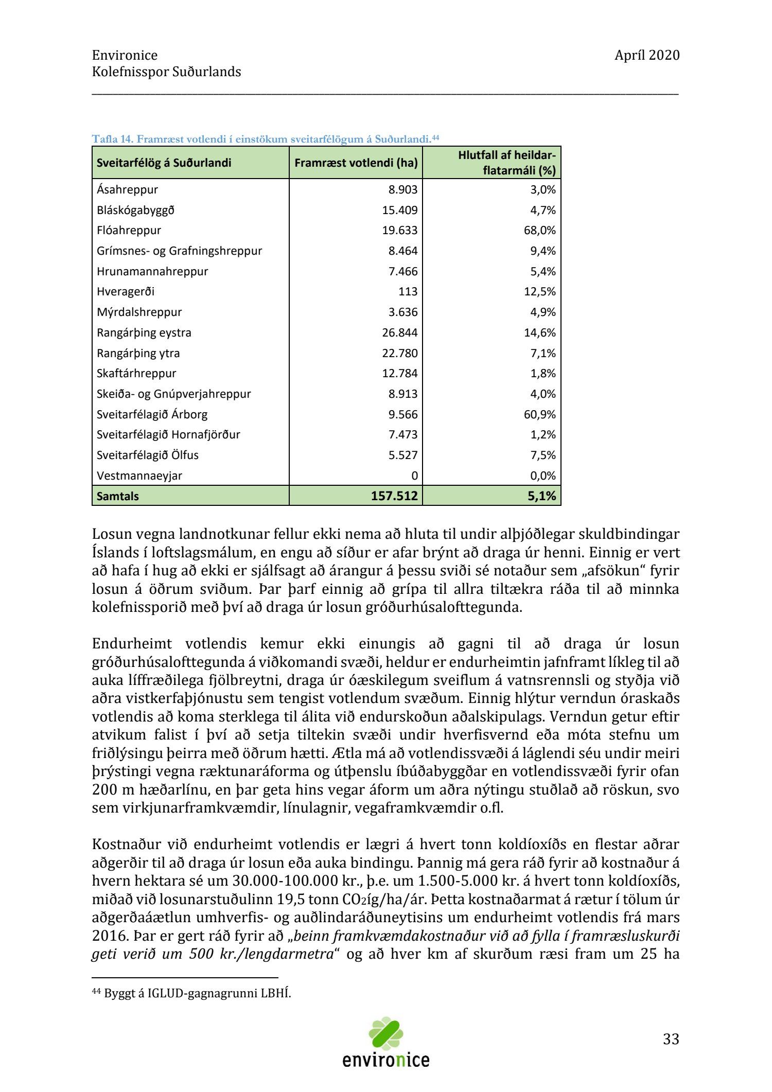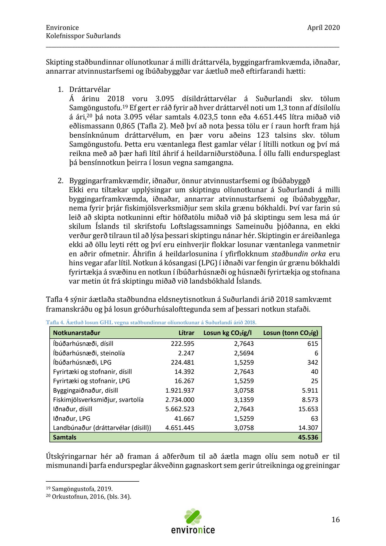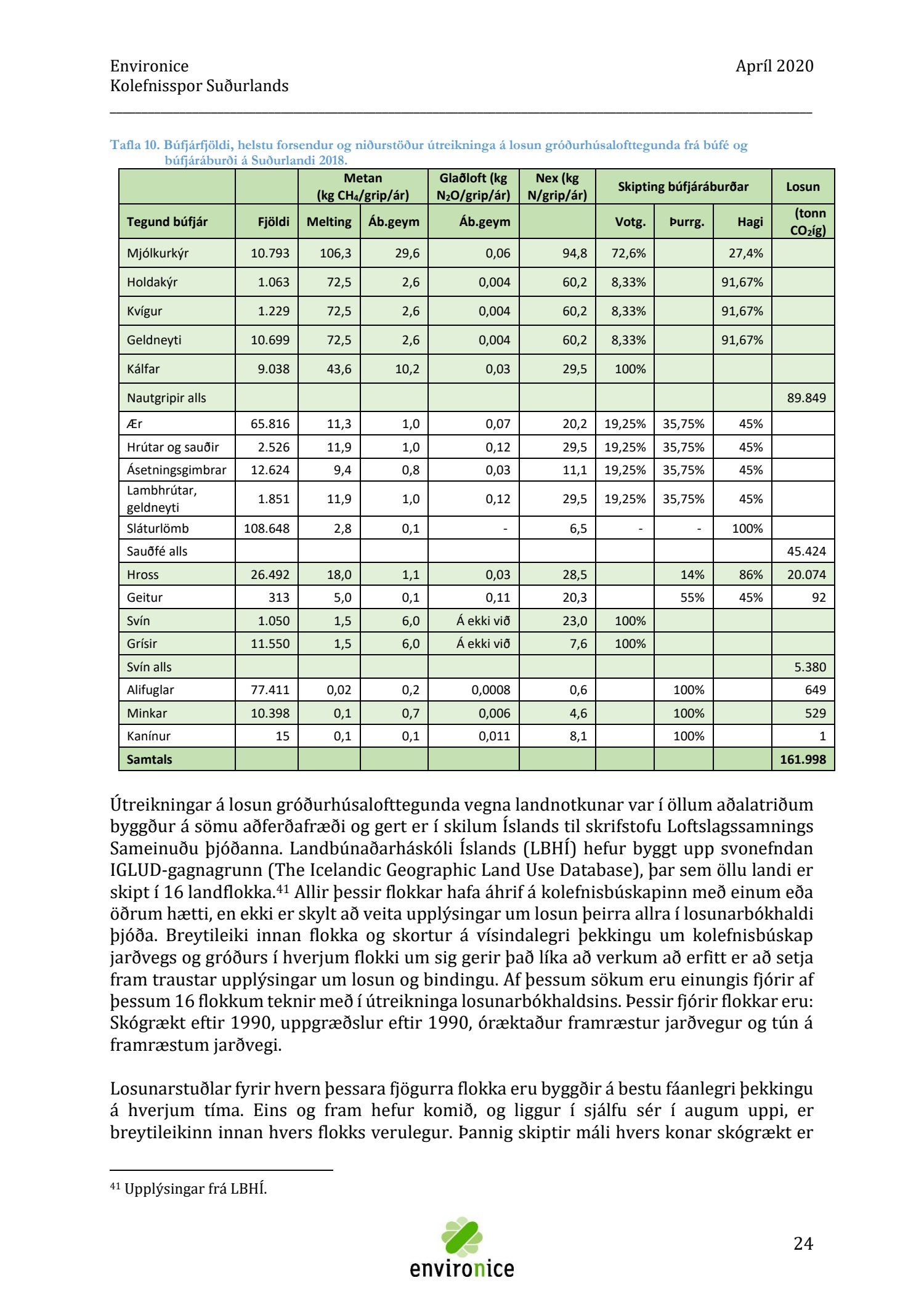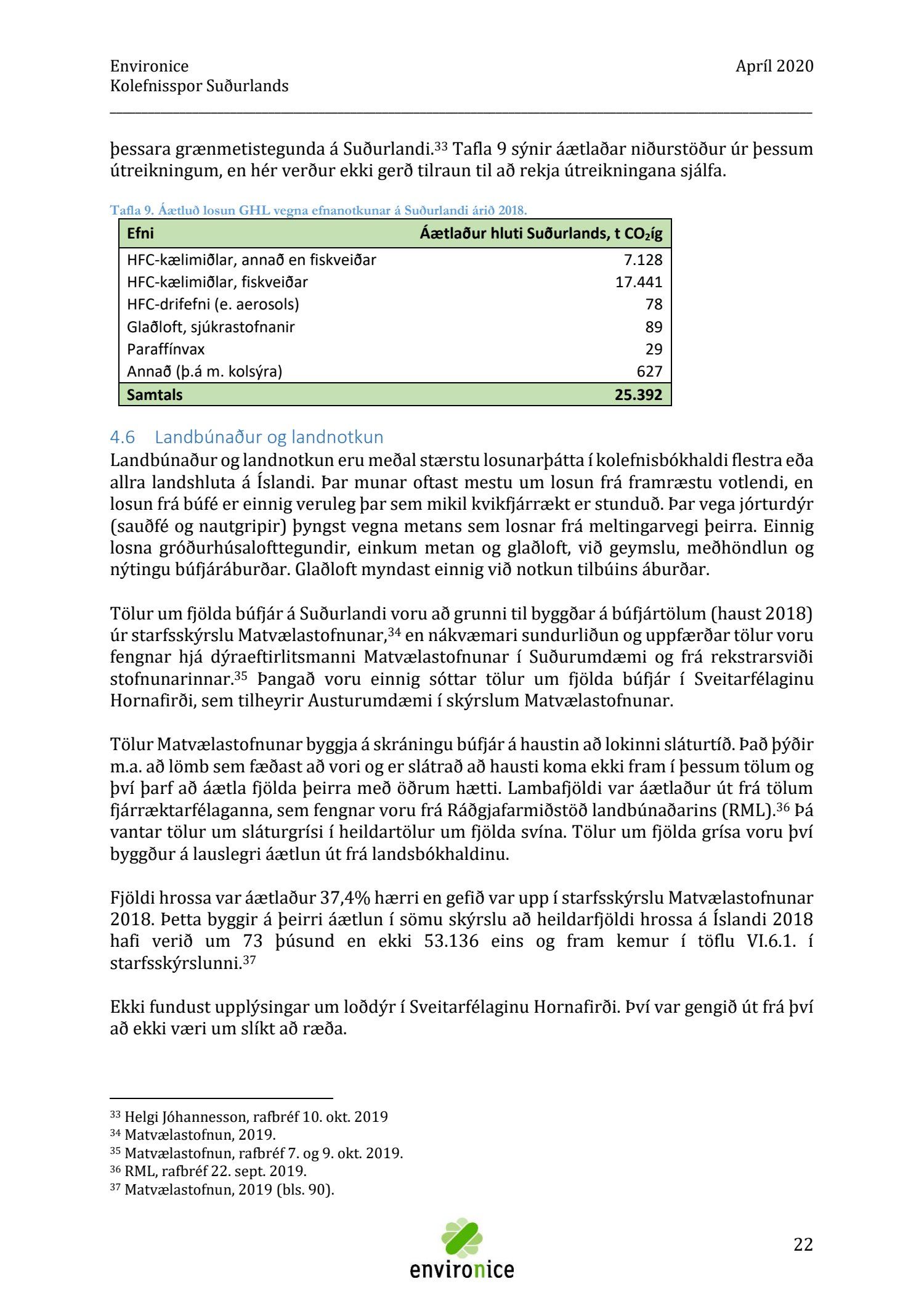 Skýrsla sem unnin var af Umhverfisráðgjöf Íslands ehf. (Environice) fyrir SASS. Verkefnið var eitt af áhersluverkefnum Sóknaráætlunar Suðurlands. Tilgangur verkefnisins var annars vegar að reikna kolefnisspor landshlutans og hins vegar að benda á leiðir til kolefnisjöfnunar.