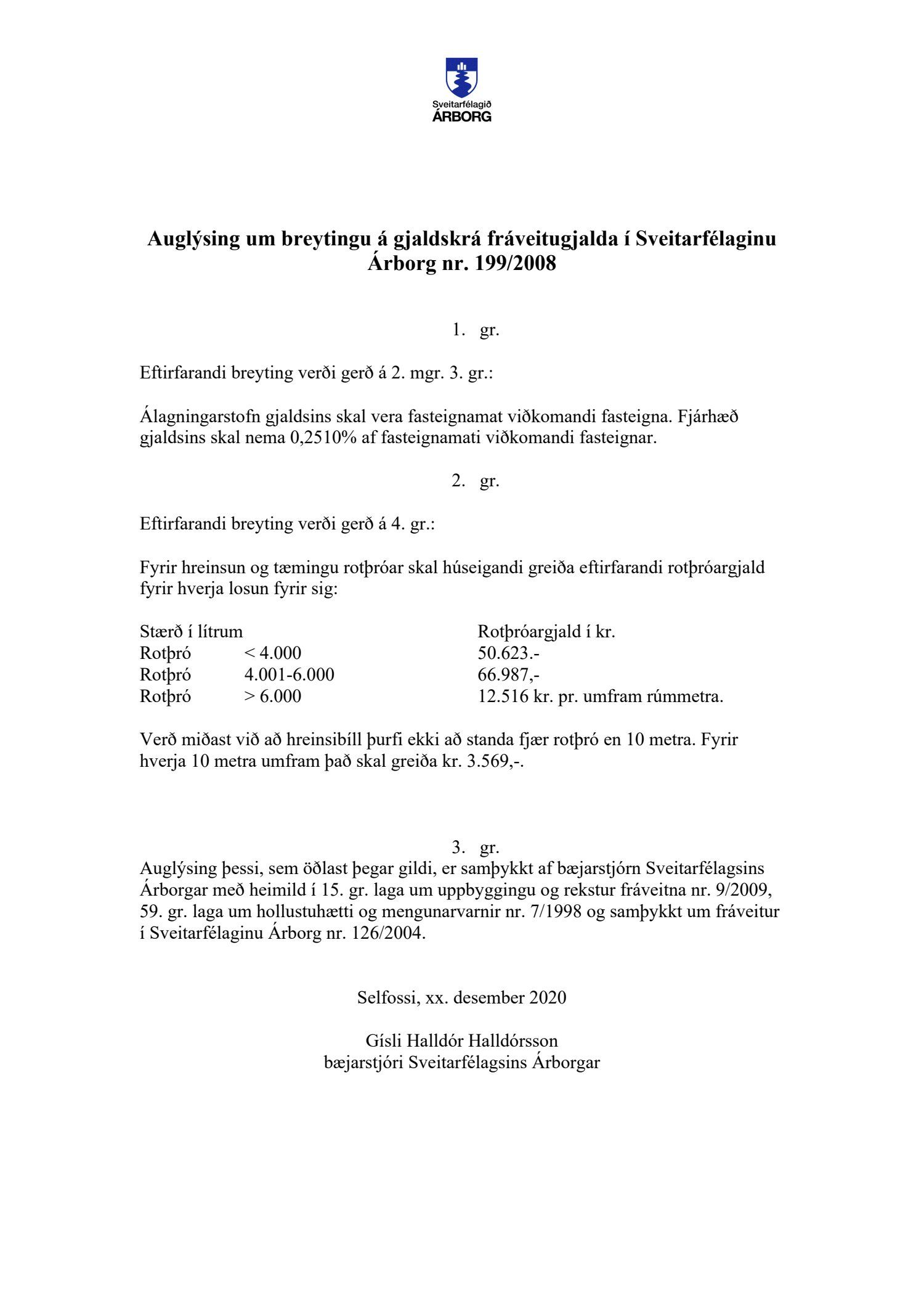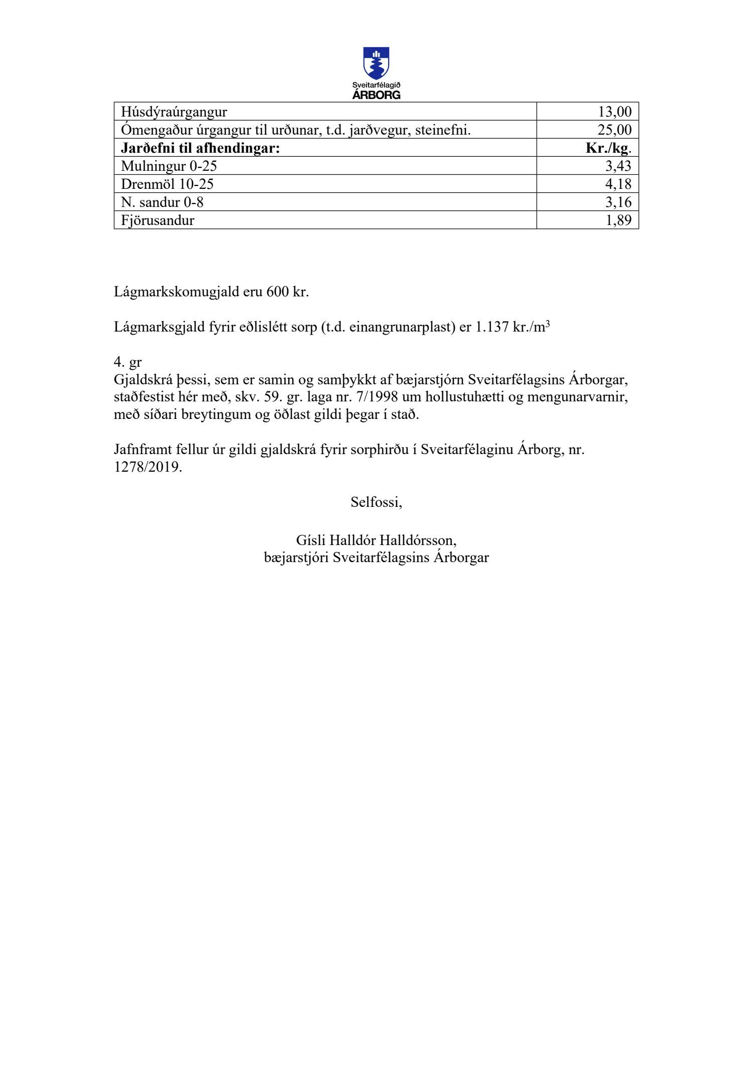Tillögur að breytingum á gjaldskrám fyrir Sveitarfélagið Árborg eru bornar undir atkvæði og samþykktar með 5 atkvæðum. 4 bæjarfulltrúar D-lista sitja hjá.