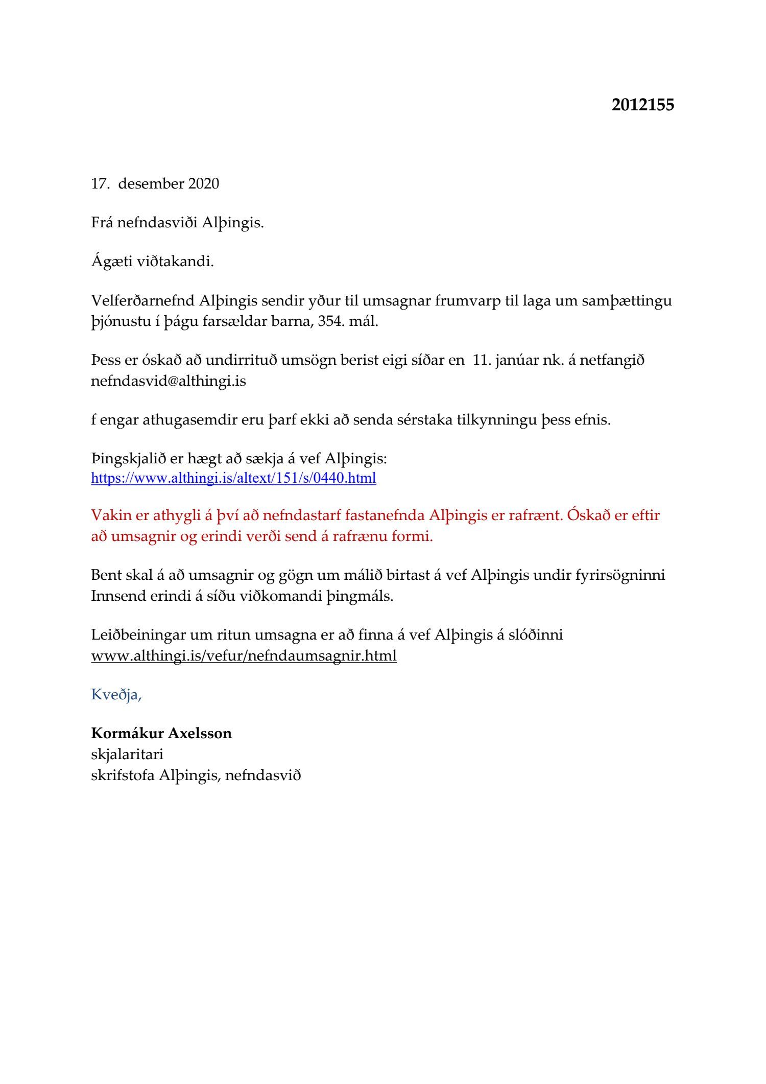 Bæjarráð bendir á að tryggja þarf aukna fjármuni til sveitarfélaga þar sem margt í frumvarpinu kallar á að þau setji enn meiri fjármuni í þróunarstarf í velferðar- og skólaþjónustu. Í því sambandi þarf að horfa til næstu 10 ára á meðan unnið er að þróun verklags og styrkingu þverfaglegrar samvinnu ýmissa stofnana ríkis og sveitarfélaga og félagasamtaka.