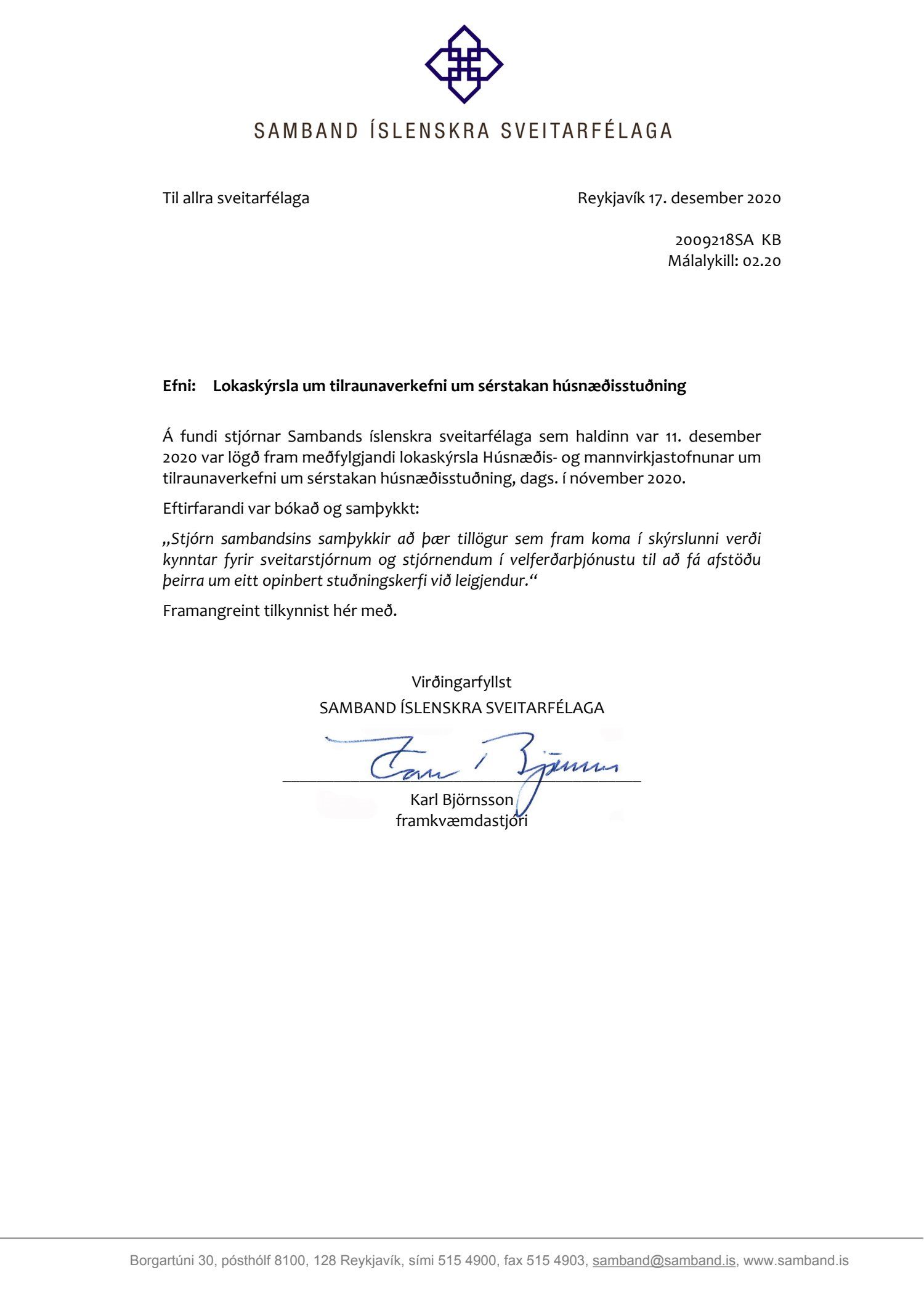 Erindi frá Sambandi íslenskra sveitarfélaga, dags. 17. desember, um lokaskýrslur Húsnæðis- og mannvirkjastofnunar um tilraunaverkefni um sérstakan húsnæðisstuðnimg. Óskað var eftir afstöðu sveitarfélaga um eitt opinbert stuðningskerfi við leigjendur.