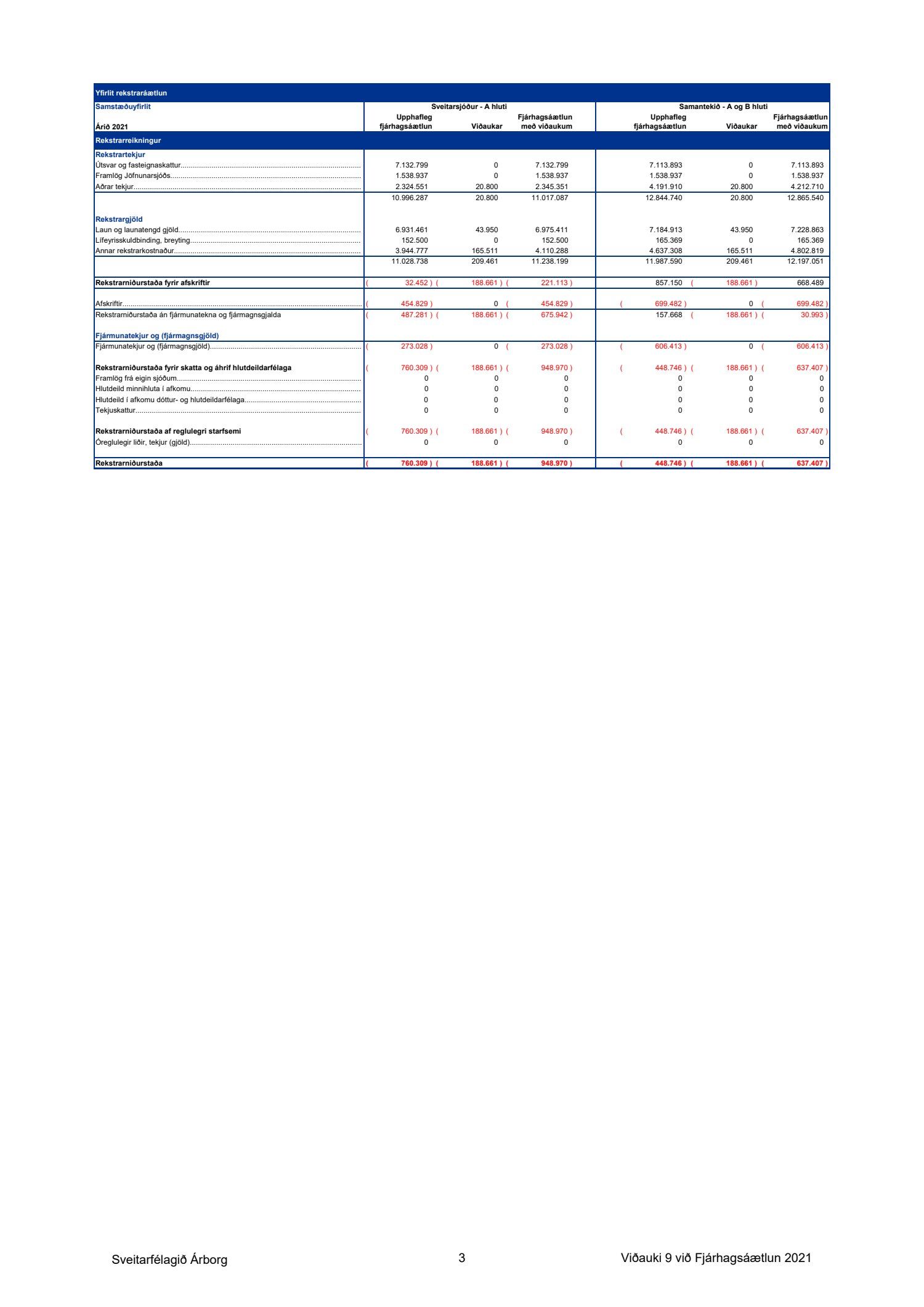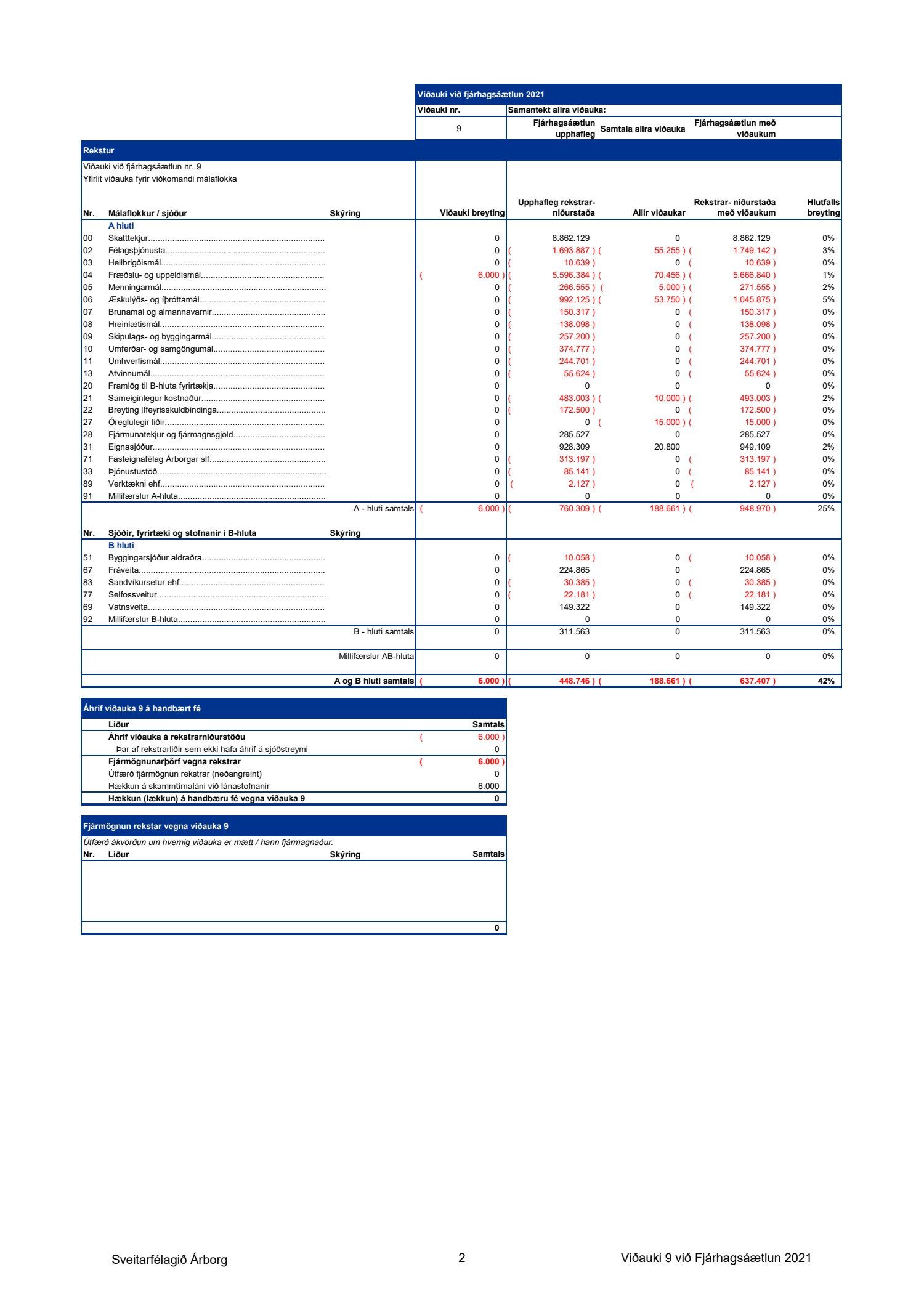 Viðauki nr. 9 samtals kostnaðarauki vegna reksturs 6.000.000 kr.