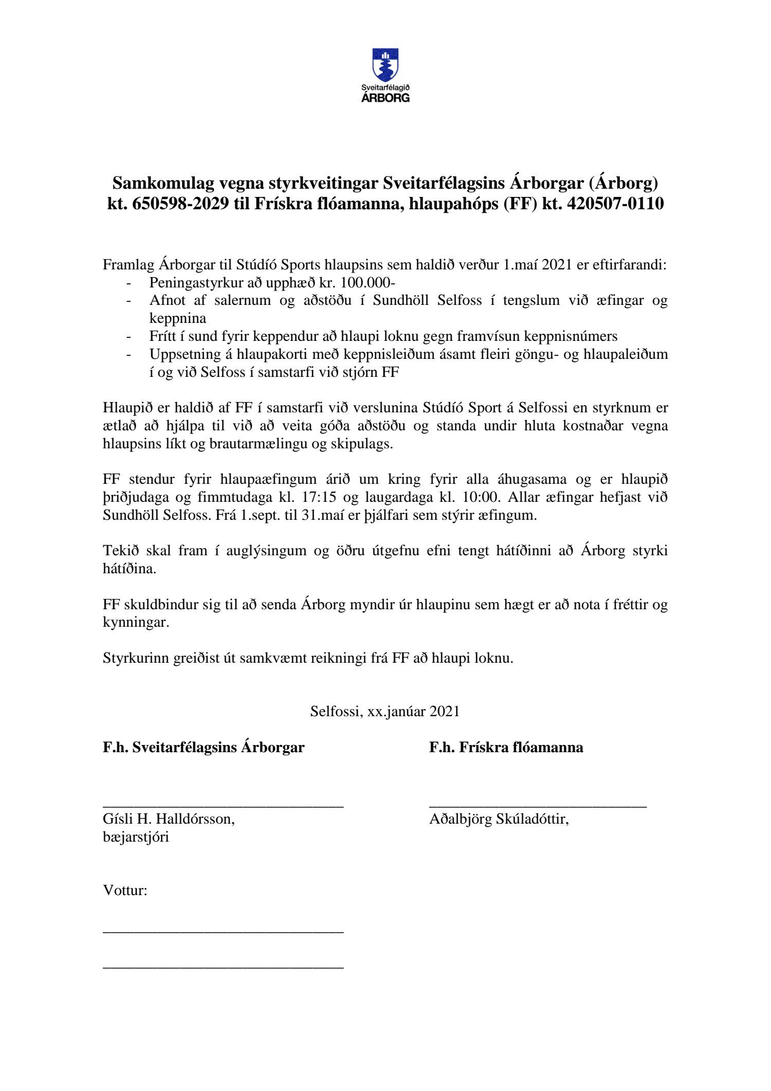 Lögð var fram styrkbeiðni frá hlaupahópnum Frískum flóamönnum vegna fyrirhugaðs keppnishlaups 1.maí nk. á Selfossi.