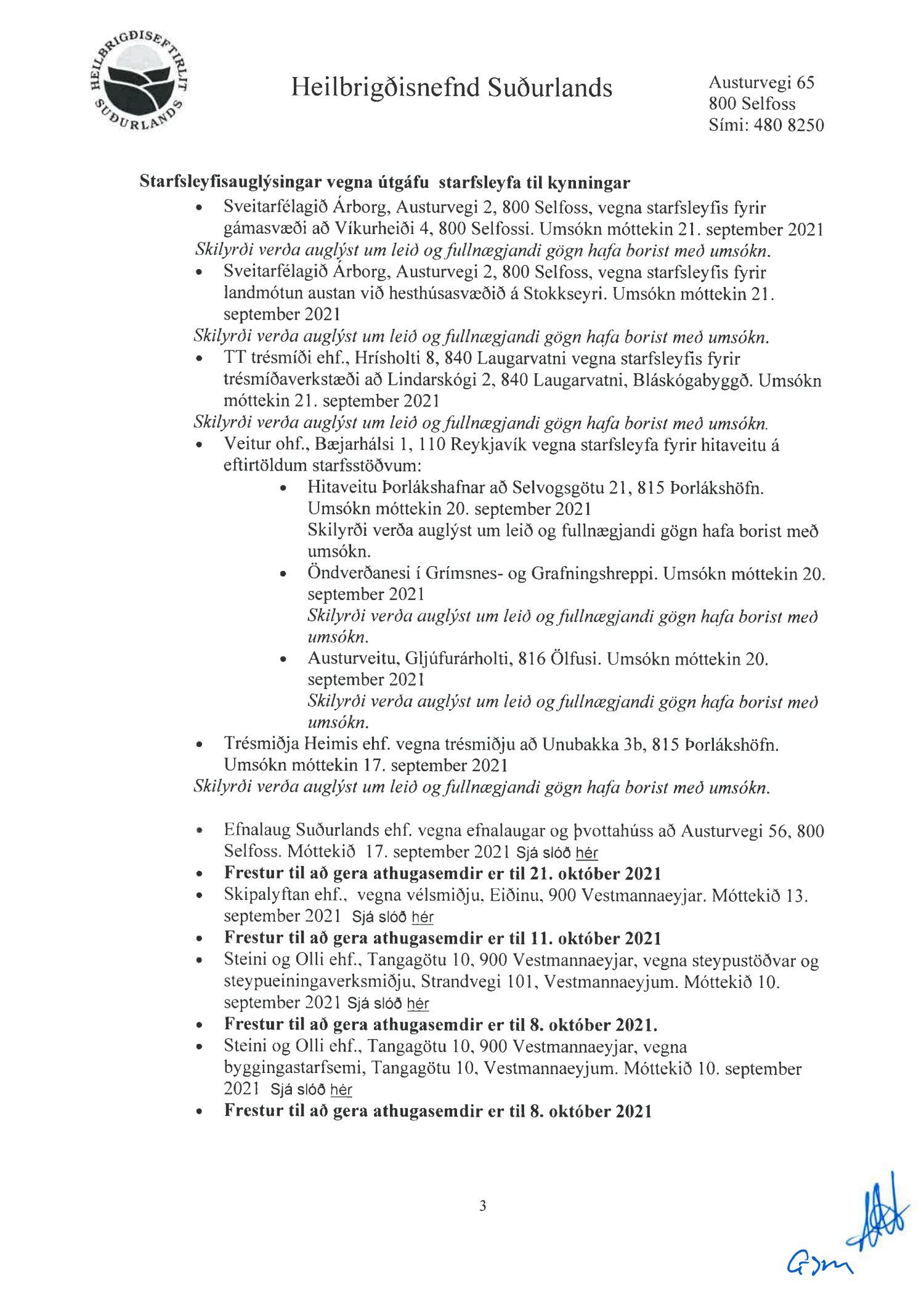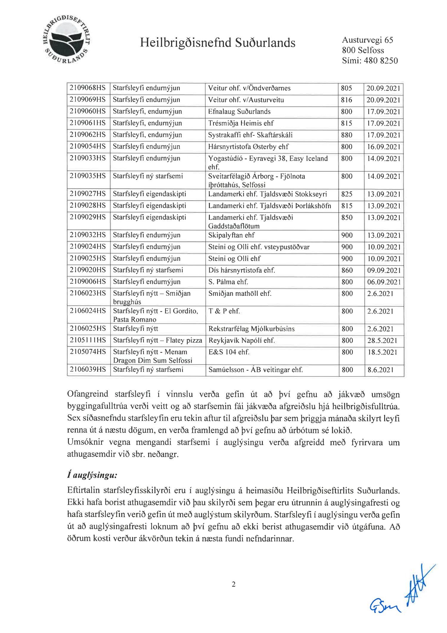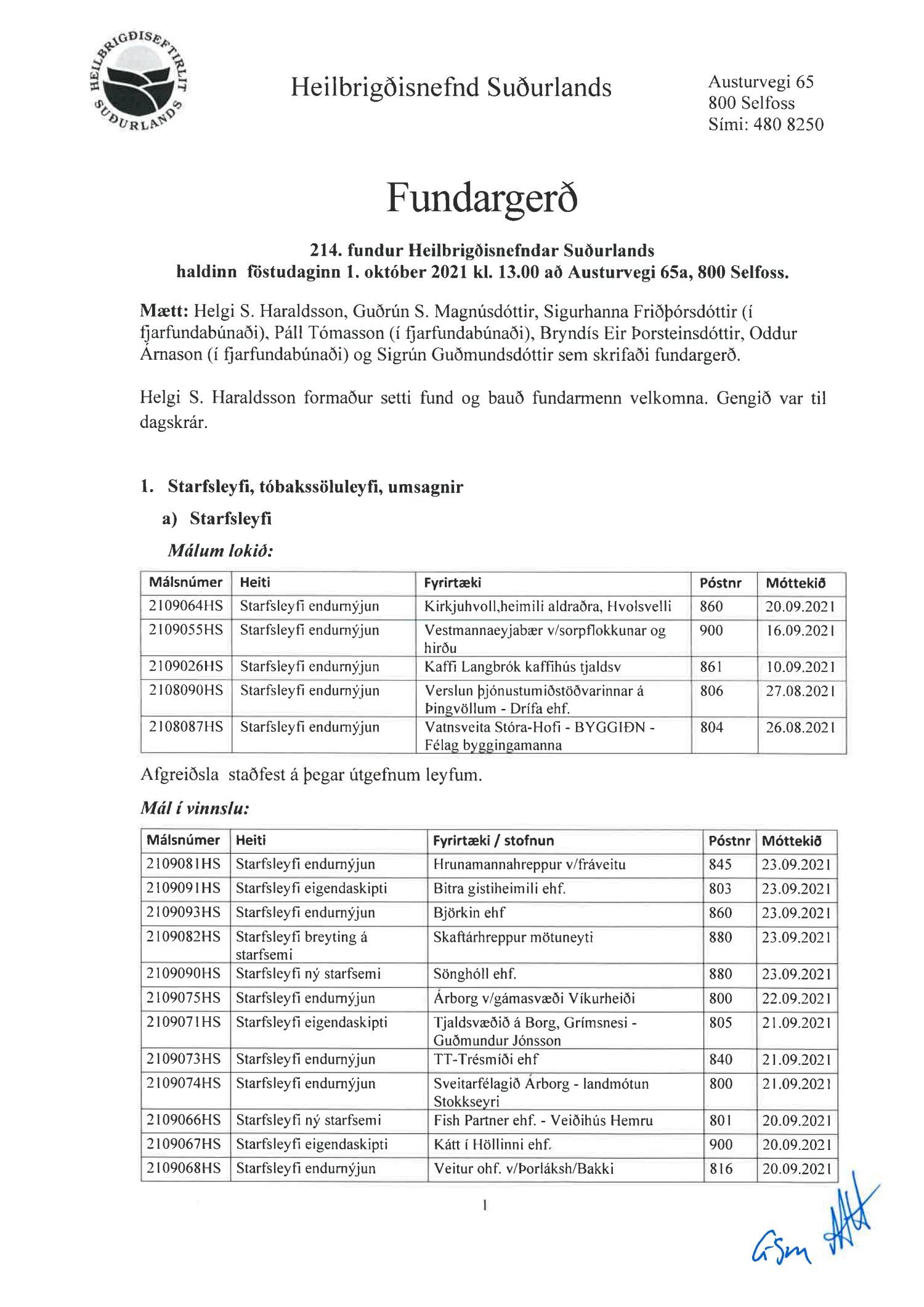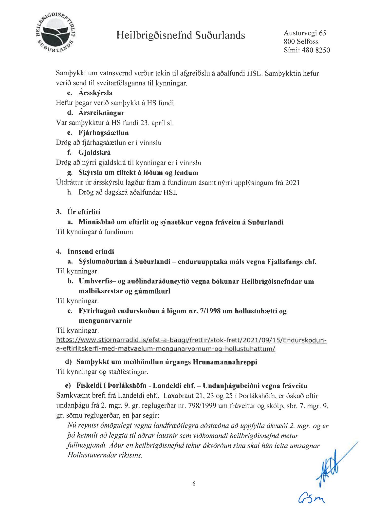 Fundargerðir heilbrigðisnefndar Suðurlands 2021