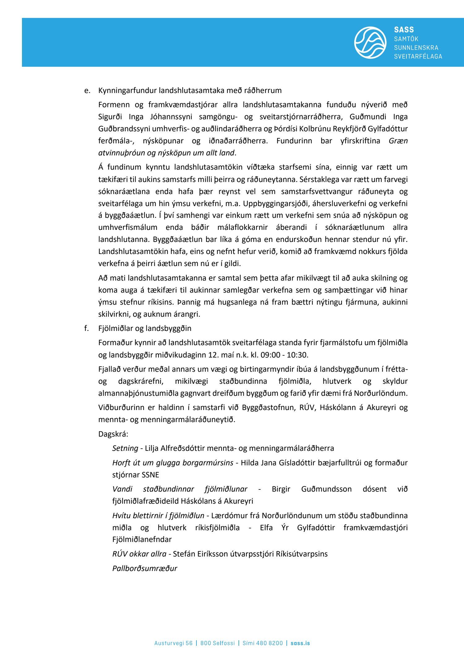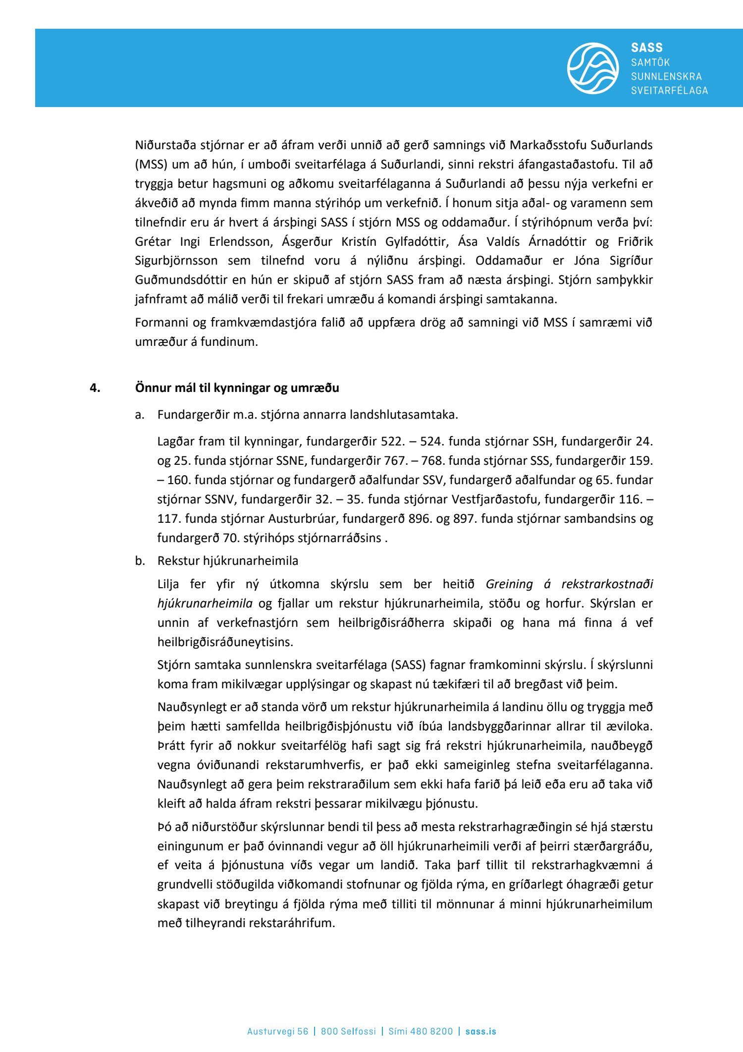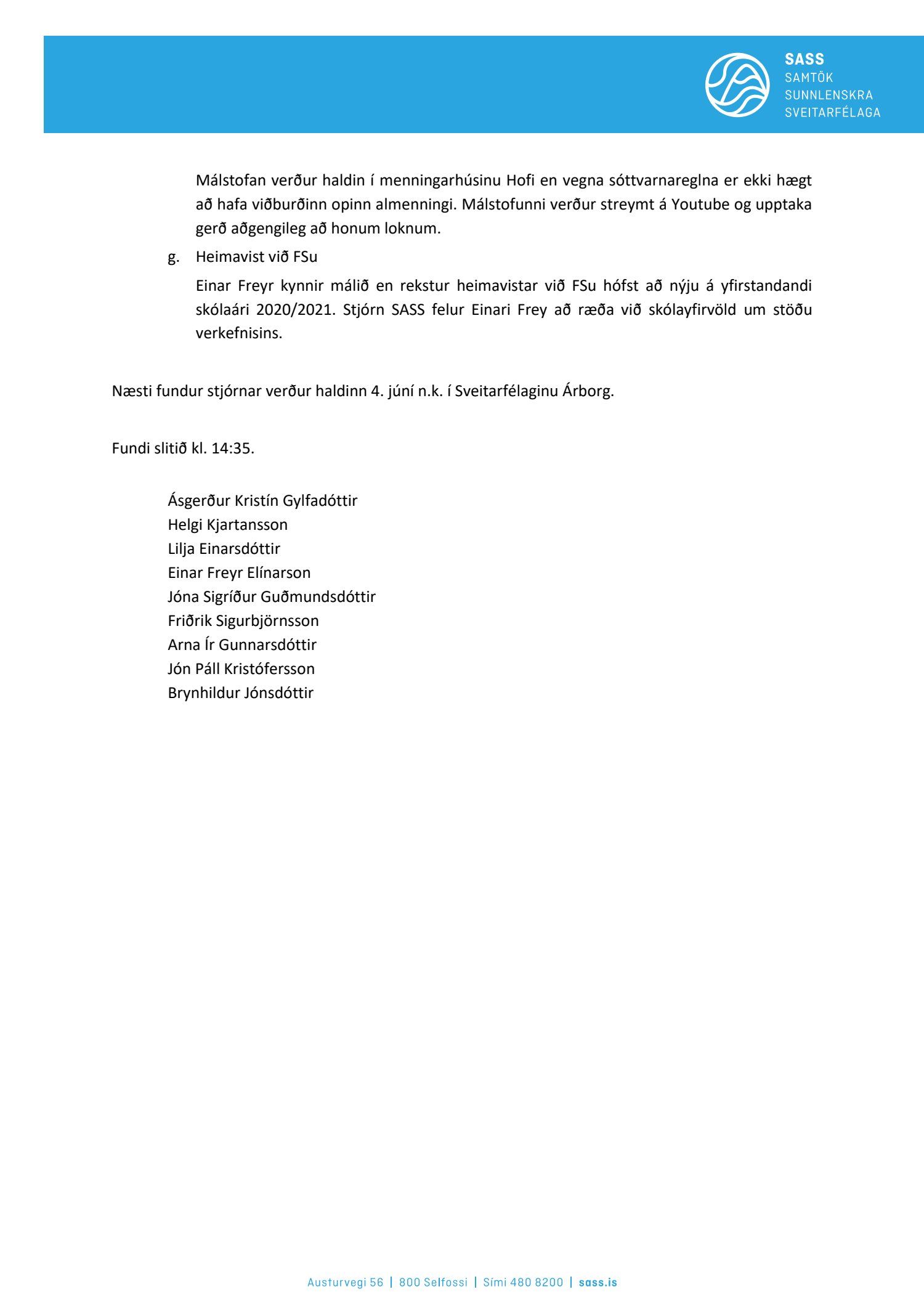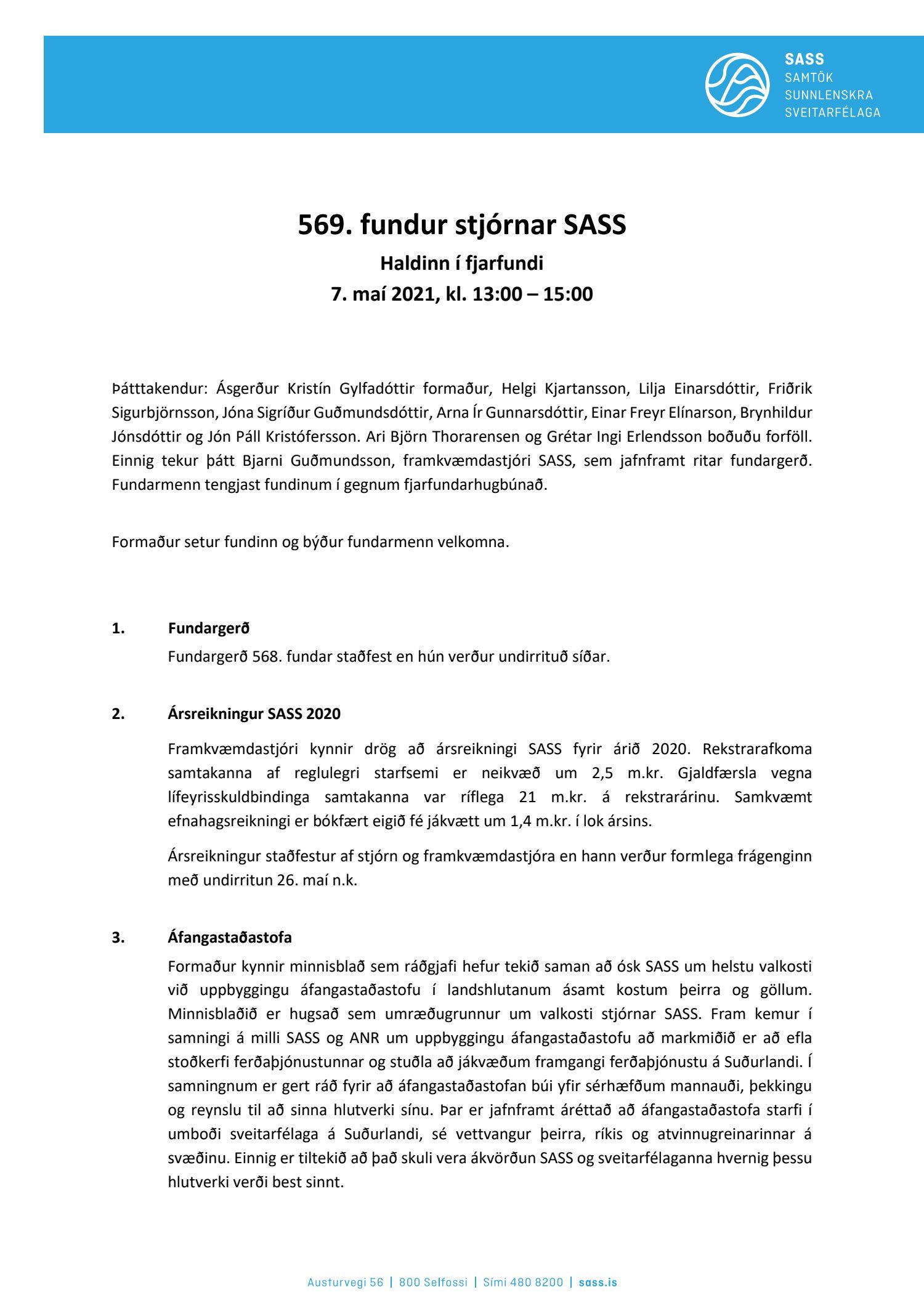 Fundargerðir stjórnar SASS 2021