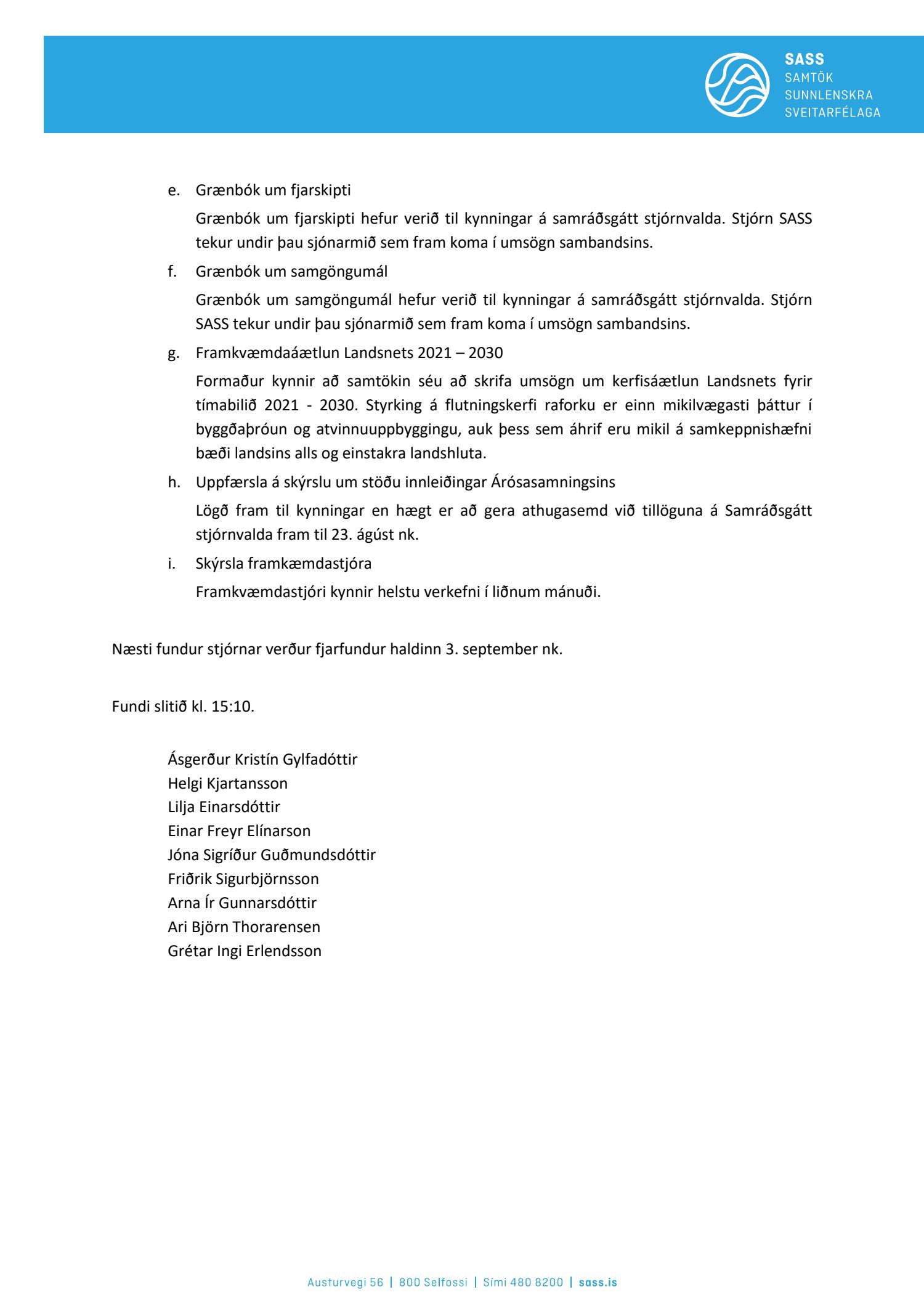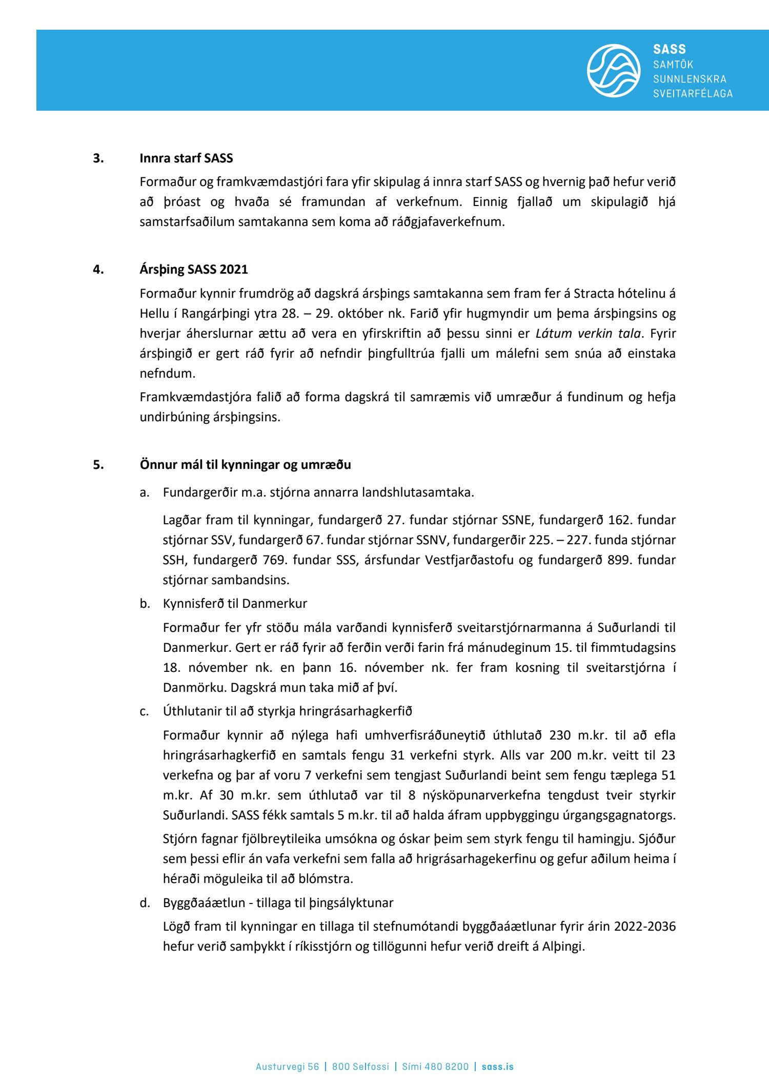 Fundargerðir stjórnar SASS 2021