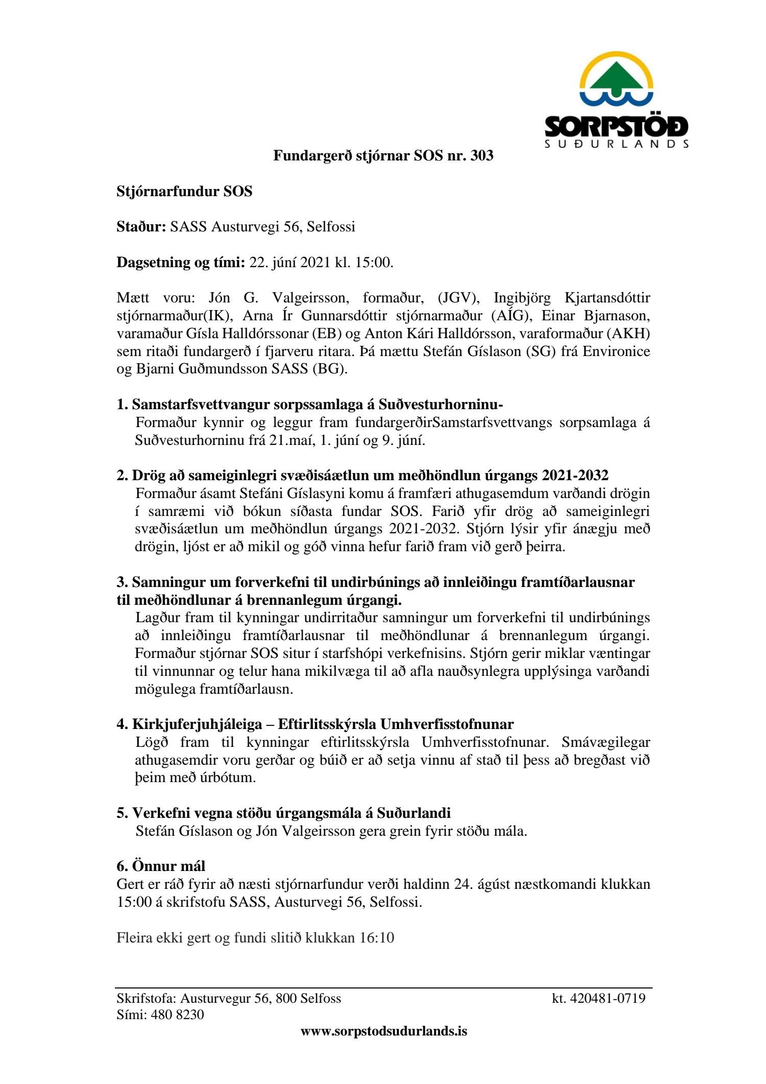 Fundargerðir stjórnar Sorpstöðvar Suðurlands 2021