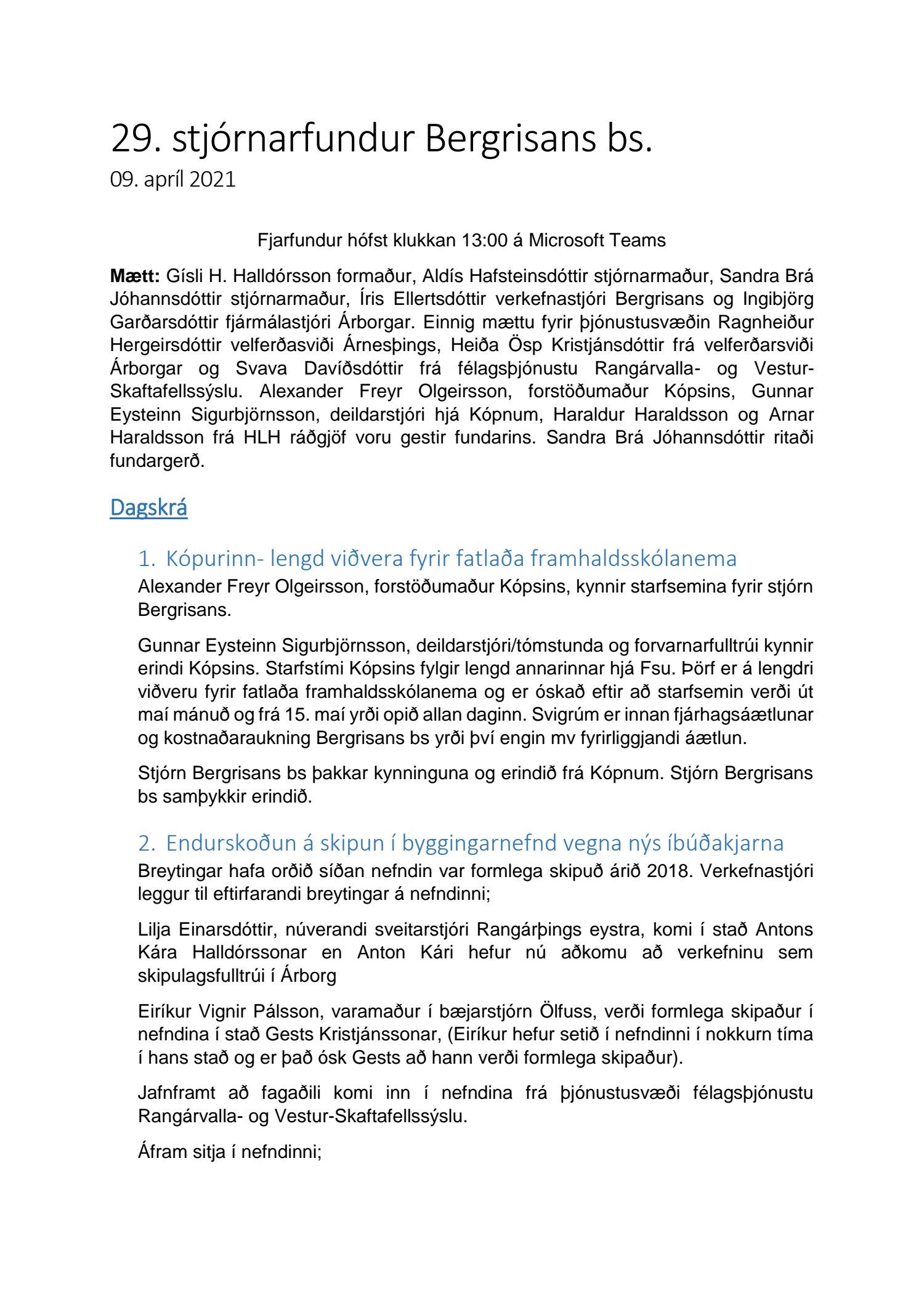 Bergrisamál - fundargerðir stjórnar 2021