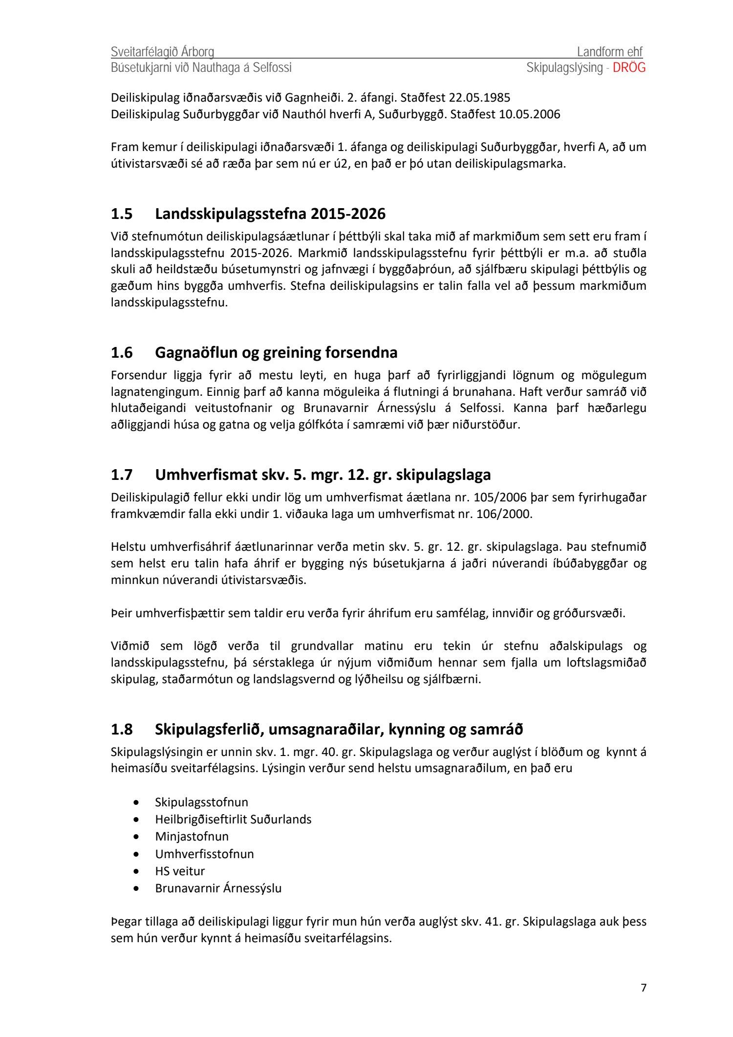 Skipulags- og byggingarnefnd lagði til við bæjarráð að deiliskipulagslýsing yrði kynnt fyrir almenningi og óskað umsagna umsagnaraðila í samræmi við 40. gr. skipulagslaga nr. 123/2010.