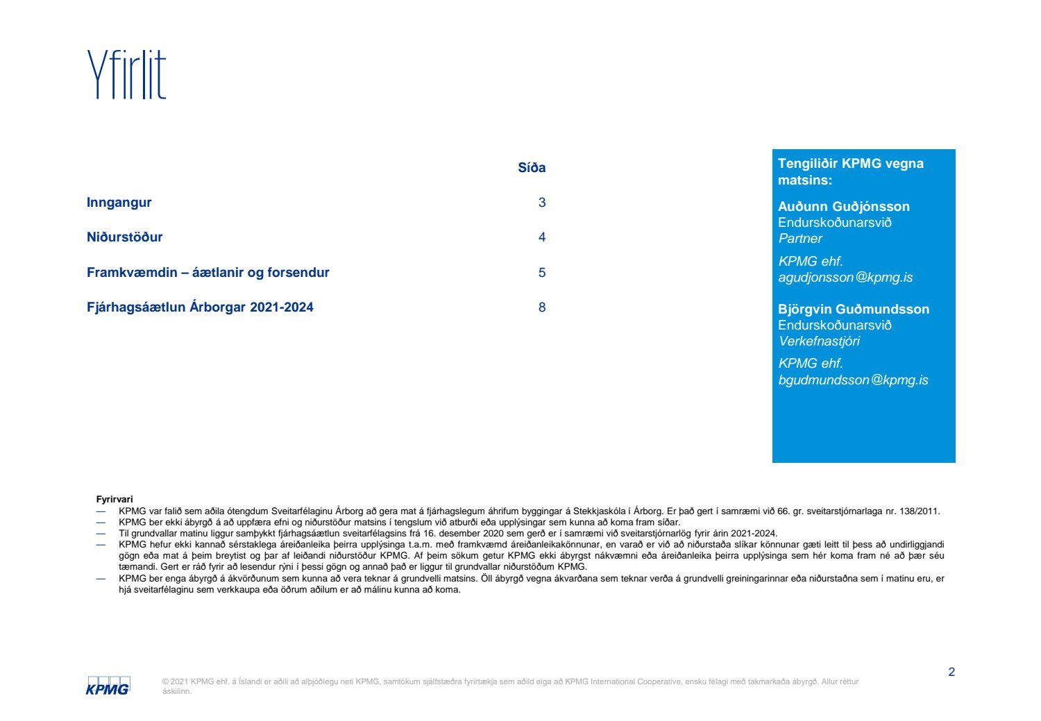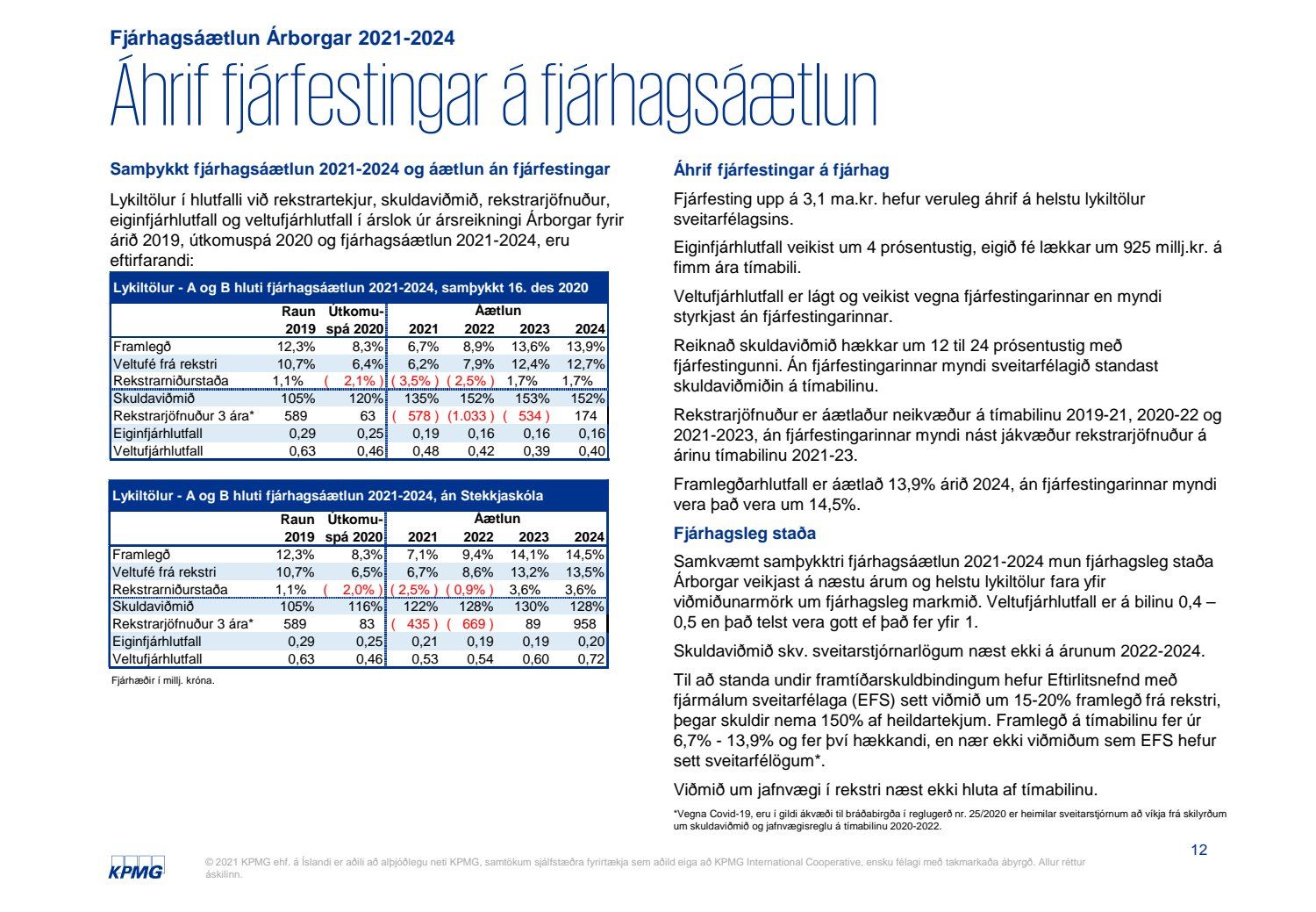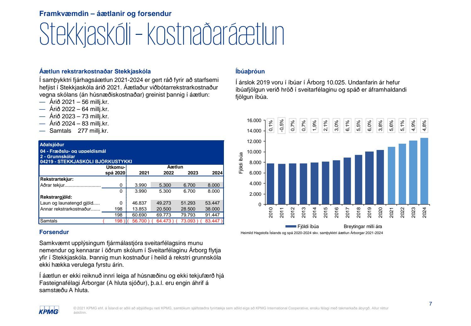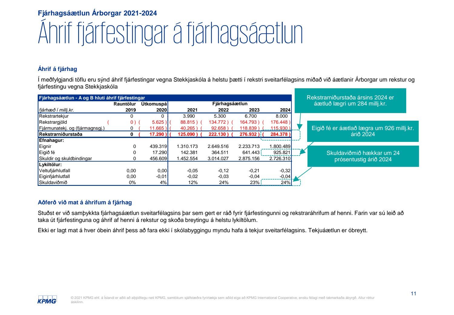 Skýrsla KPMG um mat á fjárhagslegum áhrifum fjárfestingar í Stekkjarskóla skv. 66. gr. sveitarstjórnarlaga nr. 138/2011.