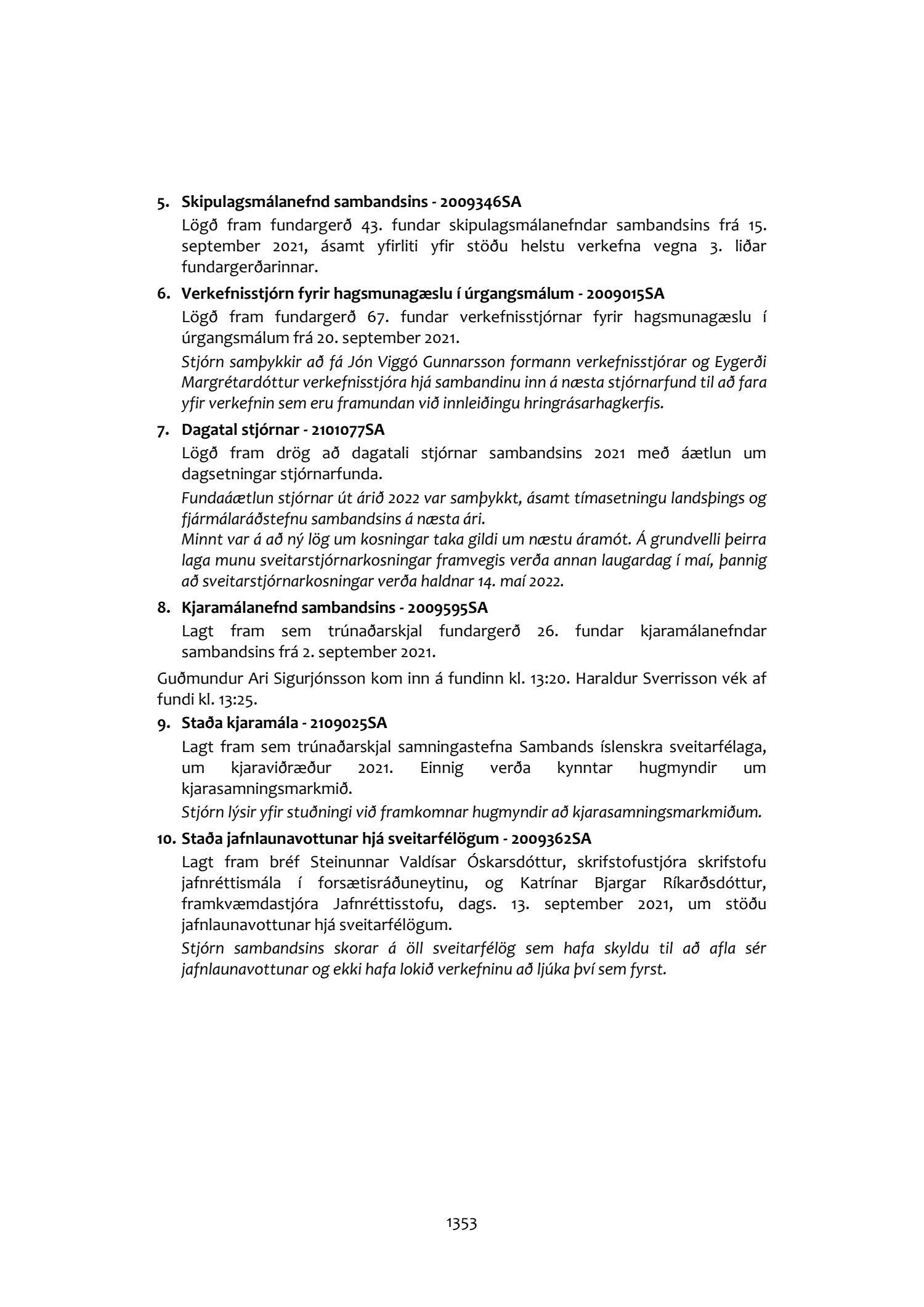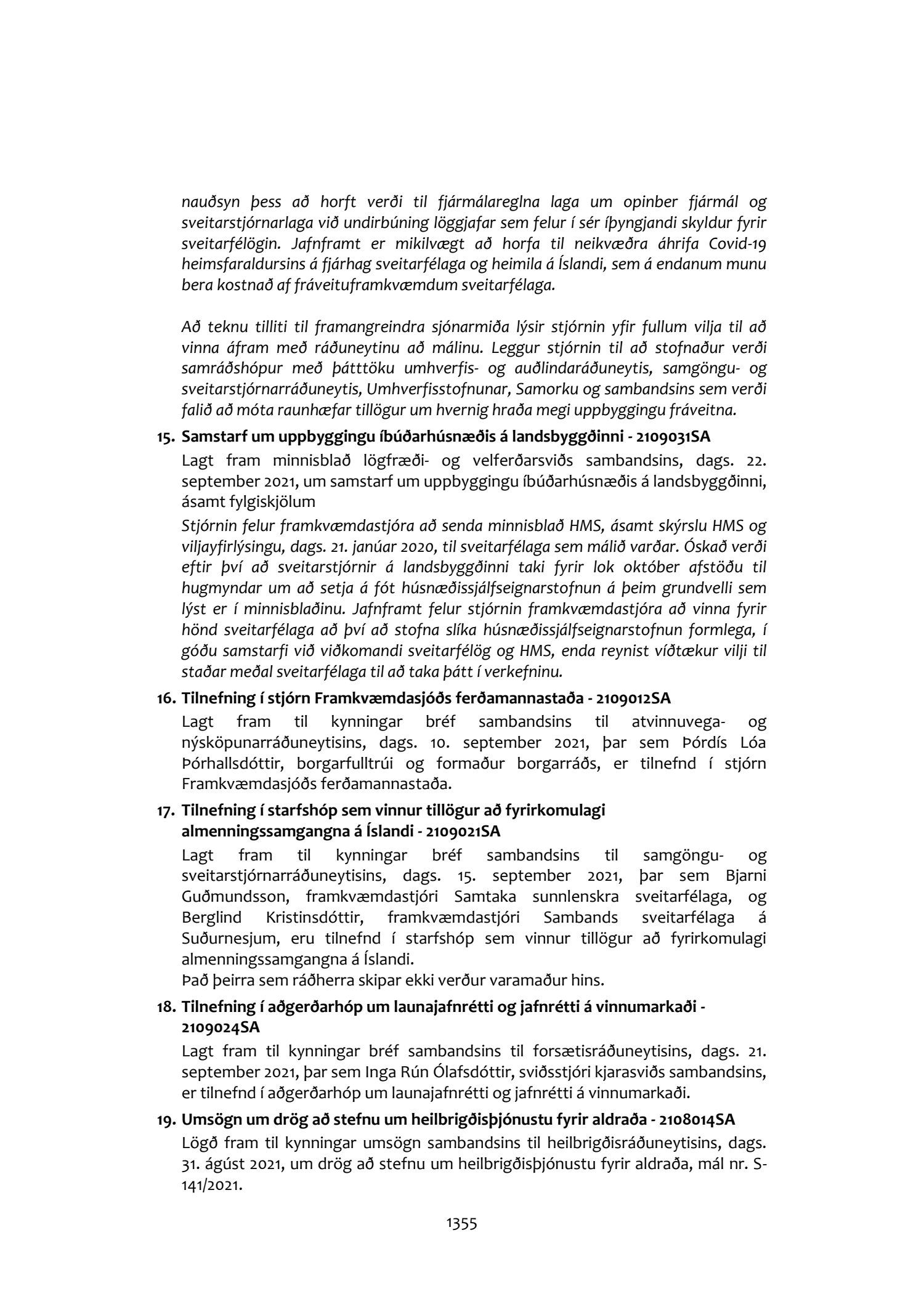 Fundargerðir stjórnar Sambands íslenskra sveitarfélaga 2021