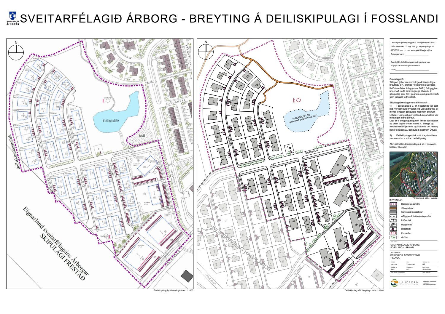 Tillagan fjallar um óverulega deiliskipulagsbreytingu á 4. áfanga Fosslands á Selfossi. Íbúðahverfið er í dag fullbyggt en um er að ræða smávægilega tilfærslu á göngustíg sem fer í gegnum opið grænt svæði sem kallast Flóðhólsflóð.