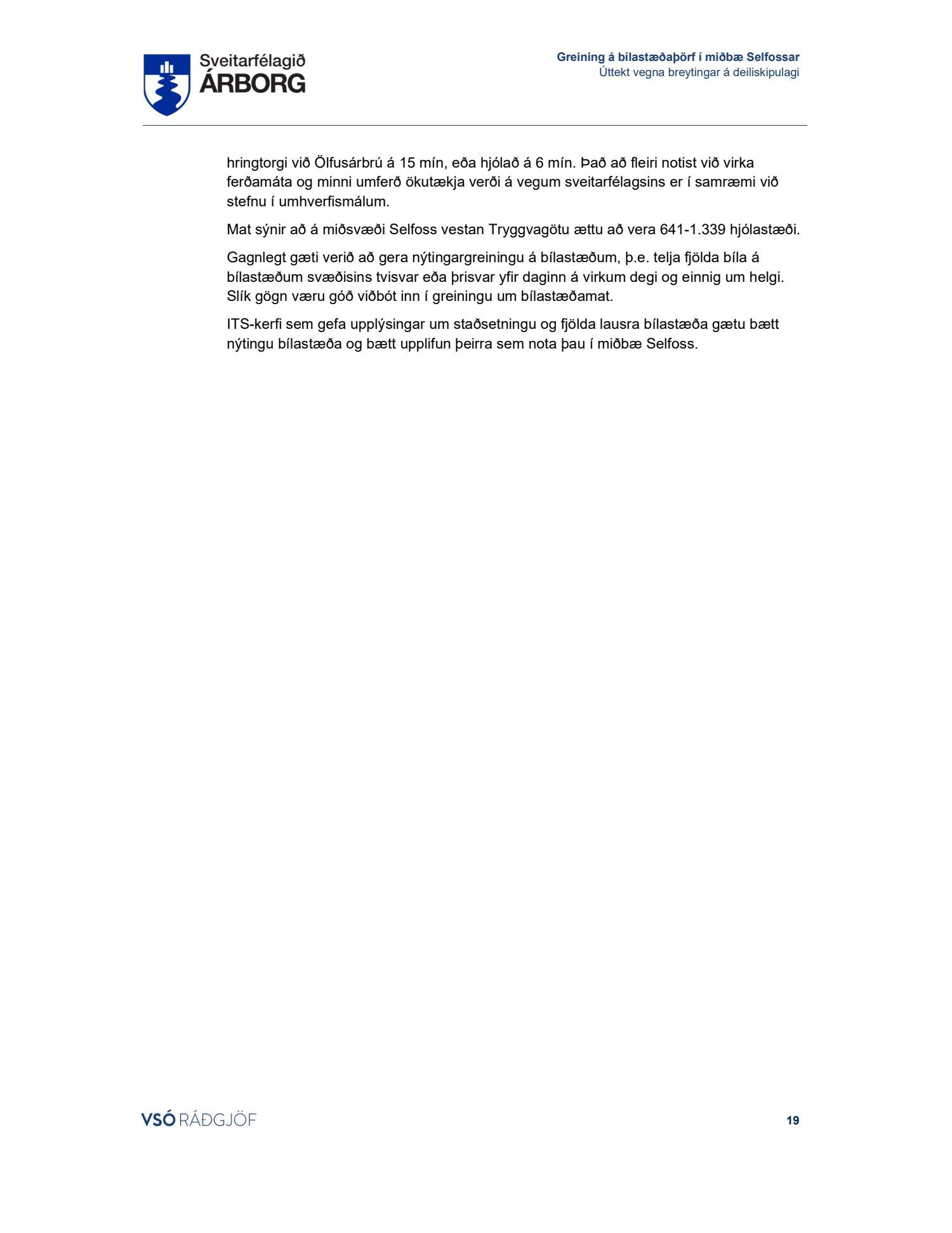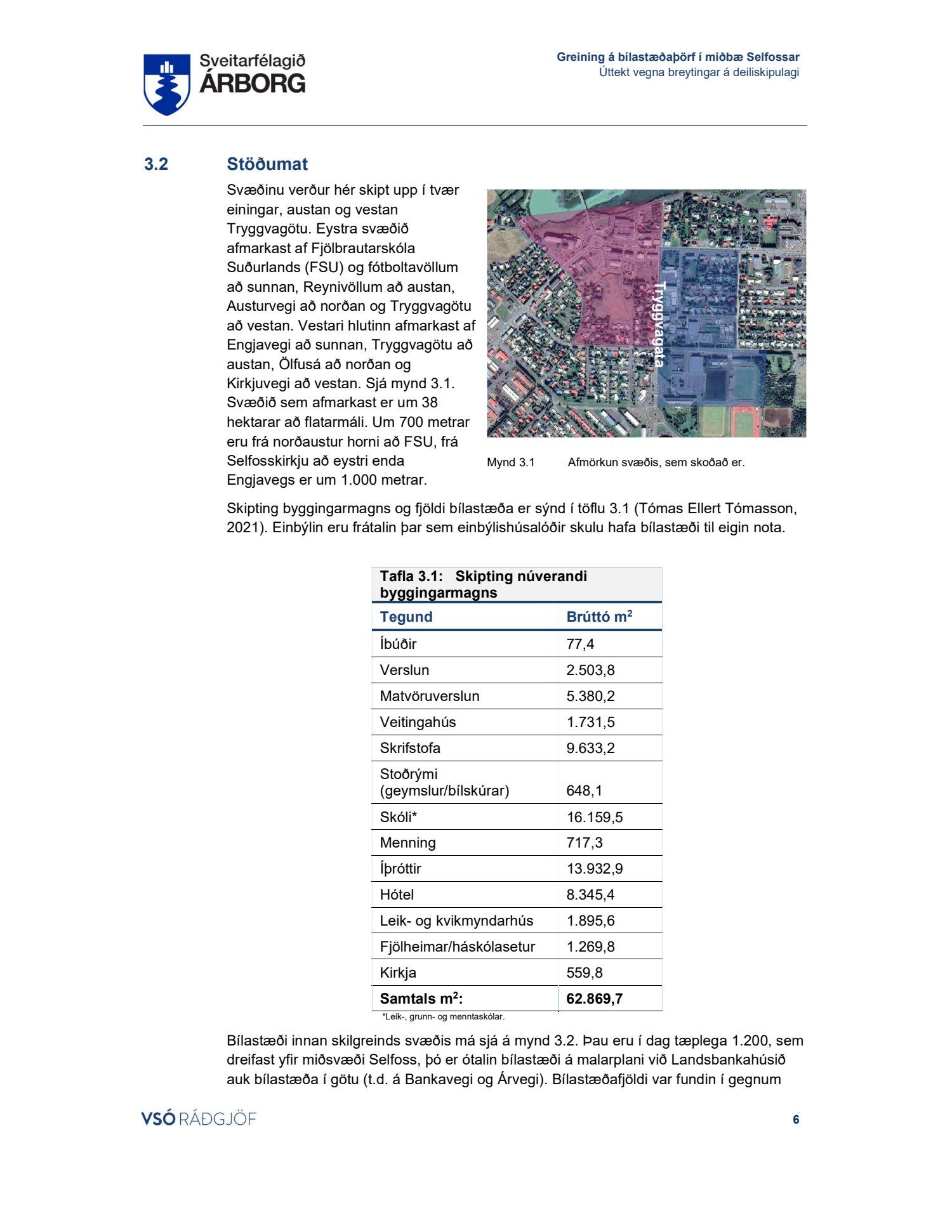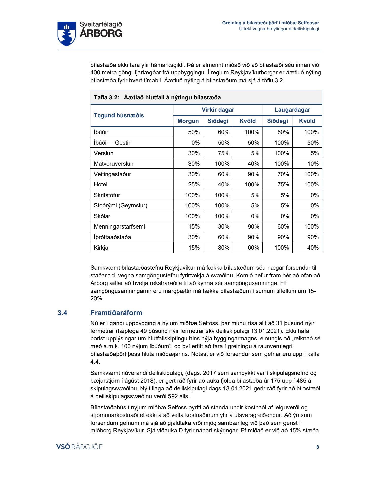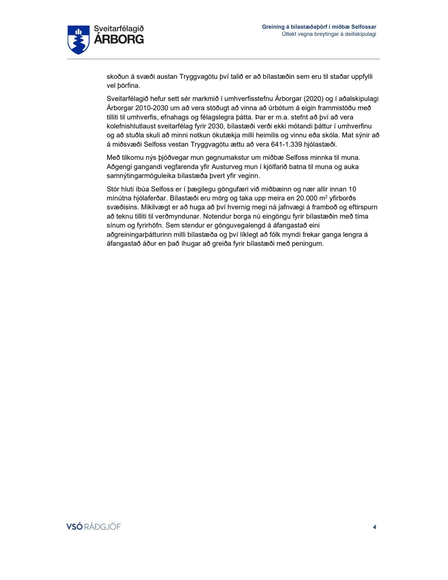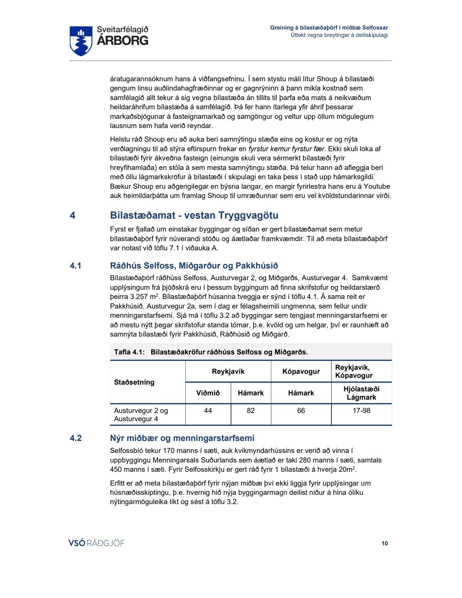 Lögð fram skýrsla VSÓ um bílastæðaþörf á Selfossi.