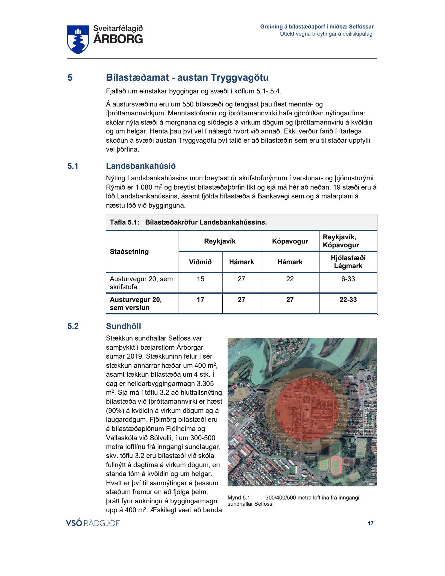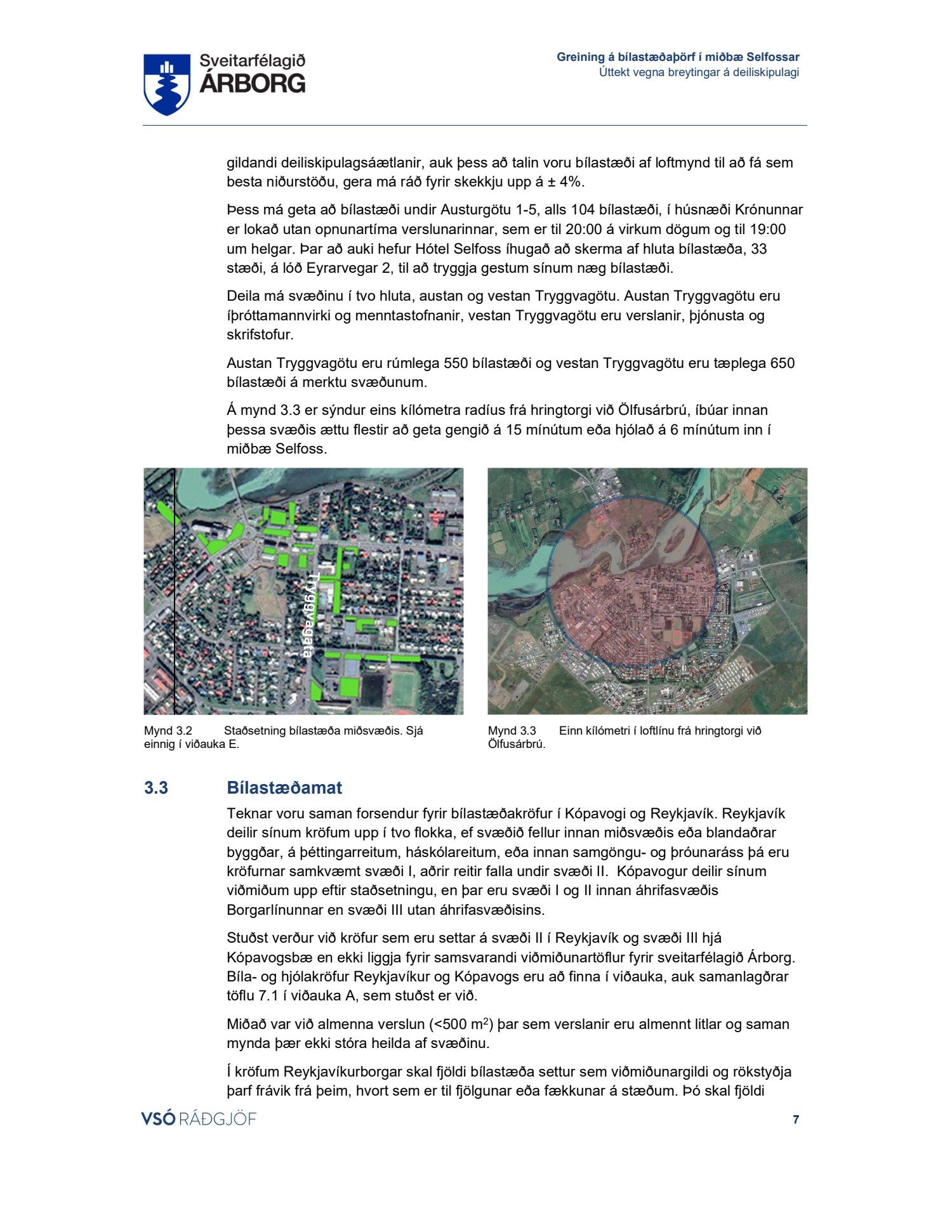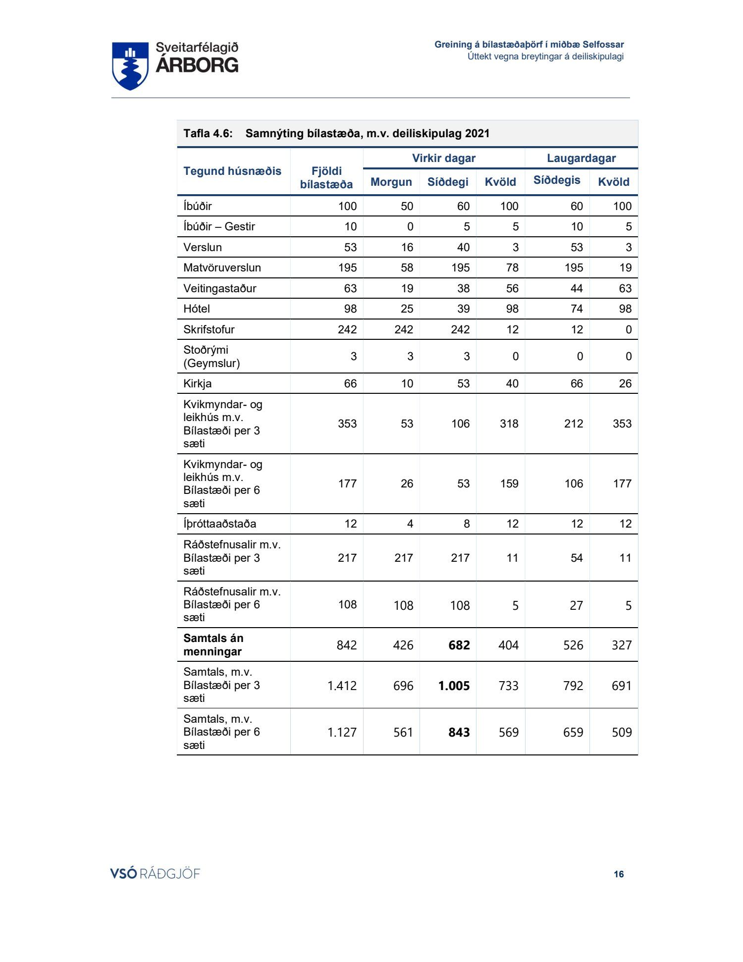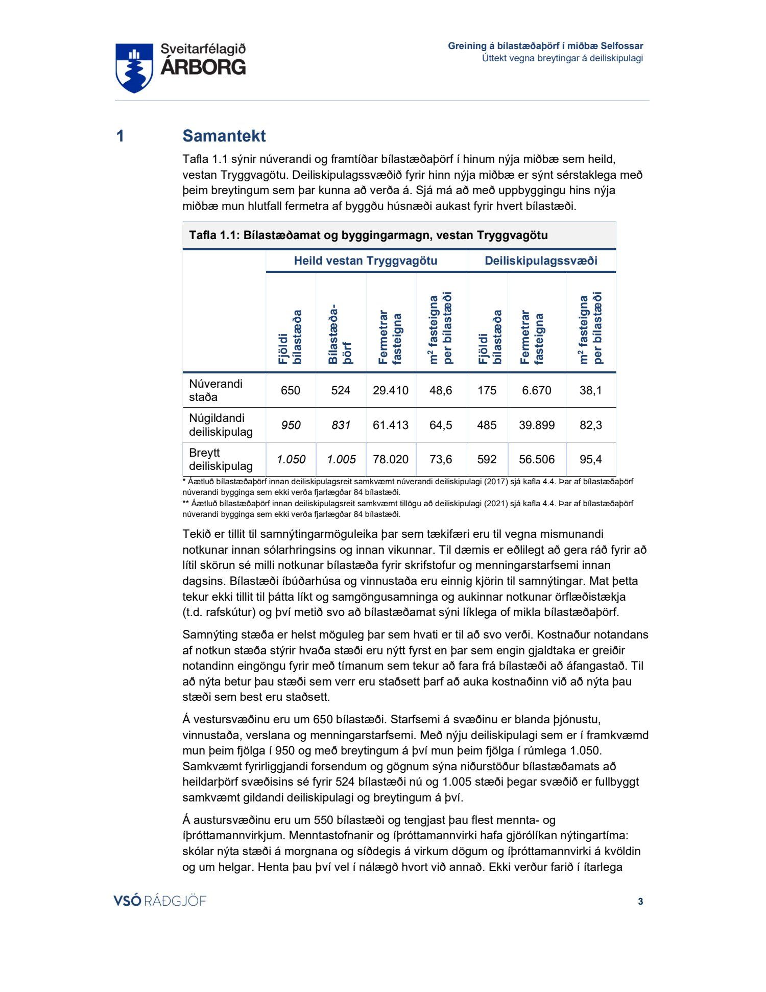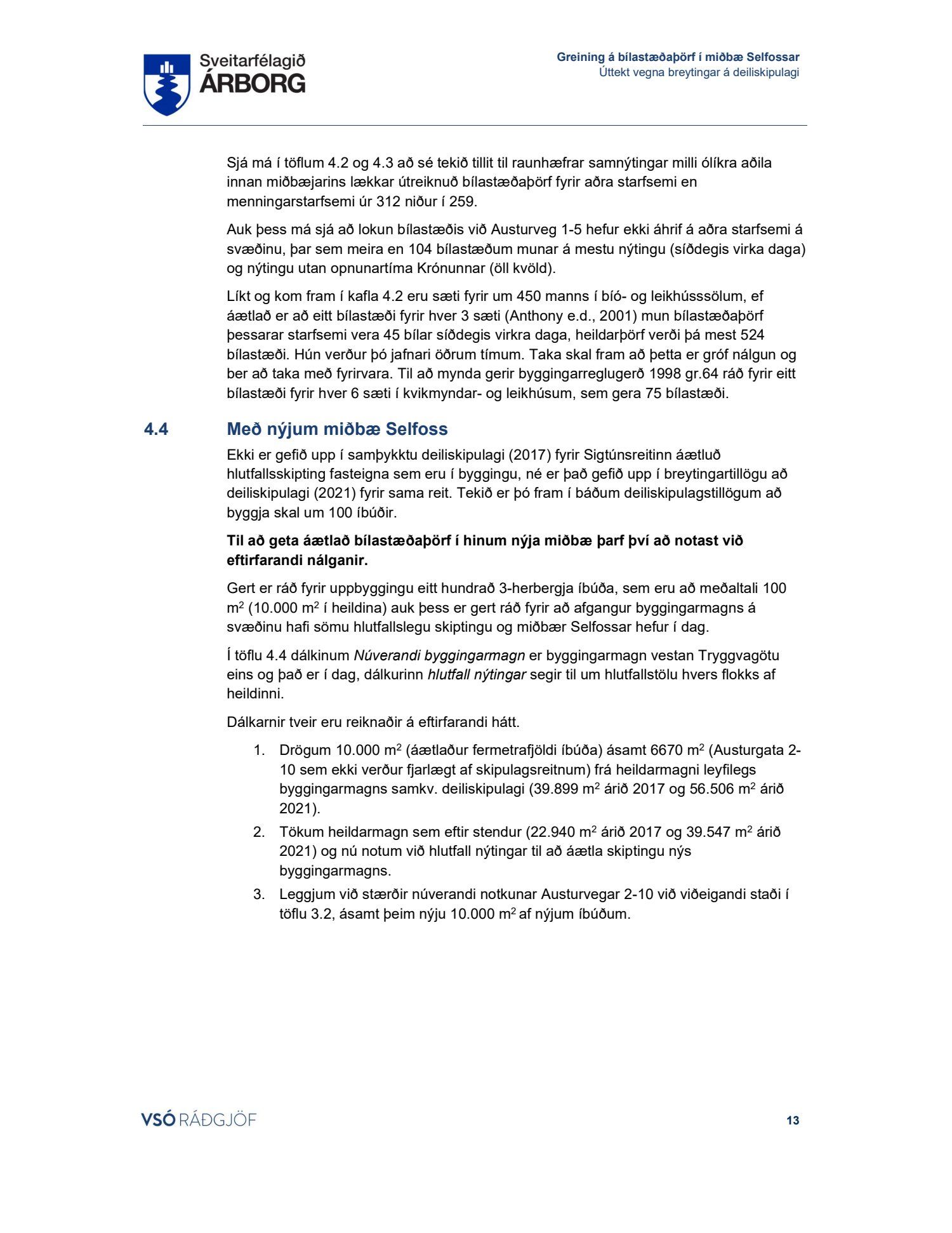 Lögð fram skýrsla VSÓ um bílastæðaþörf á Selfossi.