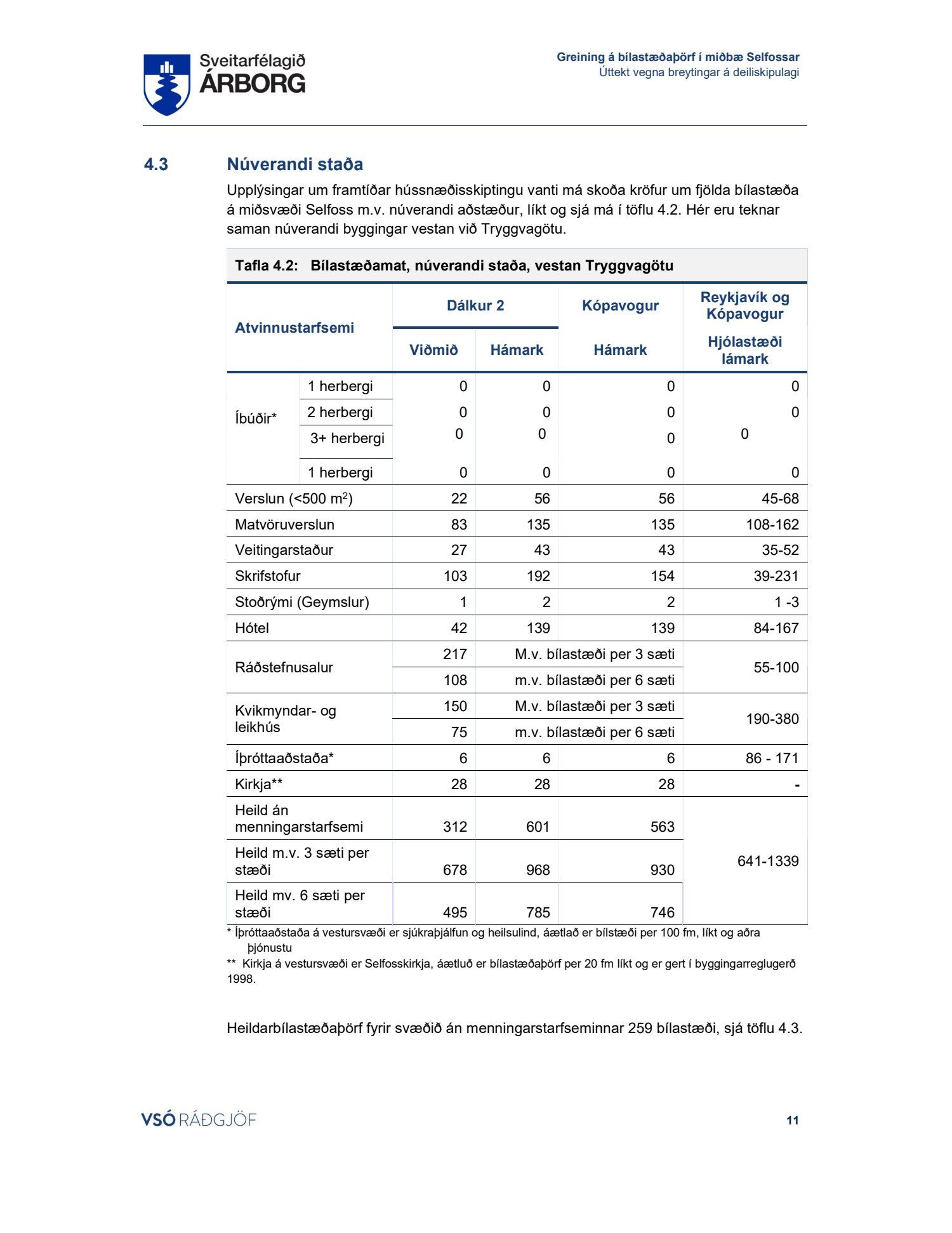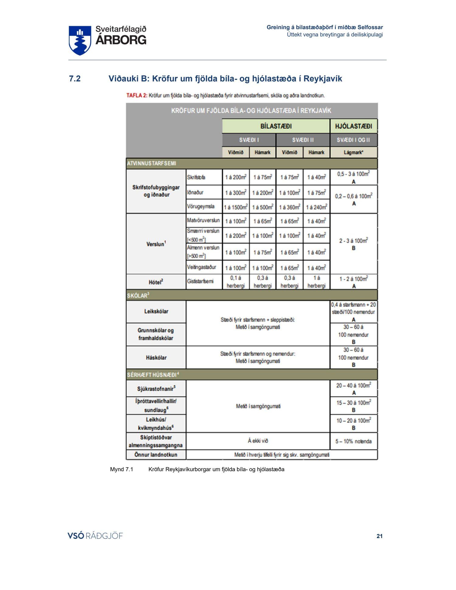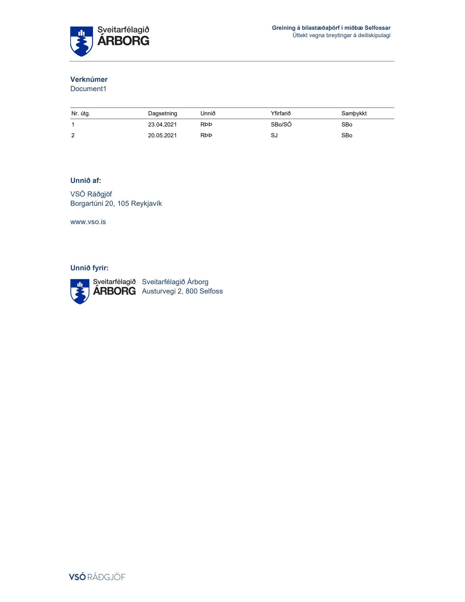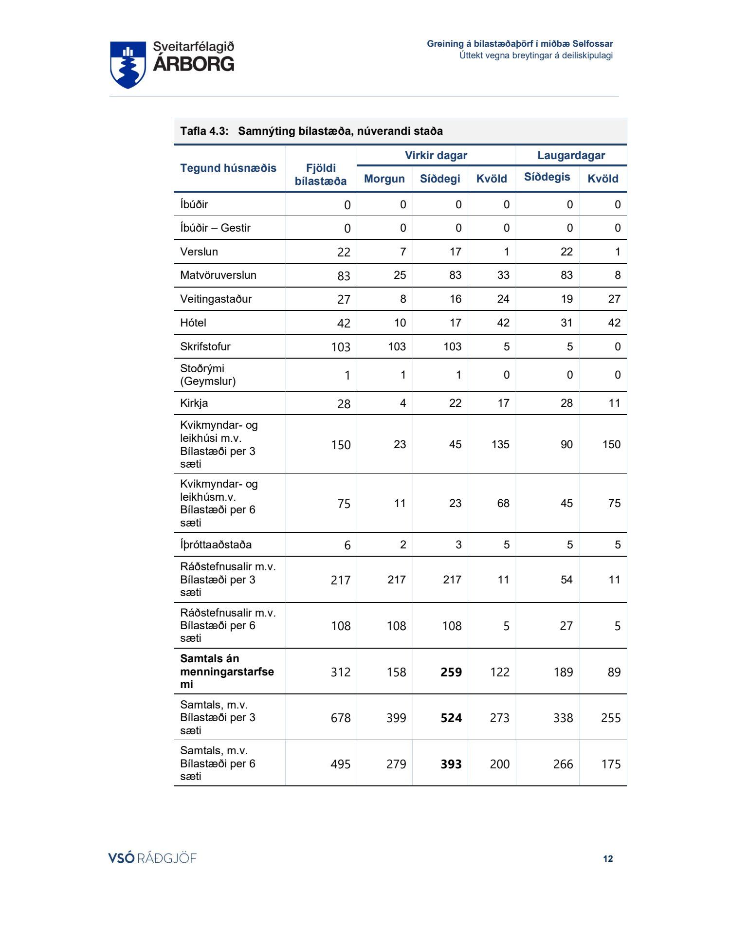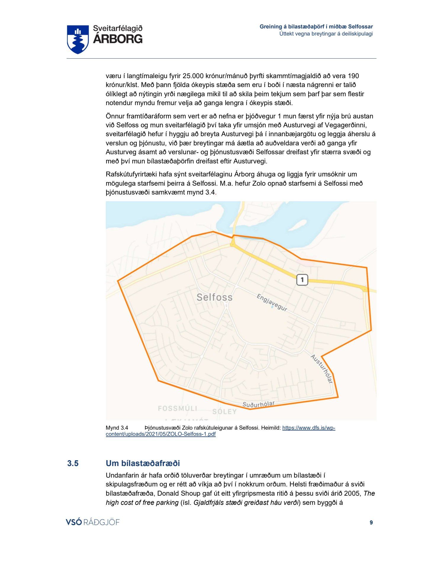 Lögð fram skýrsla VSÓ um bílastæðaþörf á Selfossi.