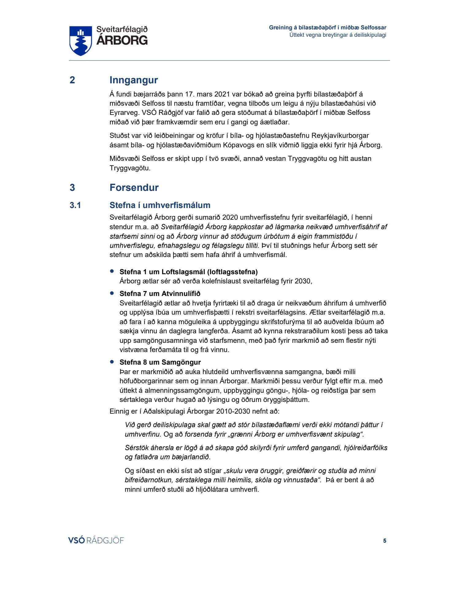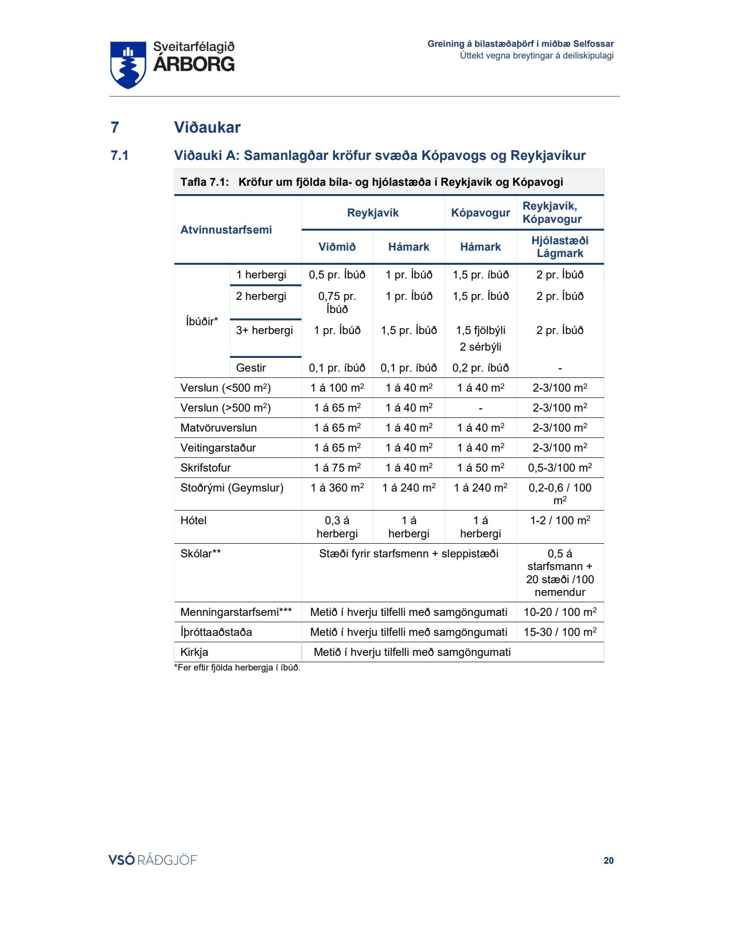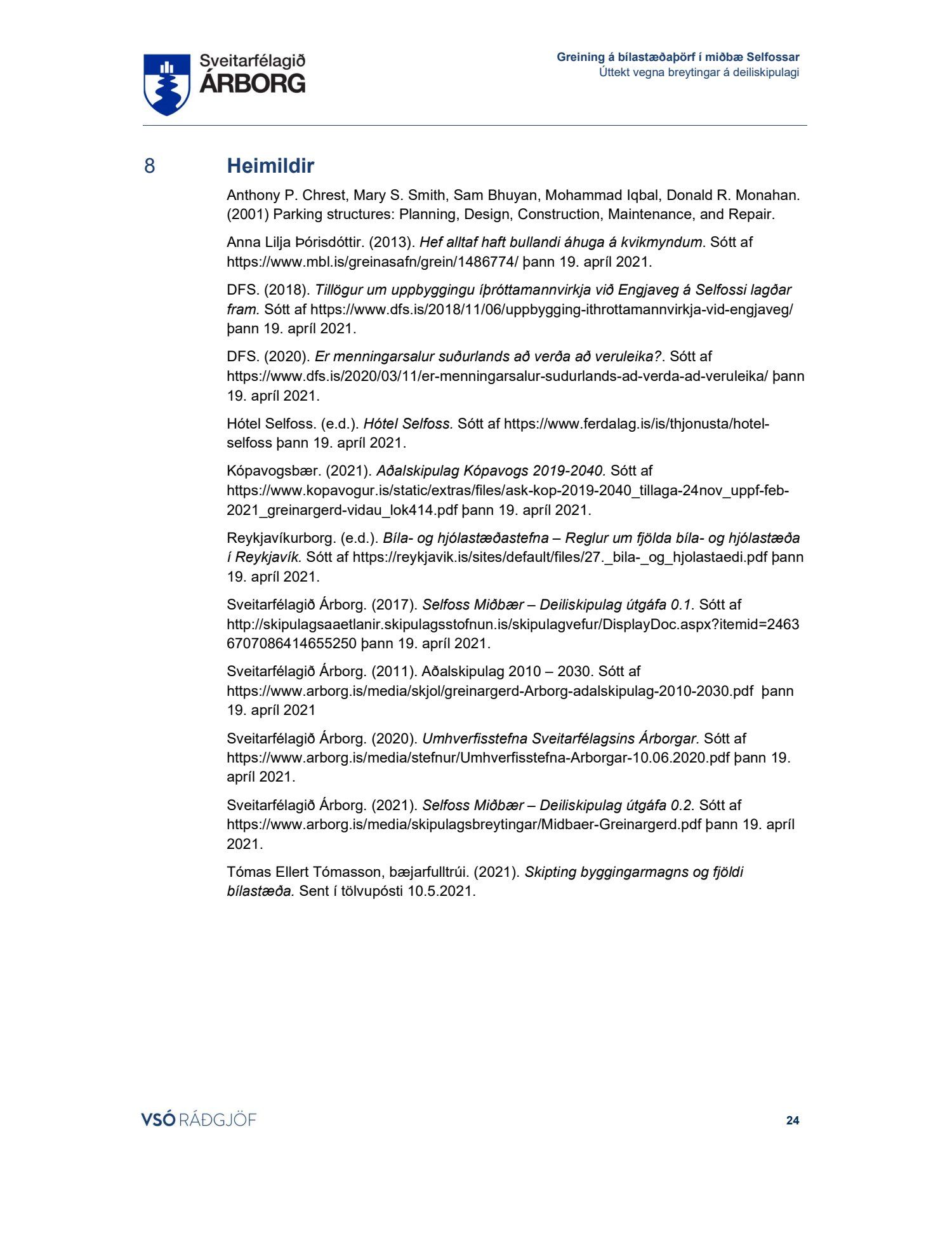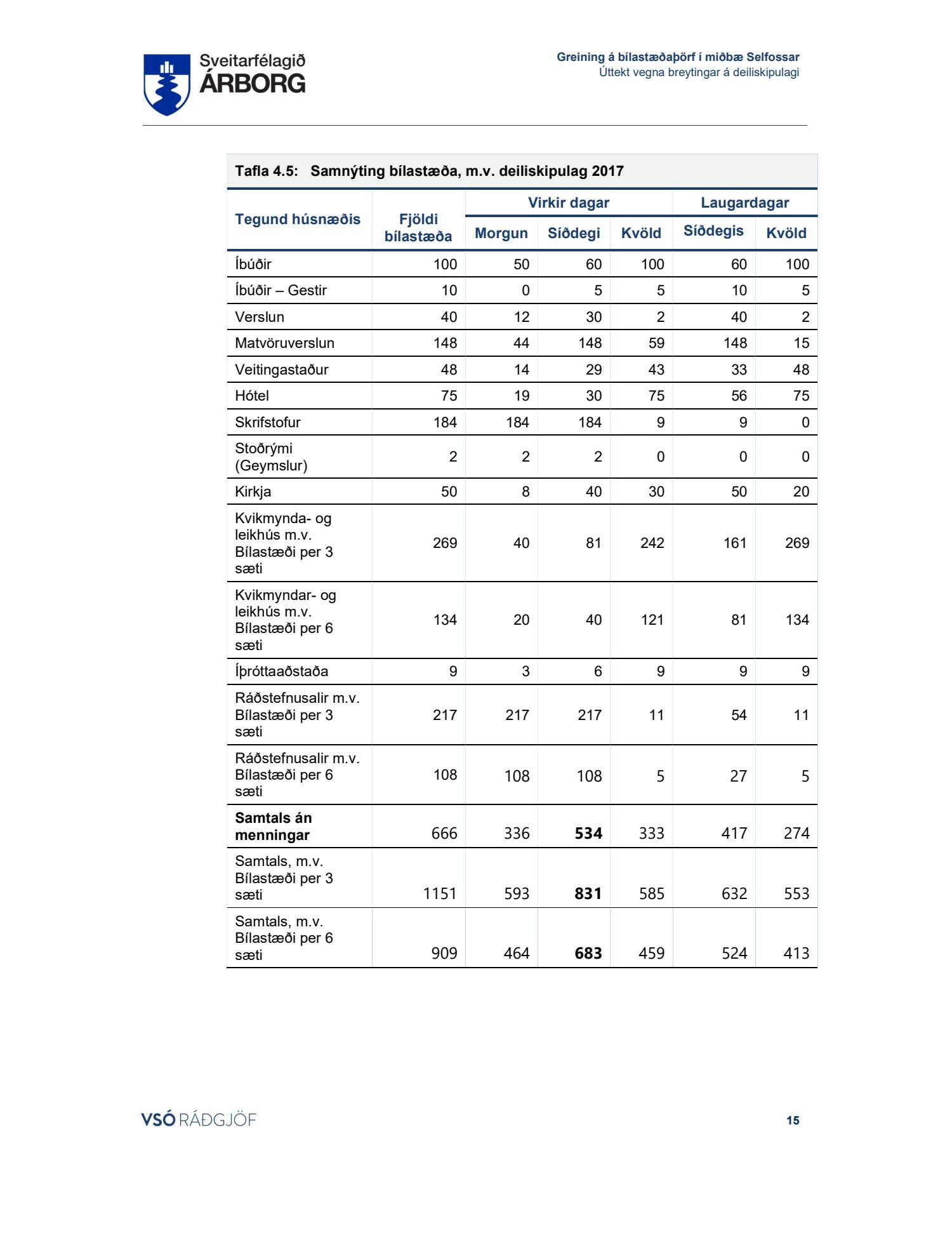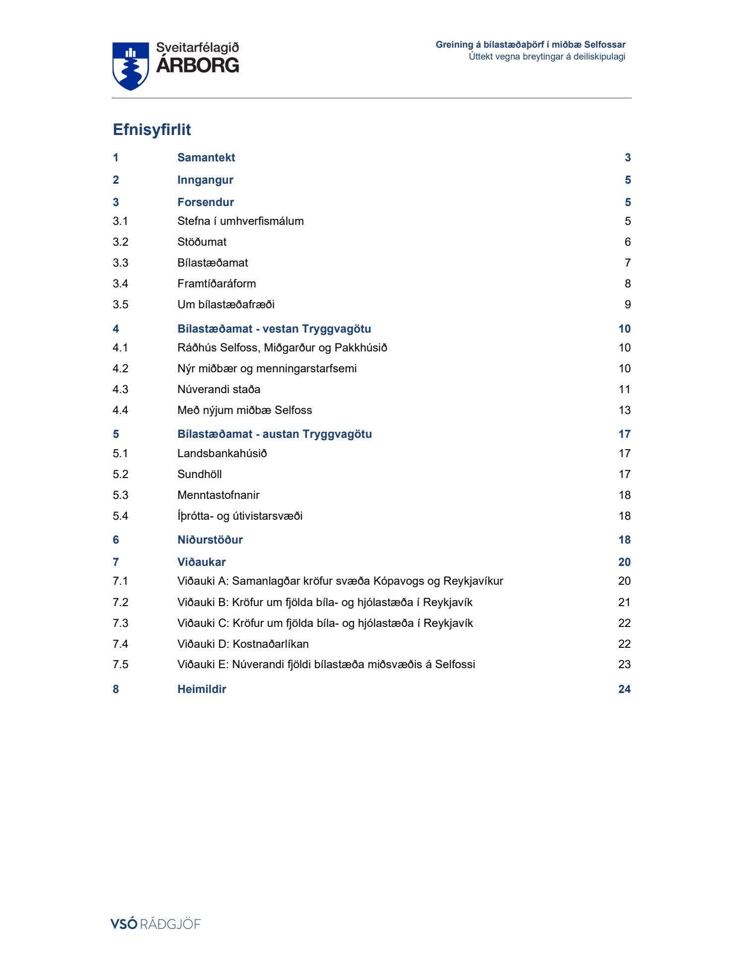Lögð fram skýrsla VSÓ um bílastæðaþörf á Selfossi.
