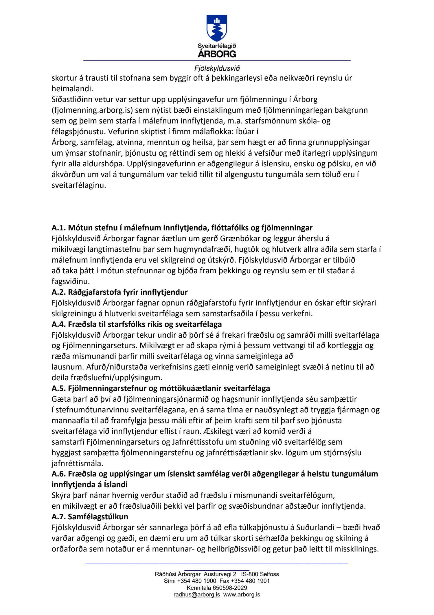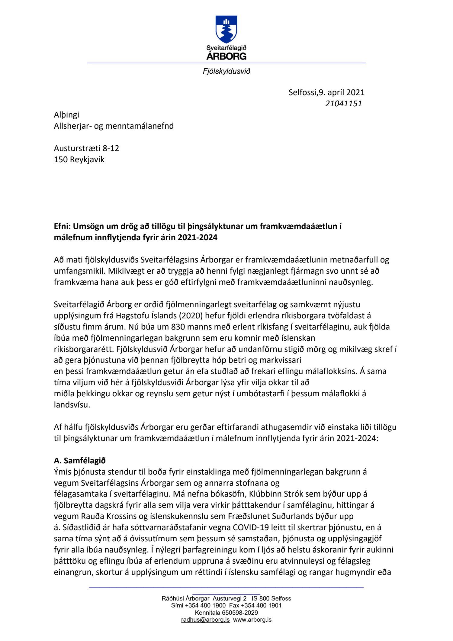 Umsögn - drög að tillögu til þingsályktunar um framkvæmdaáætlun í málefnum innflytjenda fyrir árin 2021-2024