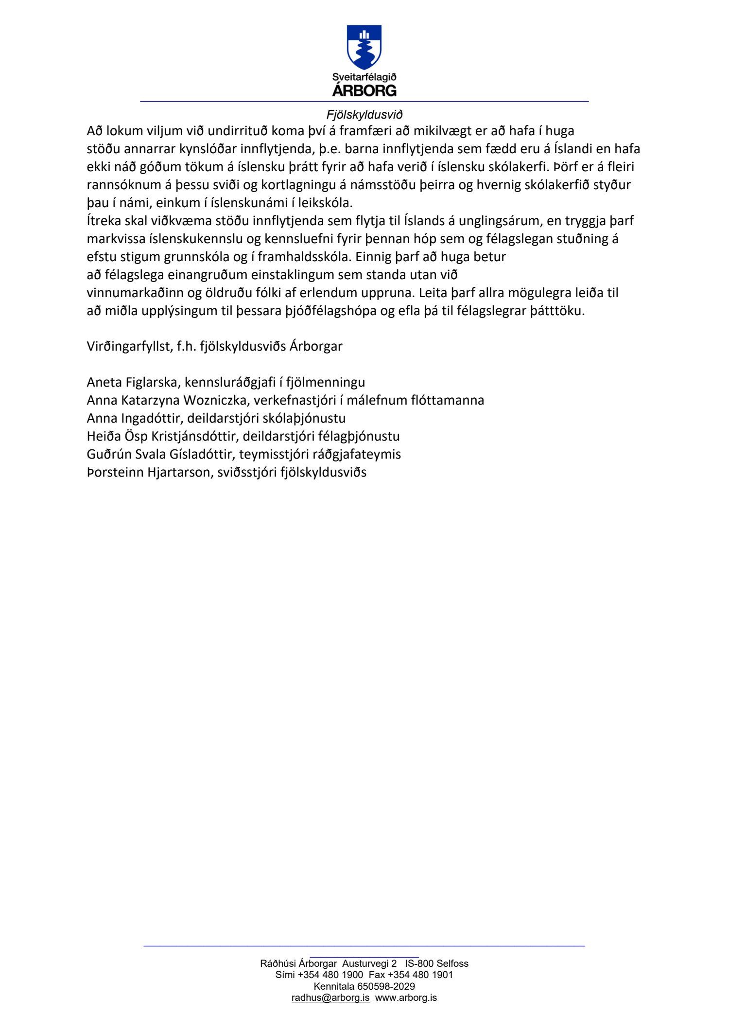 Bæjarráð fagnar frumkvæði Fjölskyldusviðs og tekur undir umsögnina.