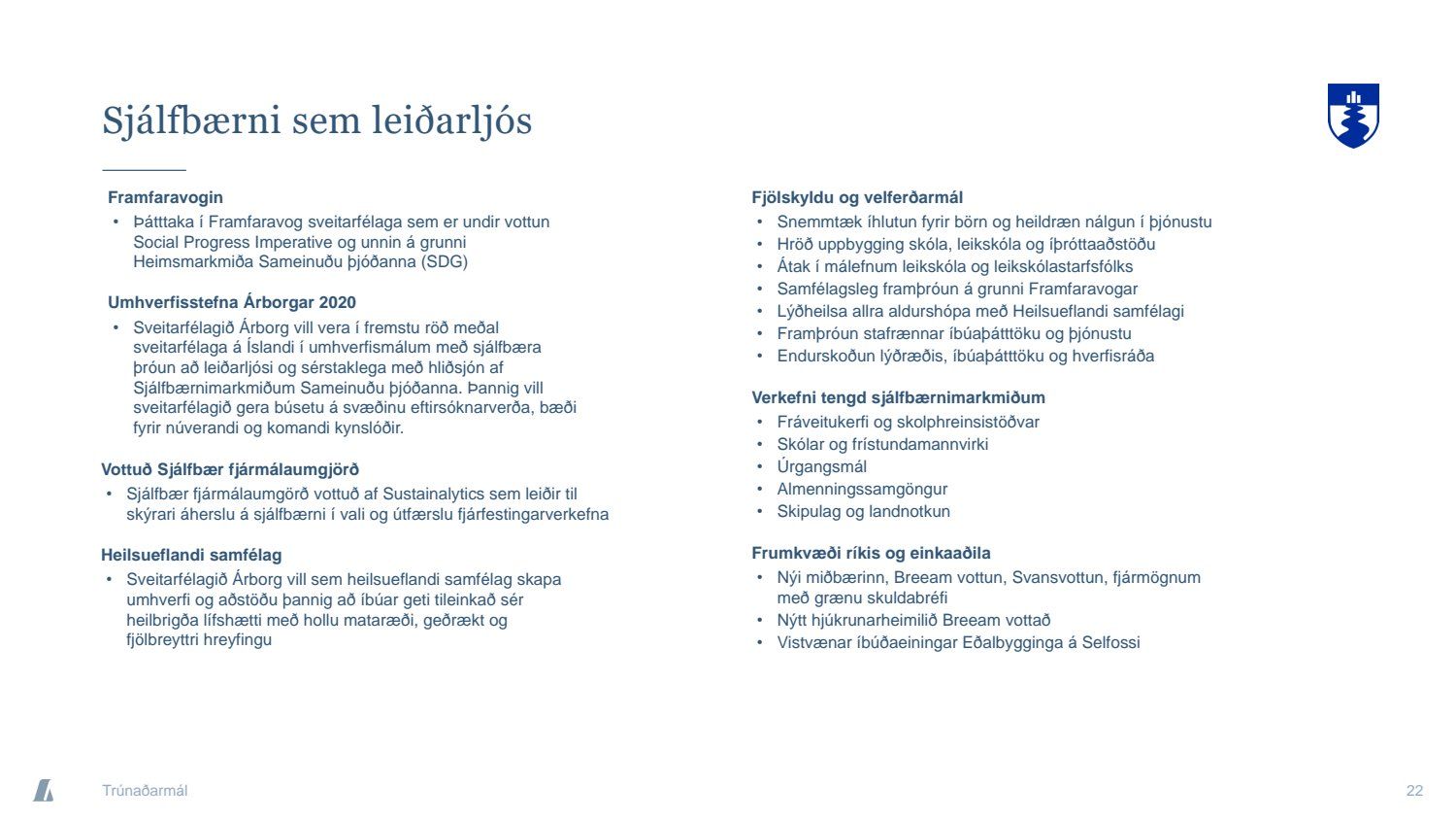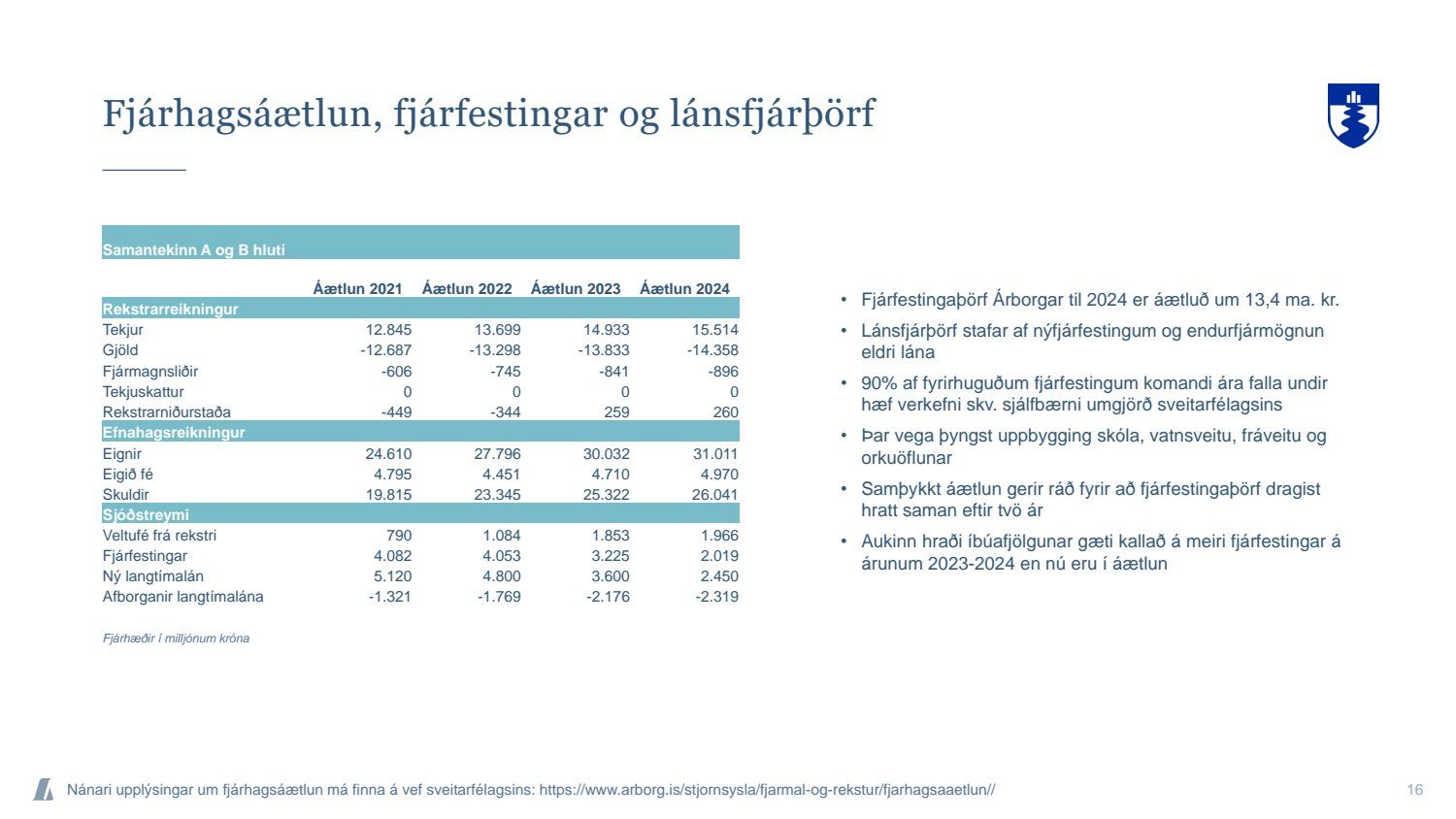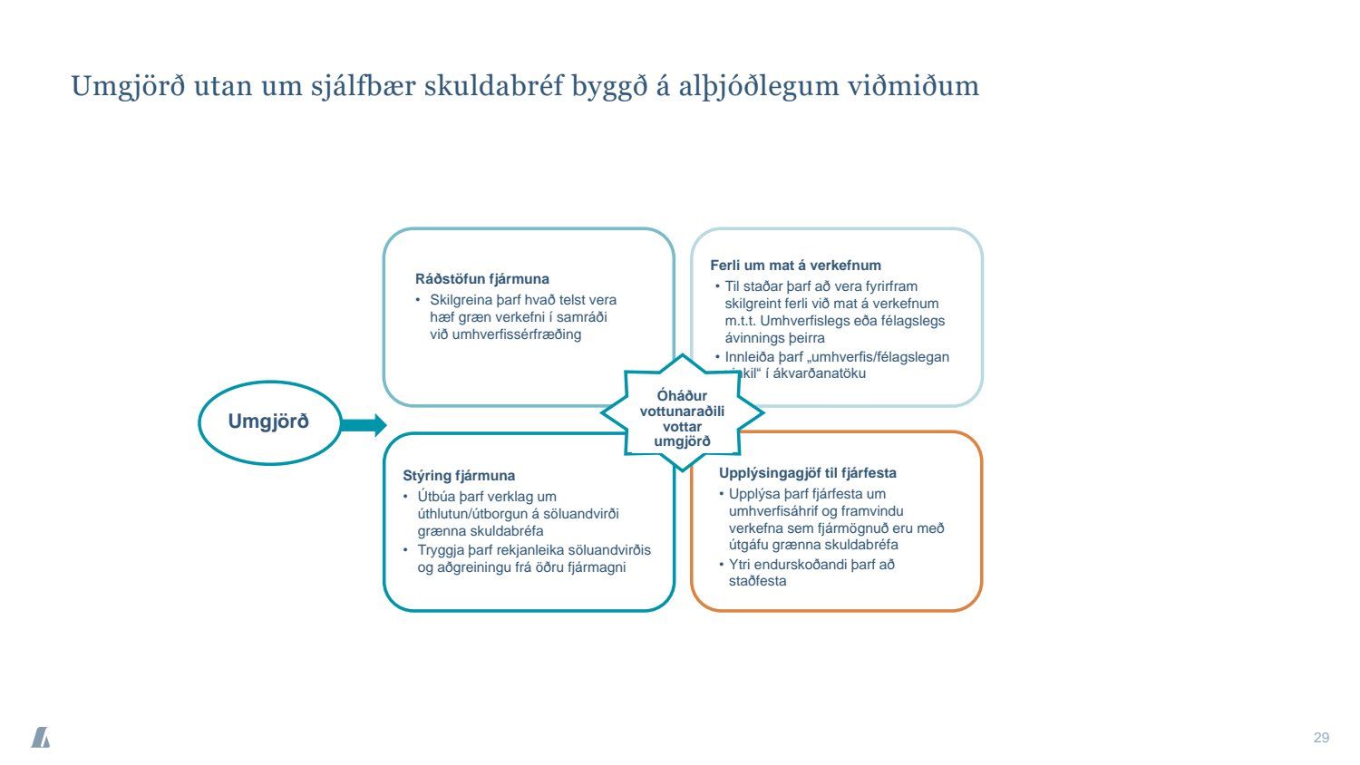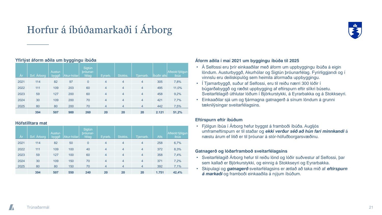 Bæjarráð samþykkir tilboð að nafnvirði 1.400 m.kr., á ávöxtunarkröfunni 1,35% í nýjan sjálfbæran verðtryggðan skuldabréfaflokk ARBO 31 GSB. Jafnframt samþykkir bæjarráð að heildarútgáfuheimild skuldabréfaflokksins verði opin og getur bæjarstjórn Árborgar þá veitt heimild til frekari stækkunar á skuldabréfaflokknum í framtíðinni.