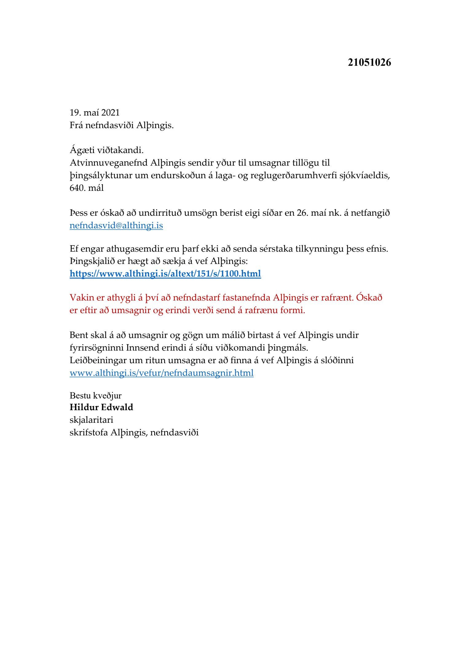 Beiðni um umsögn um tillögu til þingsályktunar um endurskoðun á laga- og reglugerðarumhverfi sjókvíaeldis, 640. mál.pdf