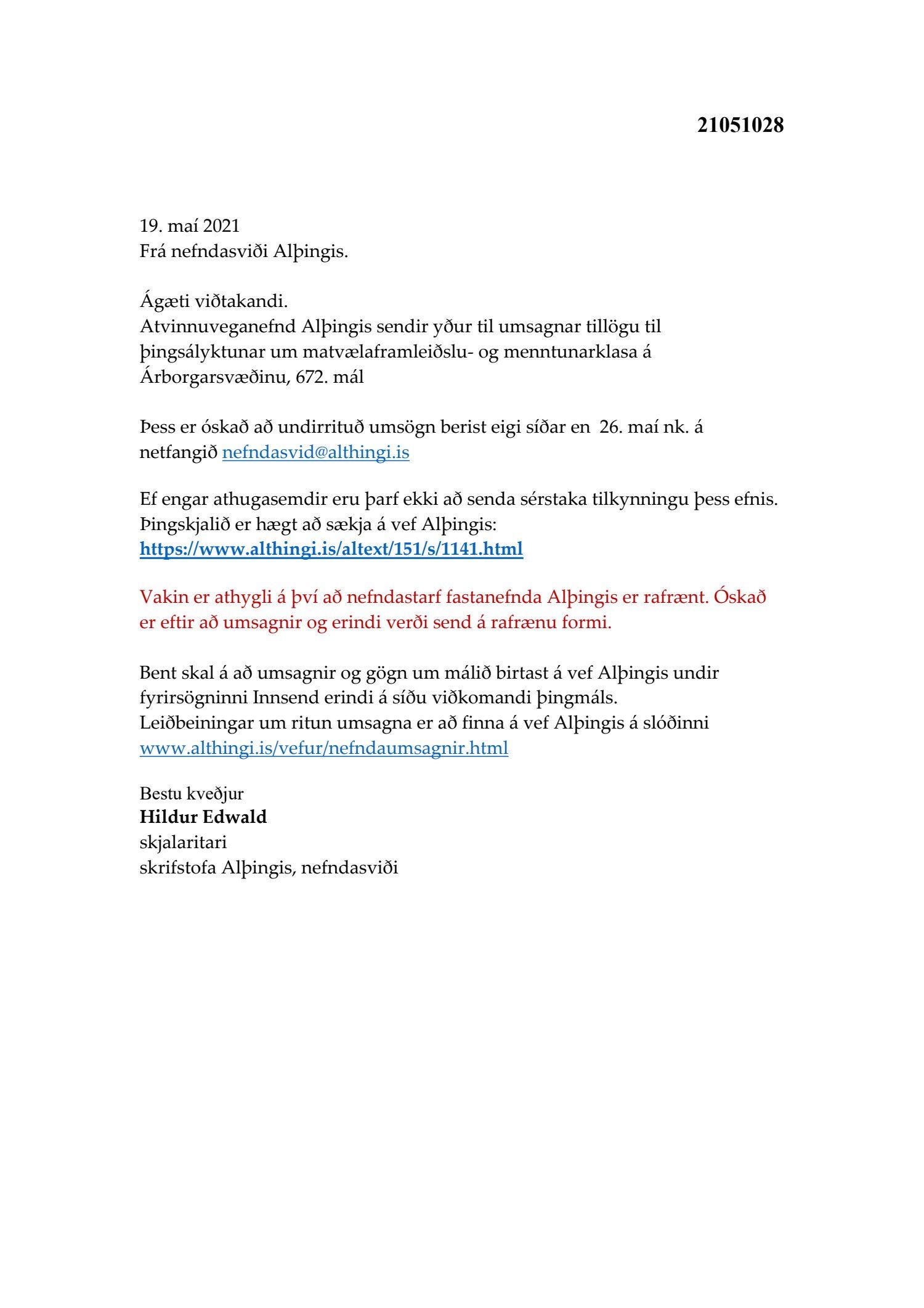 Erindi frá atvinnuveganefnd Alþingis, dags. 19. maí, þar sem óskað var eftir umsögn um tillögu til þingsályktunar um matvælaframleiðslu- og menntunarklasa á Árborgarsvæðinu, 672. mál.