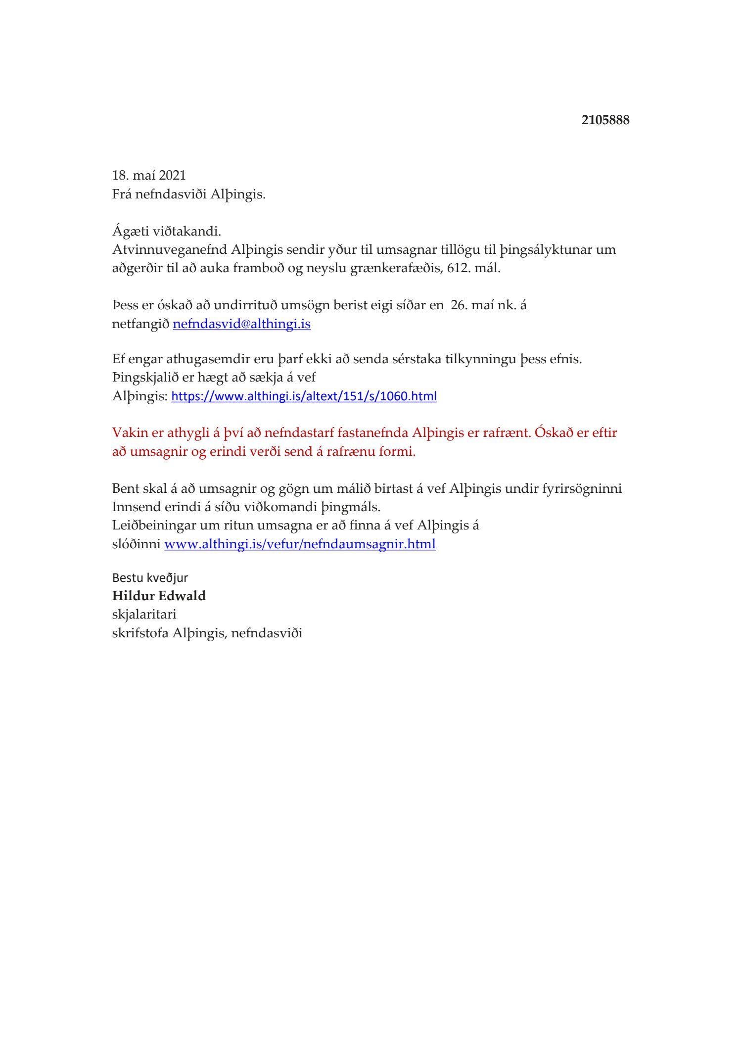 Beiðni um umsögn um þingsályktun um aðgerðir til að auka framboð og neyslu grænkerafæðis, 612. mál..pdf