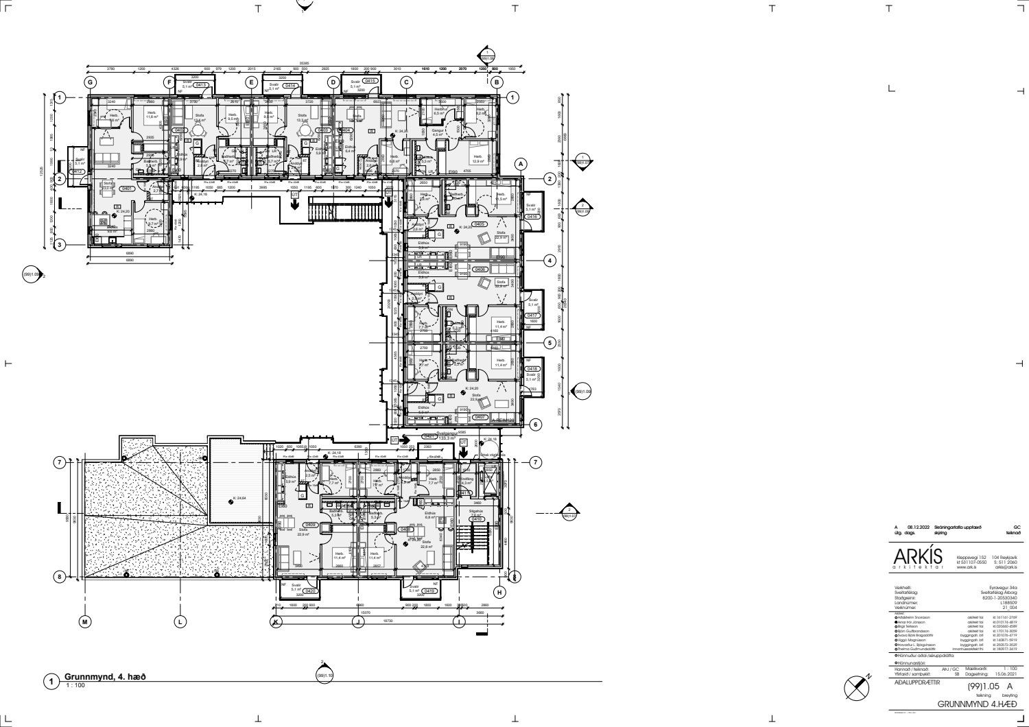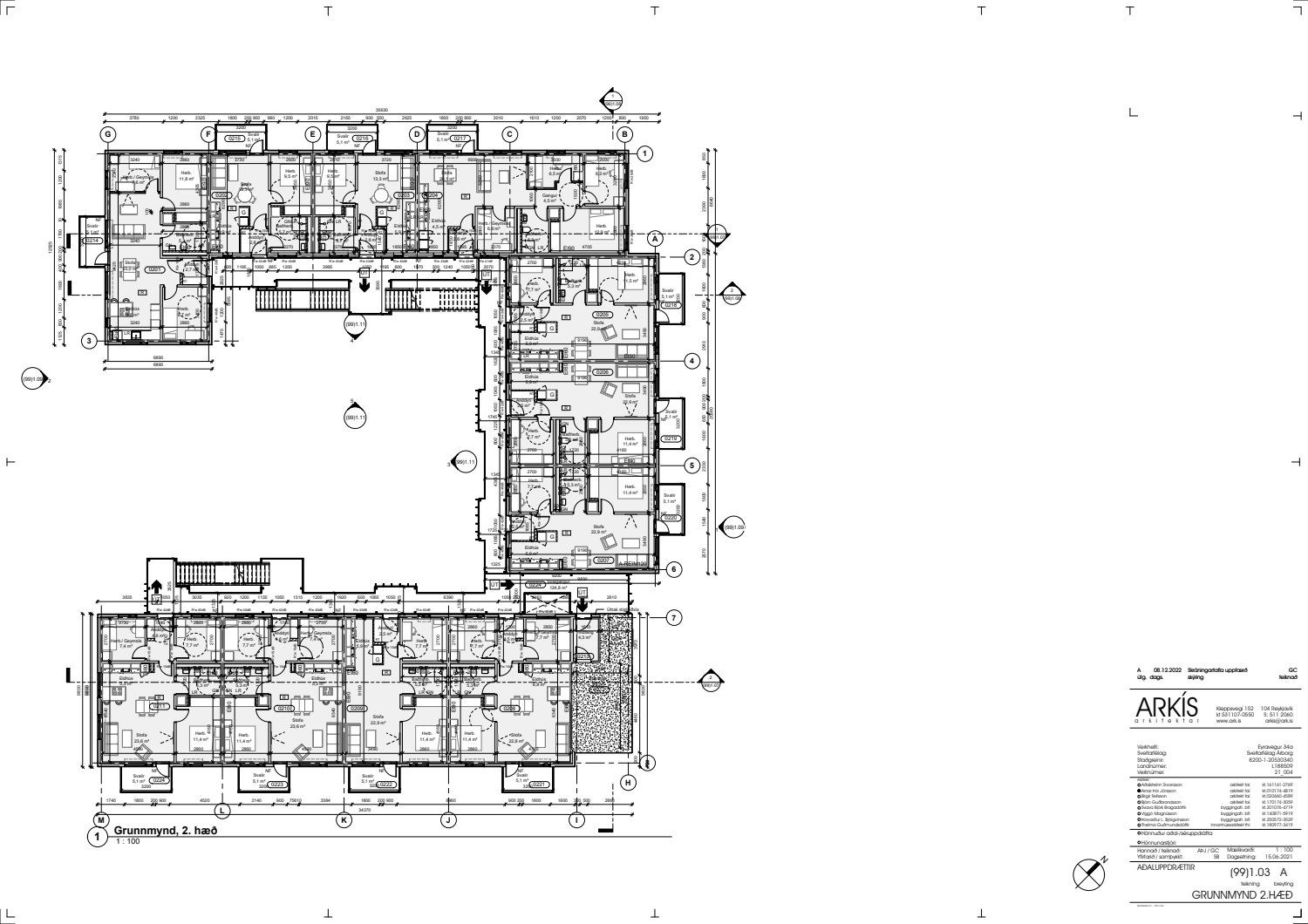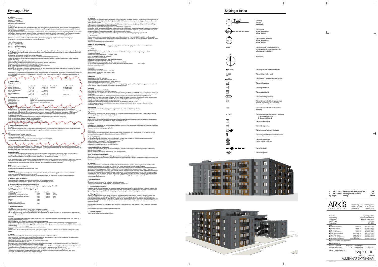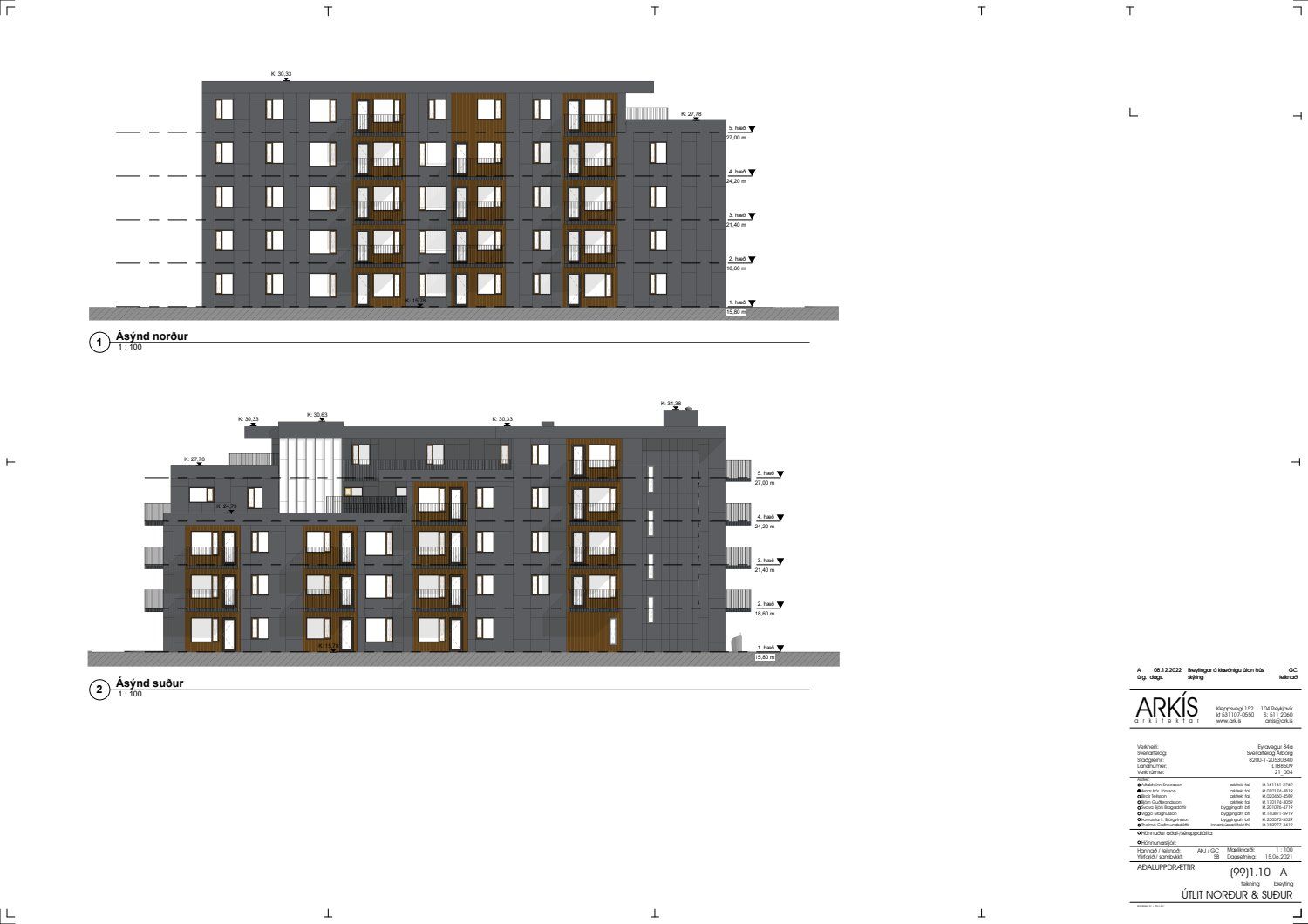 Uppfærðir aðaluppdrættir lagðir fyrir. Útveggir verða klæddir með Cembrit klæðningu og skráningartöflu breytt.