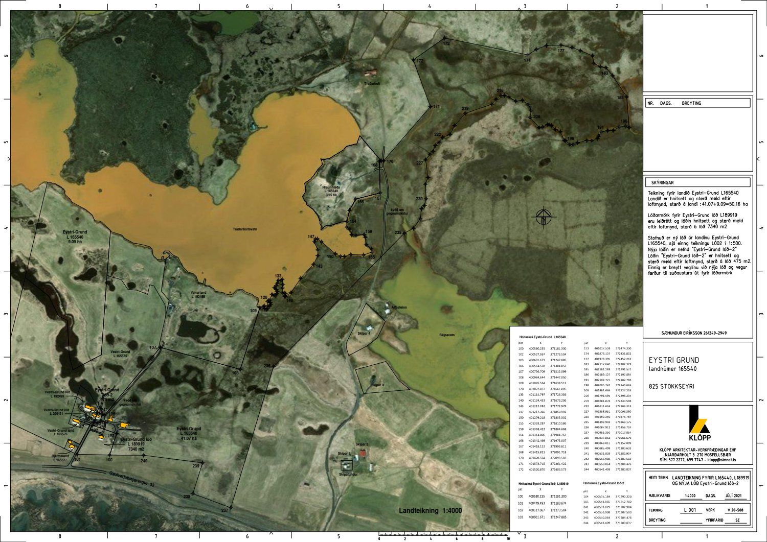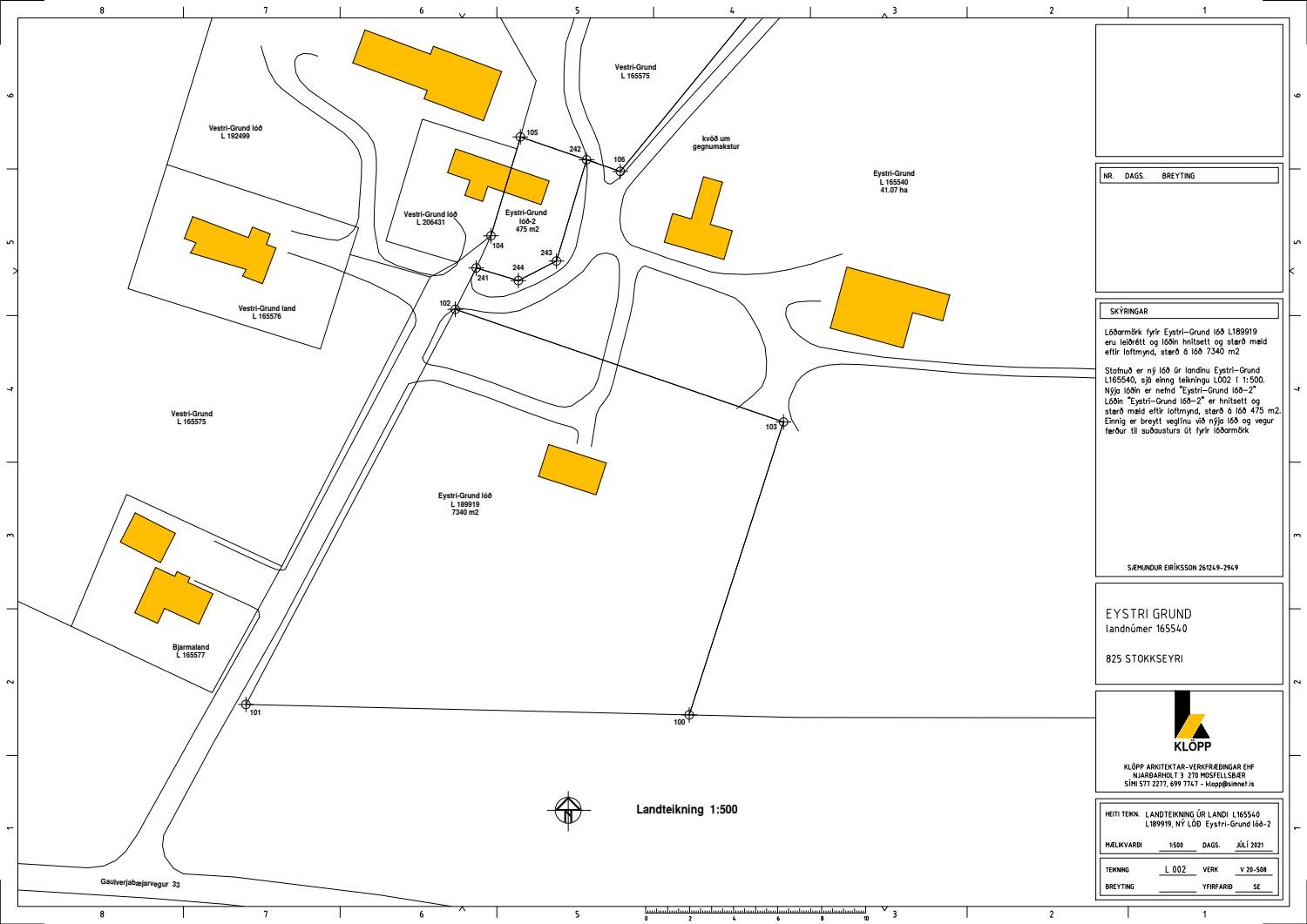 Sigmar Eiríksson, f.h. Keipur ehf. sótti um leyfi til að stofna 475m2 lóð undir núverandi íbúðarhús, úr landi Eystri-Grundar ln. 165540.