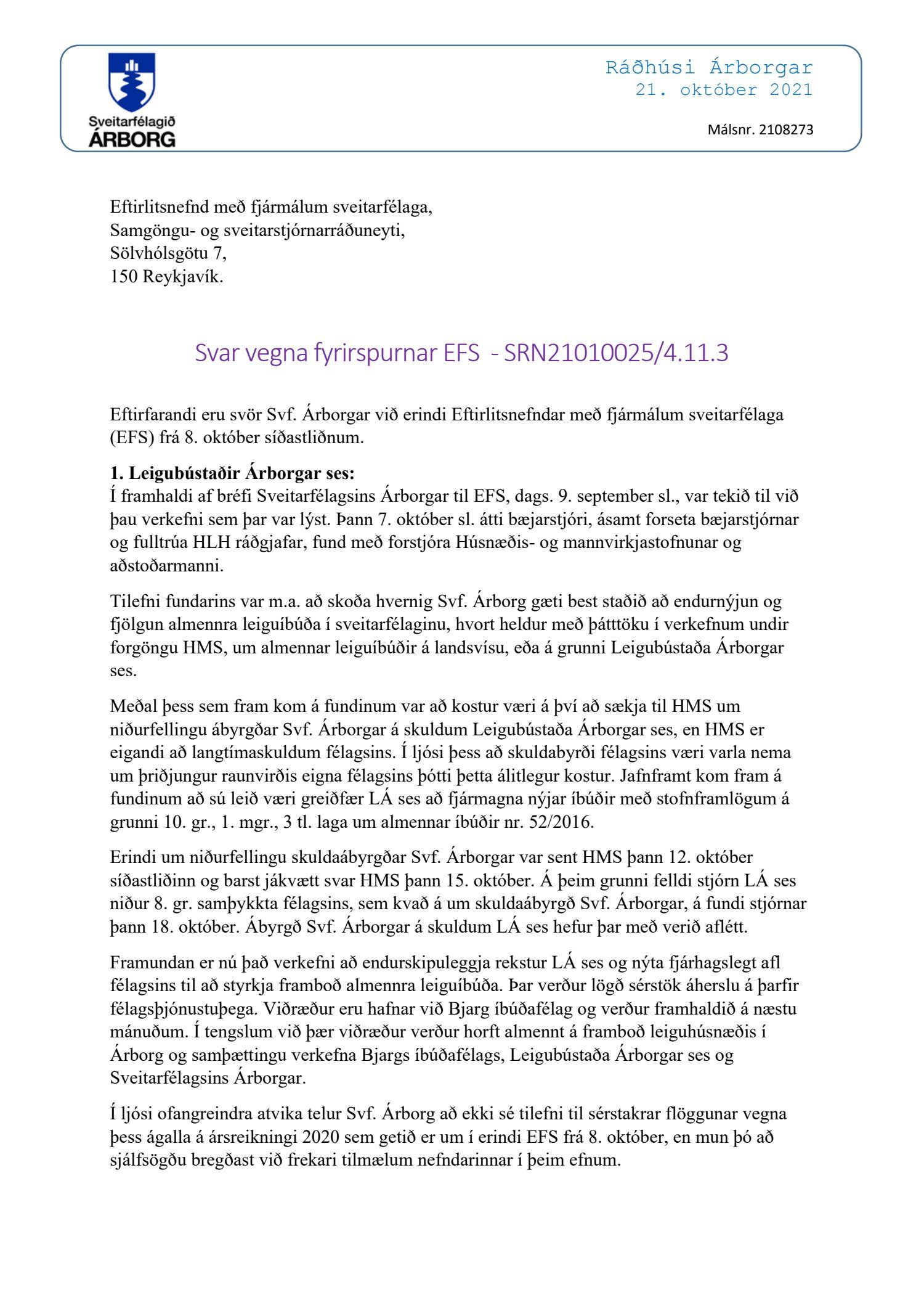 Beiðni um upplýsingar vegna ársreiknings 2020 og fjárhagsáætlun 2021