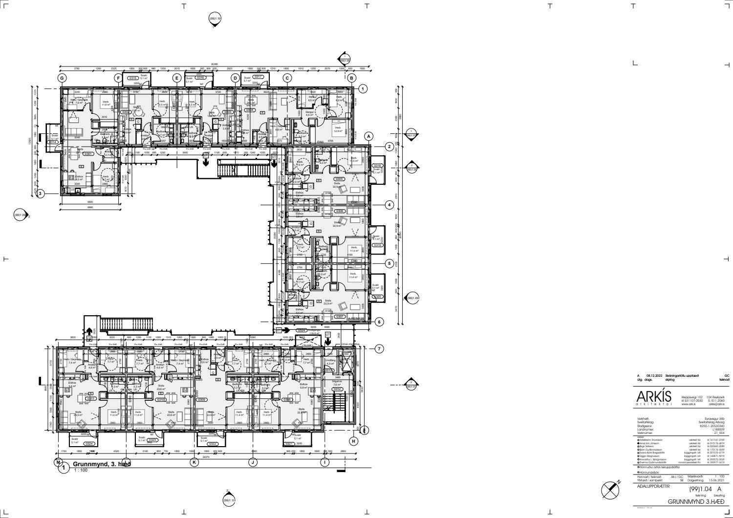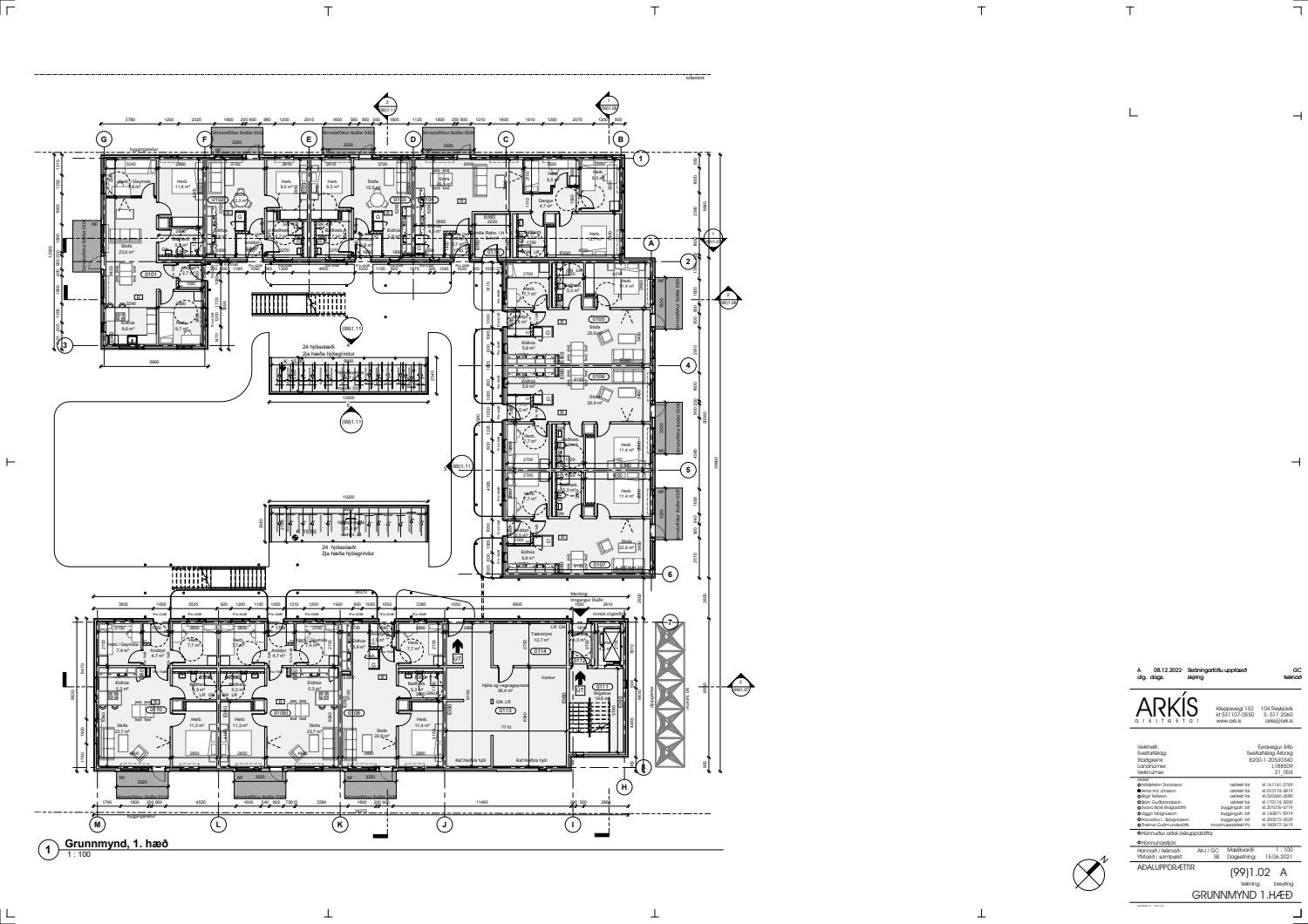 Uppfærðir aðaluppdrættir lagðir fyrir. Útveggir verða klæddir með Cembrit klæðningu og skráningartöflu breytt.