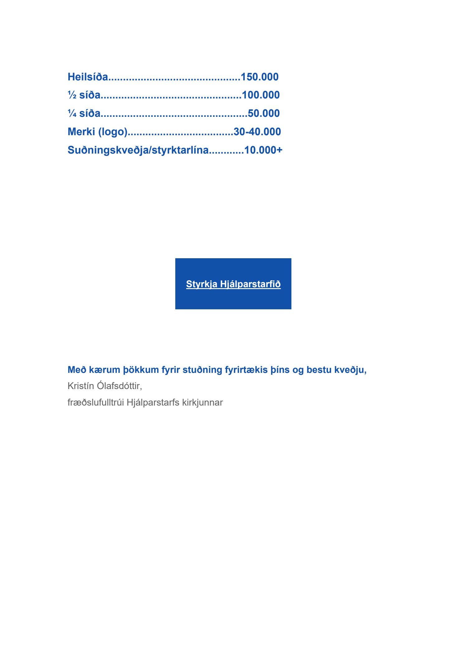 Bæjarráð samþykkir að kaupa stuðningskveðju/styrktarlínu í 3. tölublaði (jólablaðið) fréttablaðs Hjálparstarfs kirkjunnar.