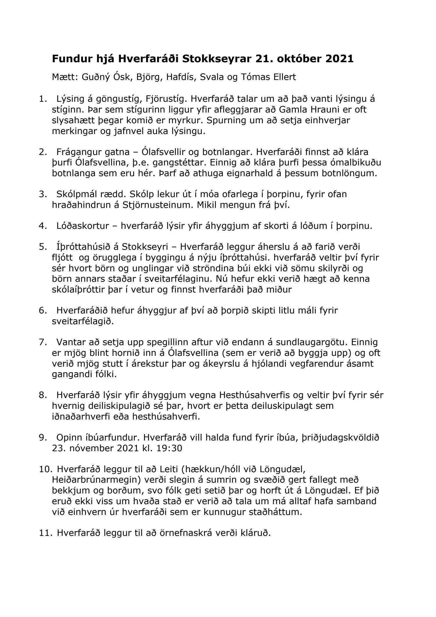Bæjarráð vísar liðum nr. 1-3,5,7 til eigna- og veitunefndar. Þá er liðum nr. 4, 8 og 11 vísað til skipulags- og byggingarnefndar og lið nr. 10 til umhverfisnefndar.