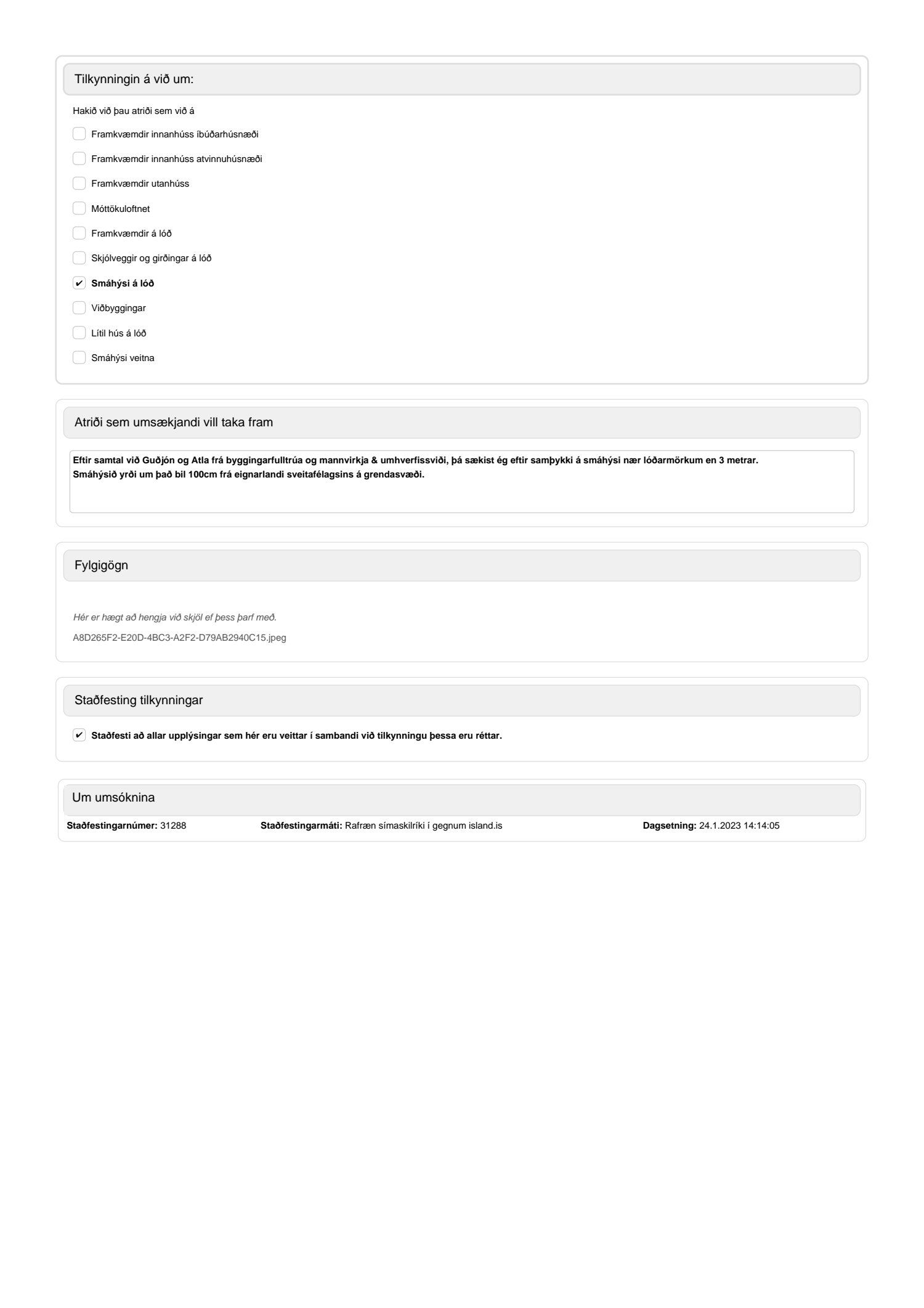 Tilkynning um framkvæmdir undanþegnar byggingarleyfi