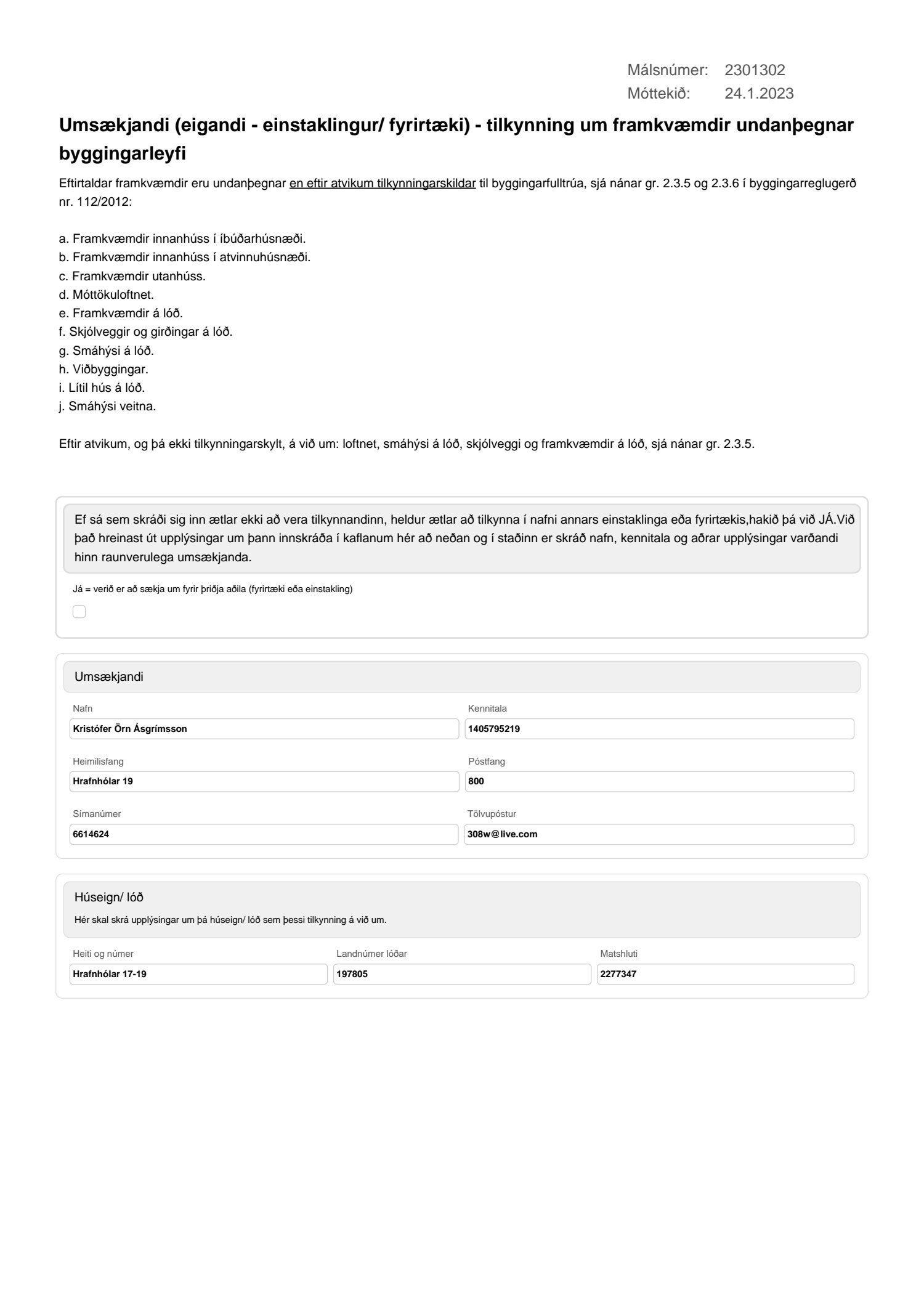 Umsækjandi (eigandi - einstaklingur/ fyrirtæki) - tilkynning um framkvæmdir undanþegnar byggingarleyfi.pdf