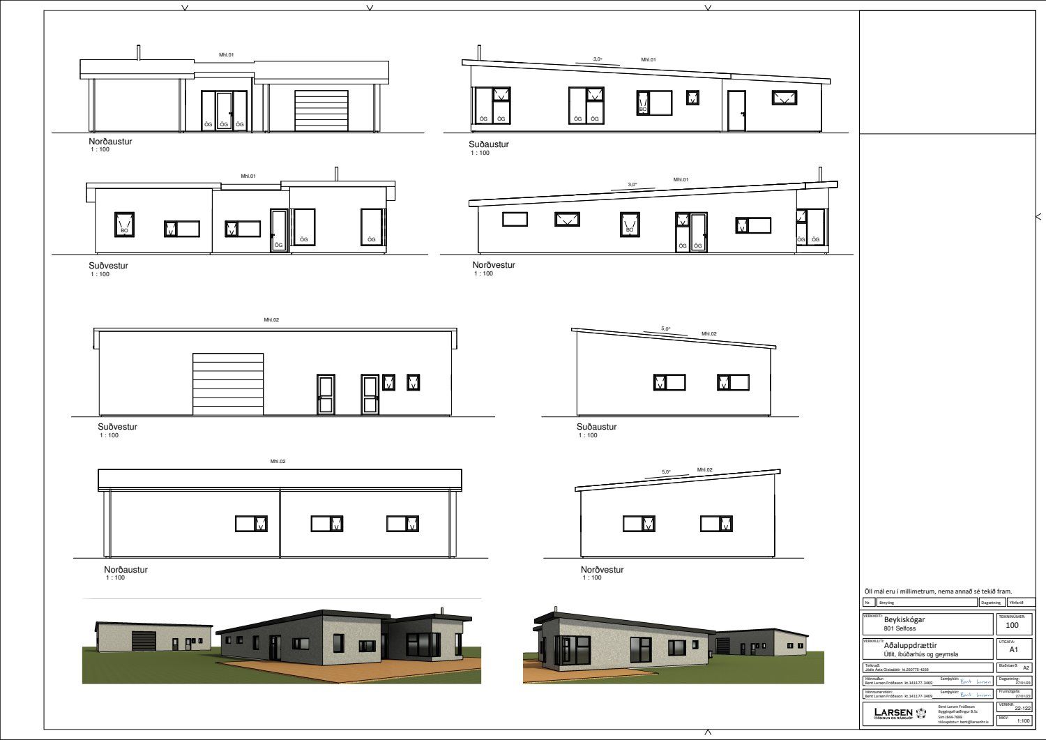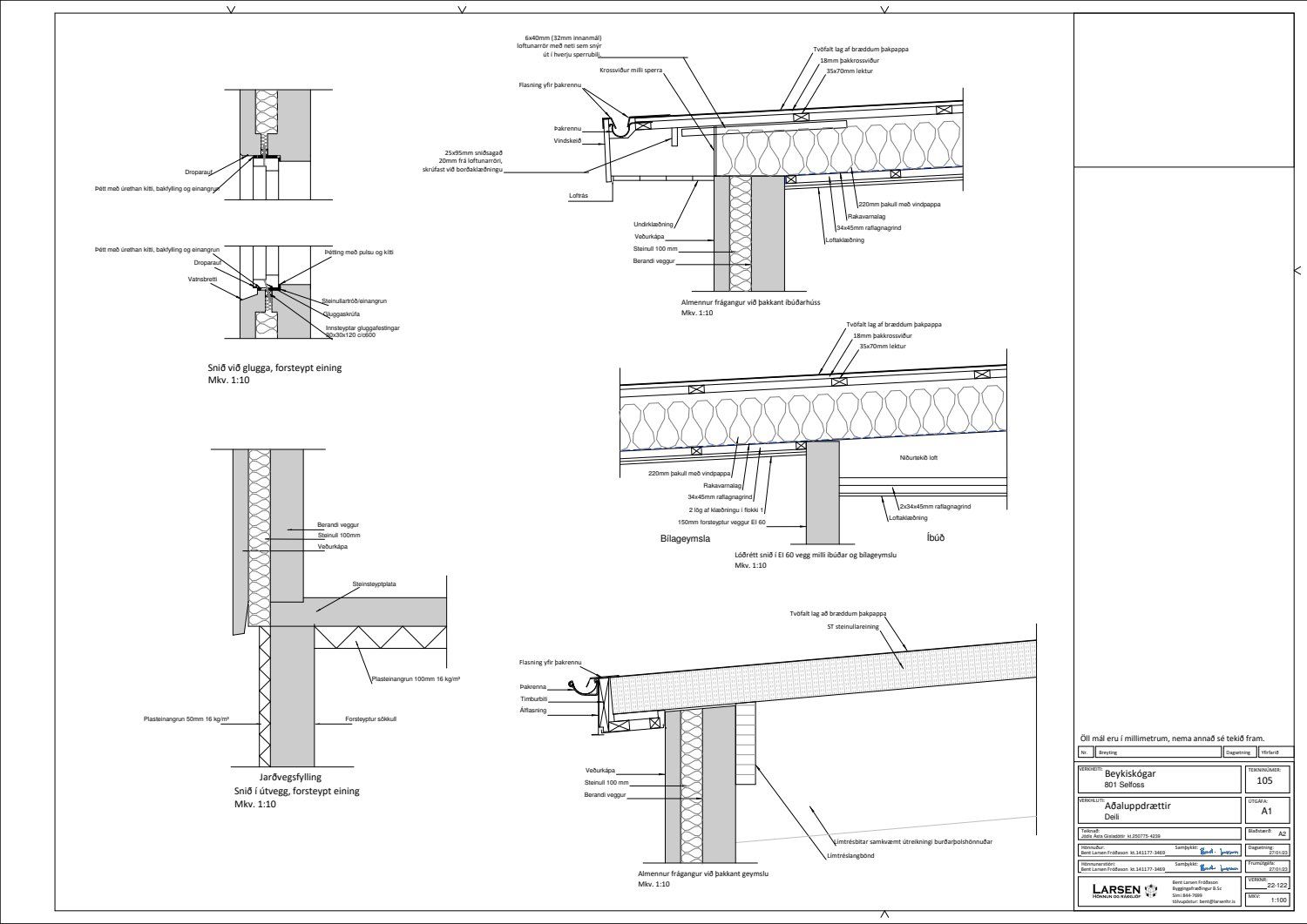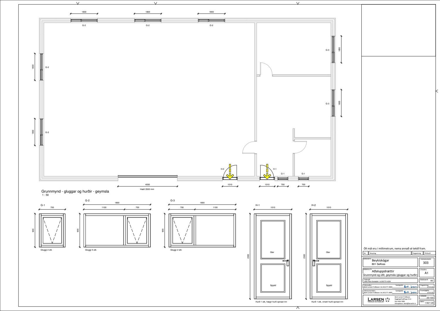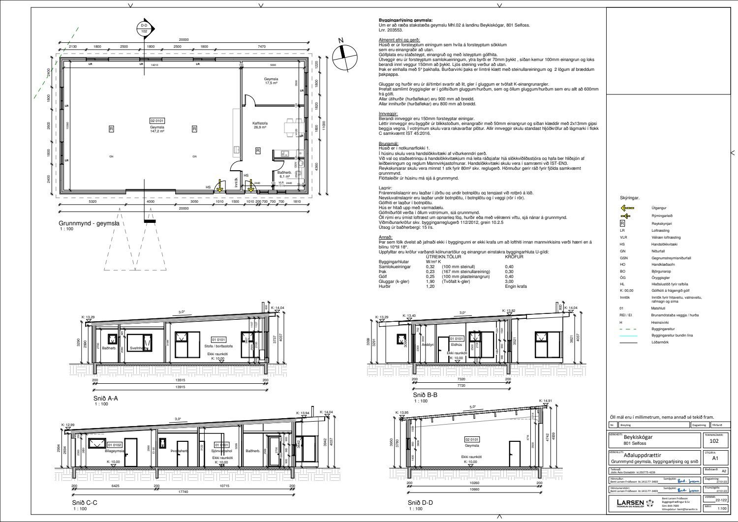 - Aðaluppdrættir, leiðréttir og undirritaðir af hönnuði og staðfestir af byggingarfulltrúa.