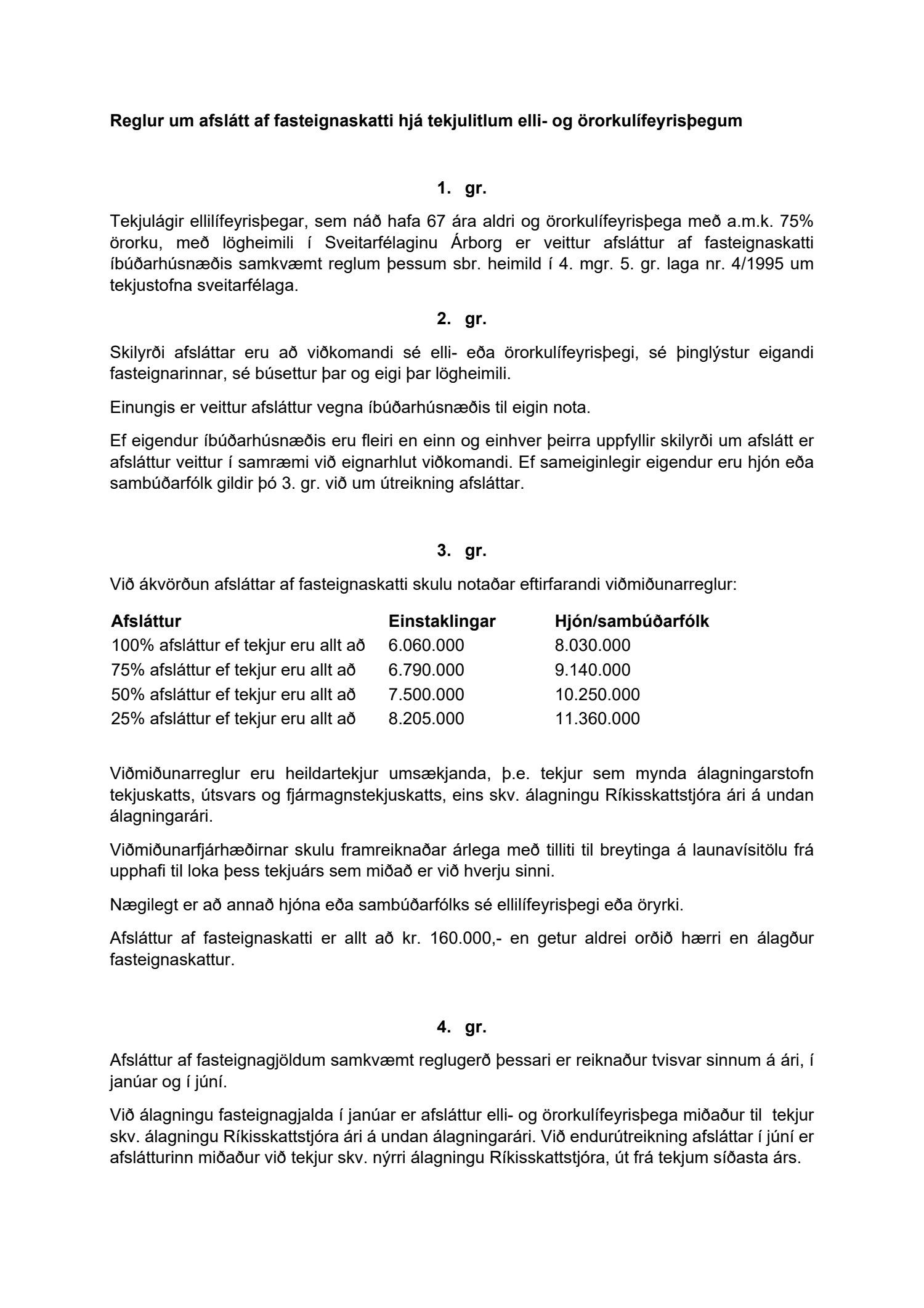 Farið var yfir endurbættar tillögur að reglum og afslátt, ásamt minnisblaði frá bæjarritara.