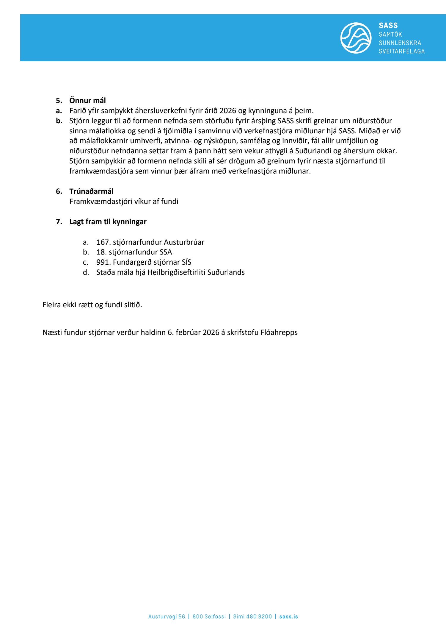 Fundargerðir stjórnar SASS 2026