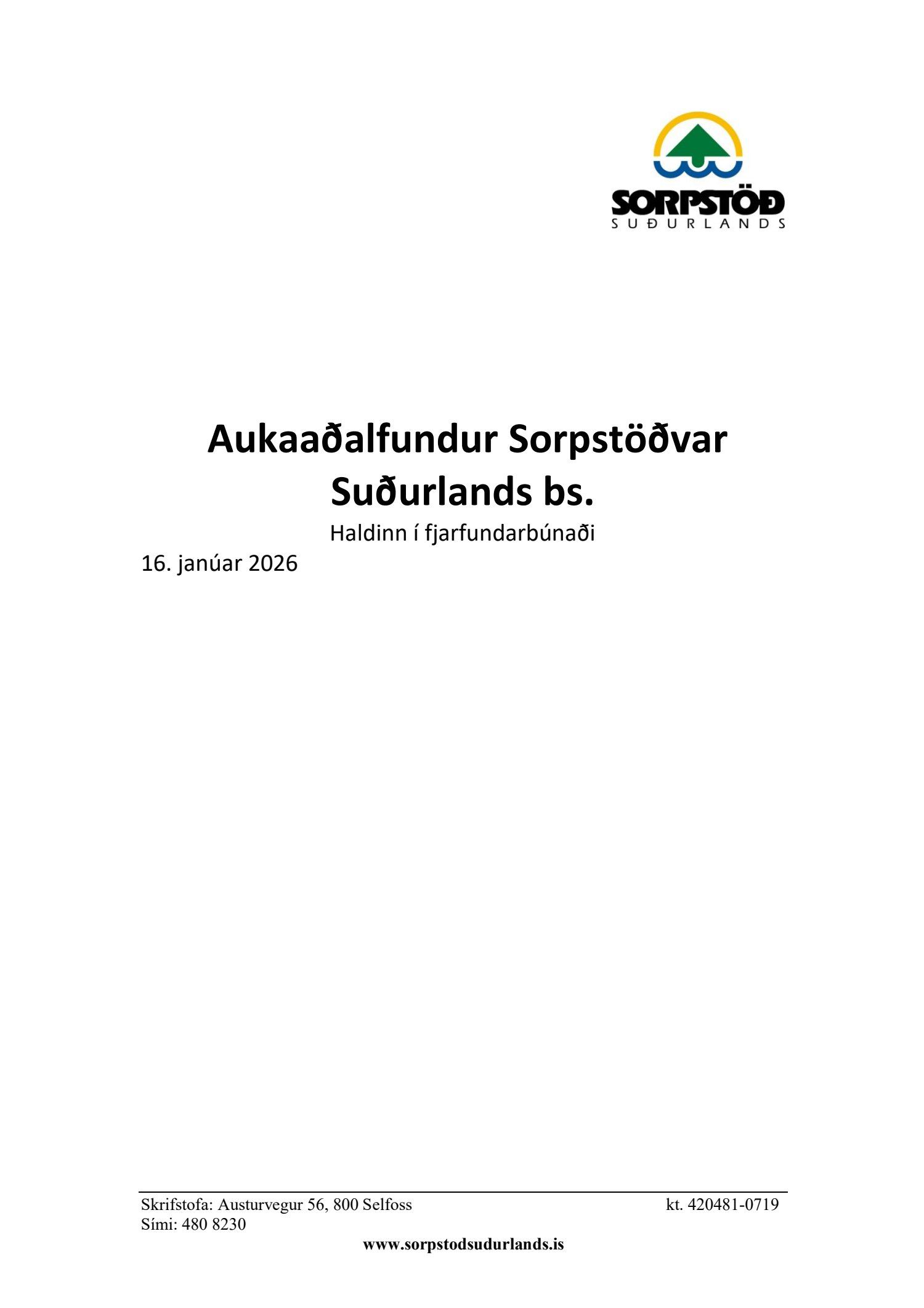Tillaga frá aukaaðalfundi Sorpstöðvar Suðurlands (SOS) og stjórnar SOS frá 16. janúar sl. liður 5c. Tillaga að viðauka við fjárhagsáætlun ársins 2026.
